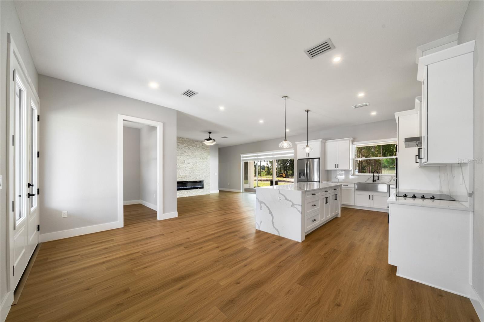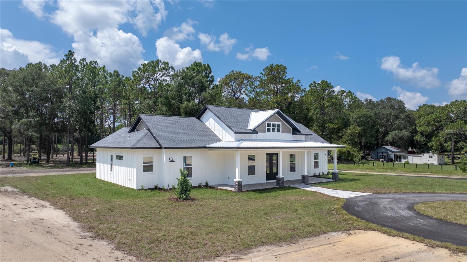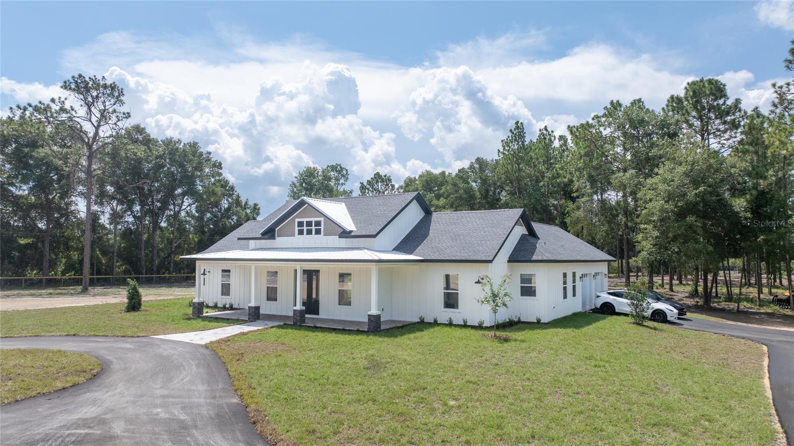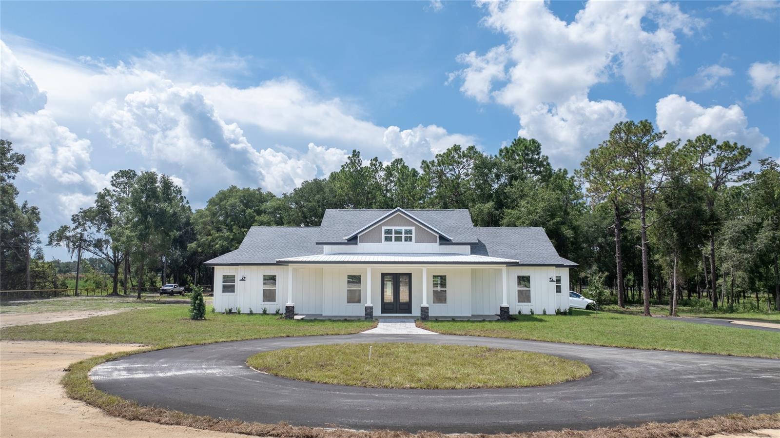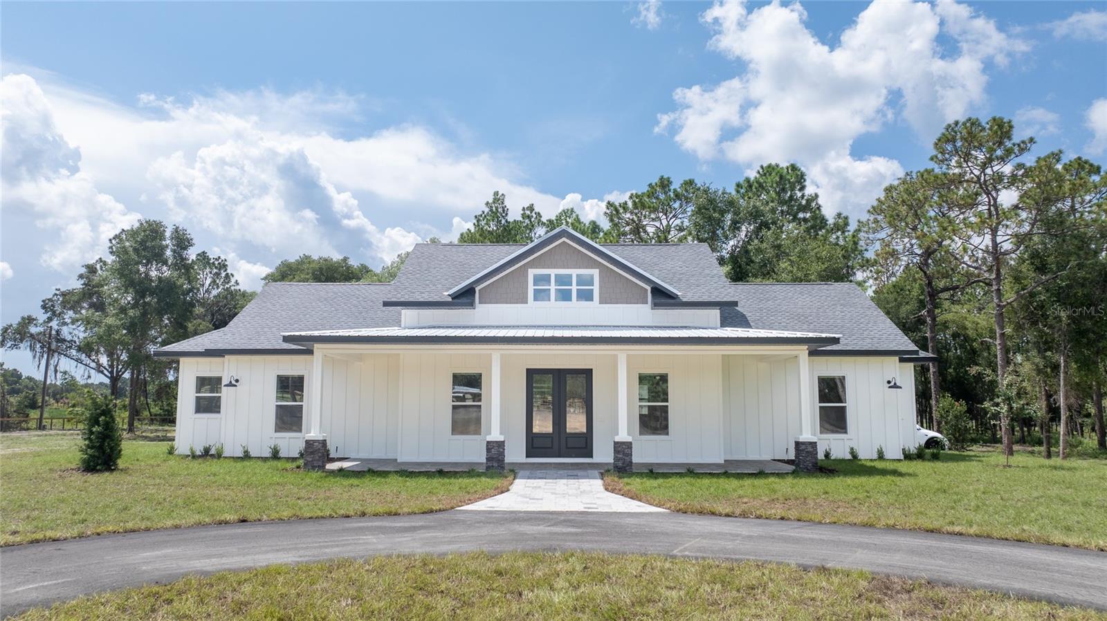 Welcome to this exquisite luxury farmhouse, nestled on 5 ACRES of serene agricultural land right off of HIGHWAY 200! This property offers a stunning combination of privacy and convenience, just off Highway 200—only 20 minutes from downtown Ocala and the World Equestrian Center. The interior features modern finishes, including vinyl flooring, custom cabinetry in the kitchen and master closet, and Quartz countertops in the bathrooms and kitchen.This home also comes with a flex room for that office, meditation room, or home gym! The home benefits from high-quality water sourced from a spring connected to Rainbow Springs. Zoned A-1, the property is perfect for livestock or cultivating a nursery. Marion County regulations allow one horse per acre. Enjoy the tranquility of rural living with the convenience of nearby city amenities!