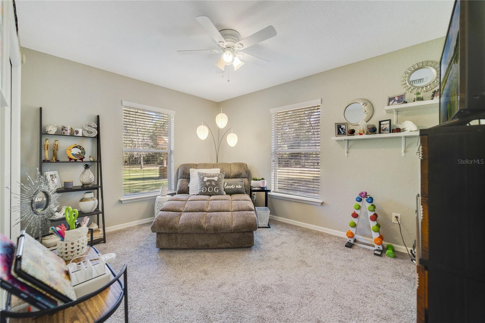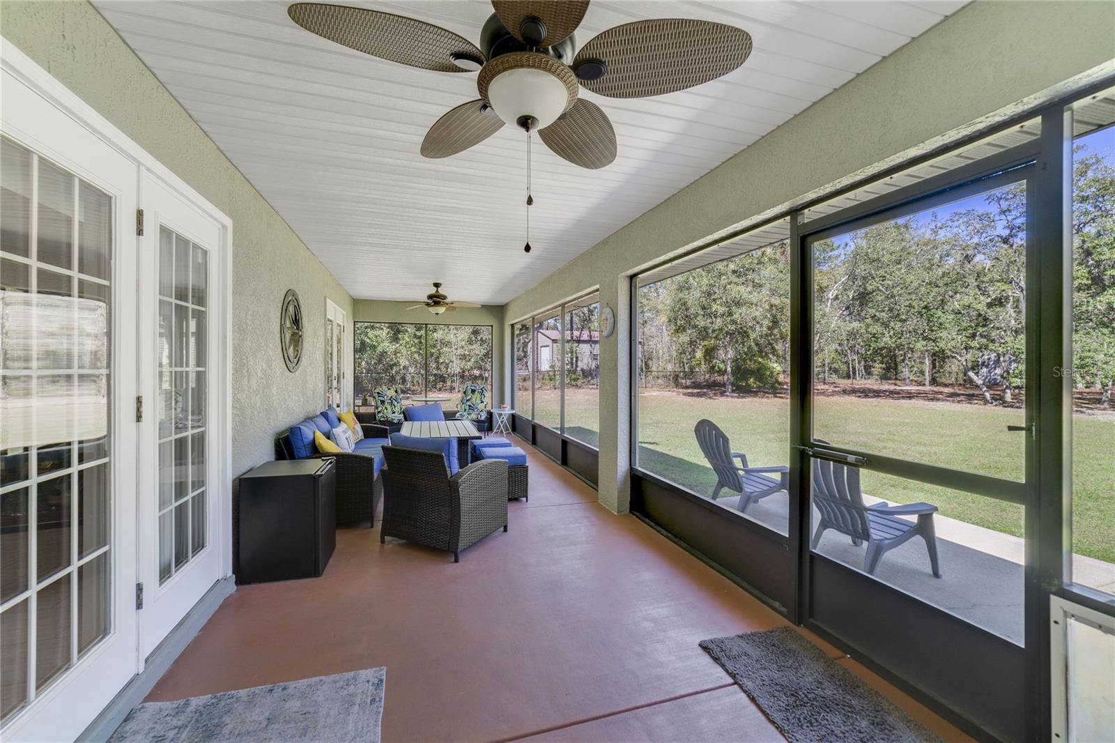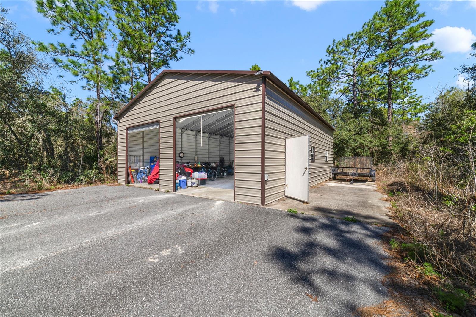 NEW LOWEST PRICE. This is the least expensive 4/3 home with over 2+ acres lot and a huge 30'X40' garage in Rolling Hills. It is only just 2 blocks away from the paved road SW 129th Terrace Road. Impeccable 4 bedrooms & 3 baths excellent kept Home with Double Land Lot over 2 Acres, oversized Garage 30' X 40' on the adjacent lot with two 10’ x 10’ high doors & ceilings and door openers. Master bath has double sinks, enclosed glass shower & garden bathtub. Brand New Roof November 2024, 2 years new 16 Seers A/C Handler maintained every 6 months, 2 years new 50 gallons Water Heater, 2014 Fenced around, Water Well is enclosed with wood panels around it that has a new Iron Filter & 5 years new Salt Softener Filter. Kitchen has Stainless Steel Appliances, Quartz counter tops, cabinets with double trash bins & spice rack plus an Island, crown moldings, back splash, etc. Plant shelves, ceiling fans, window shutters, French doors, wide front glass door, laundry room with cabinets, Washer & Dryer machines are included, huge screened-in Lanai, sprinkler system, etc.