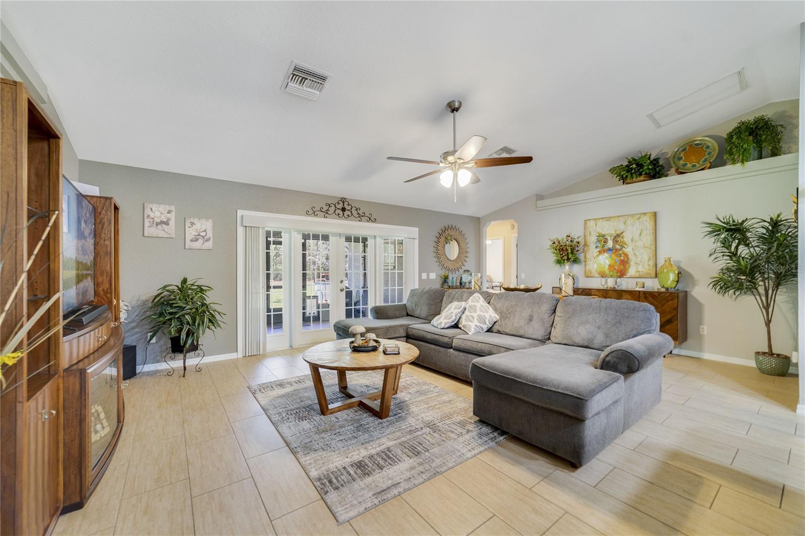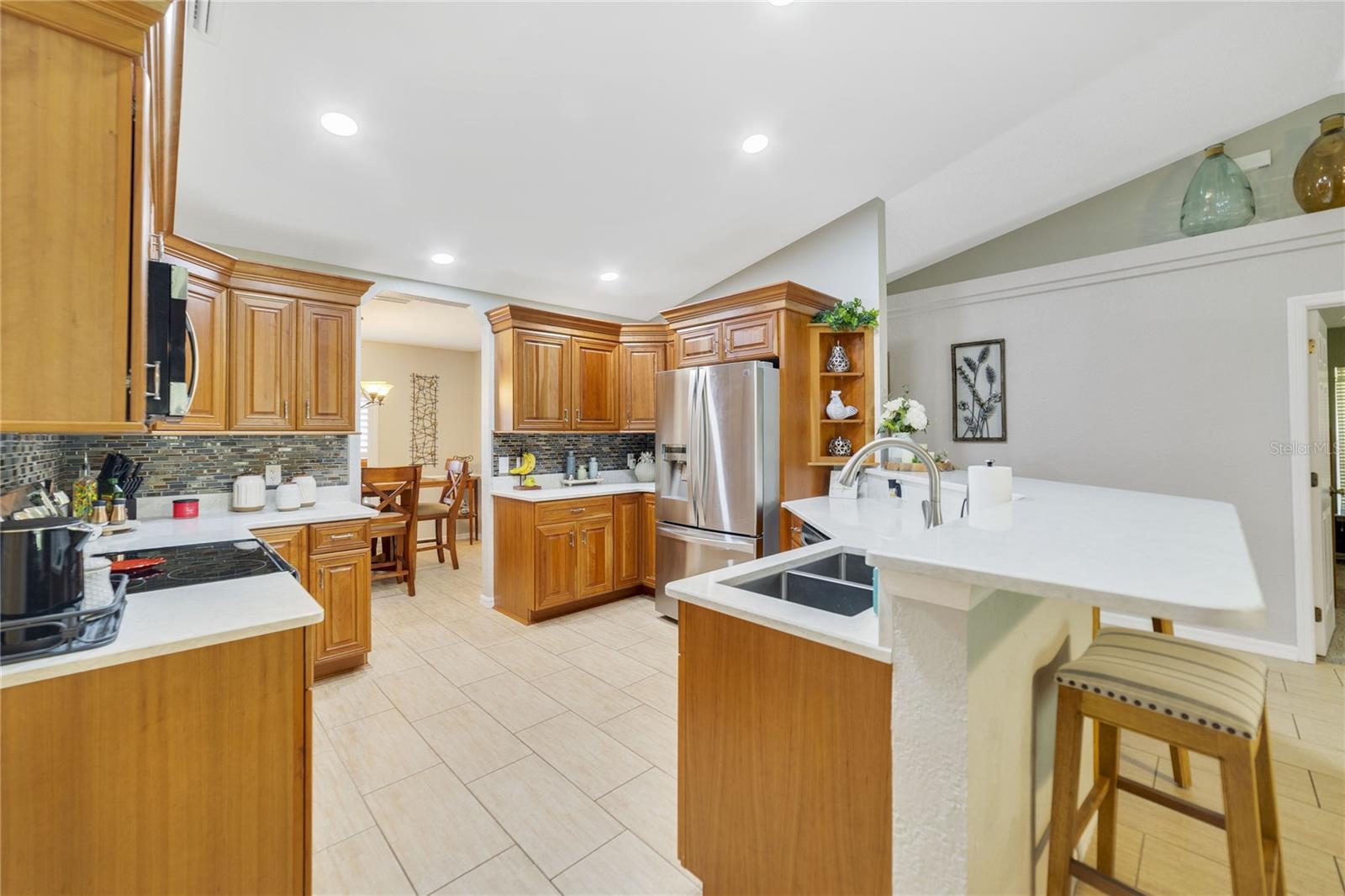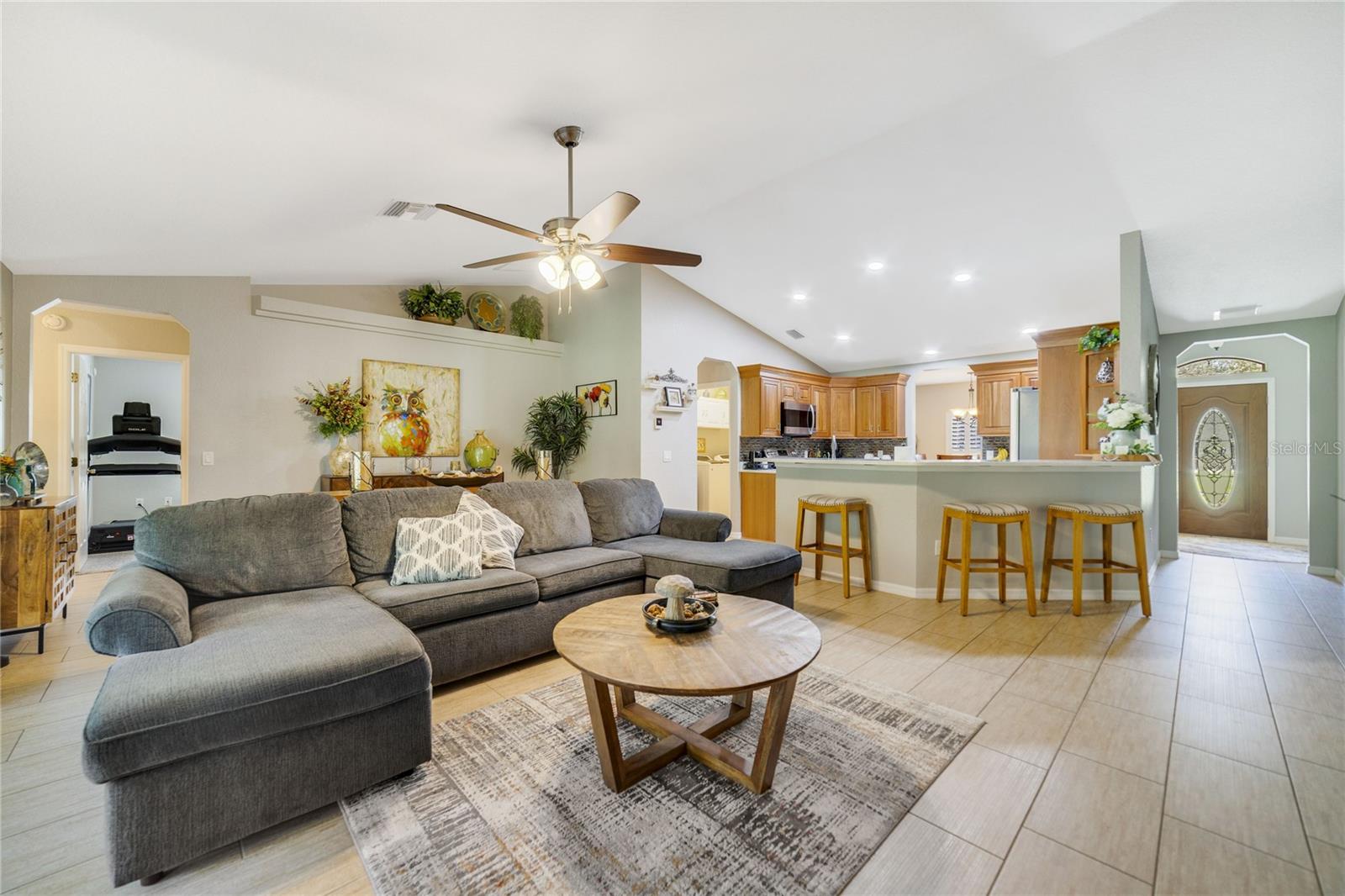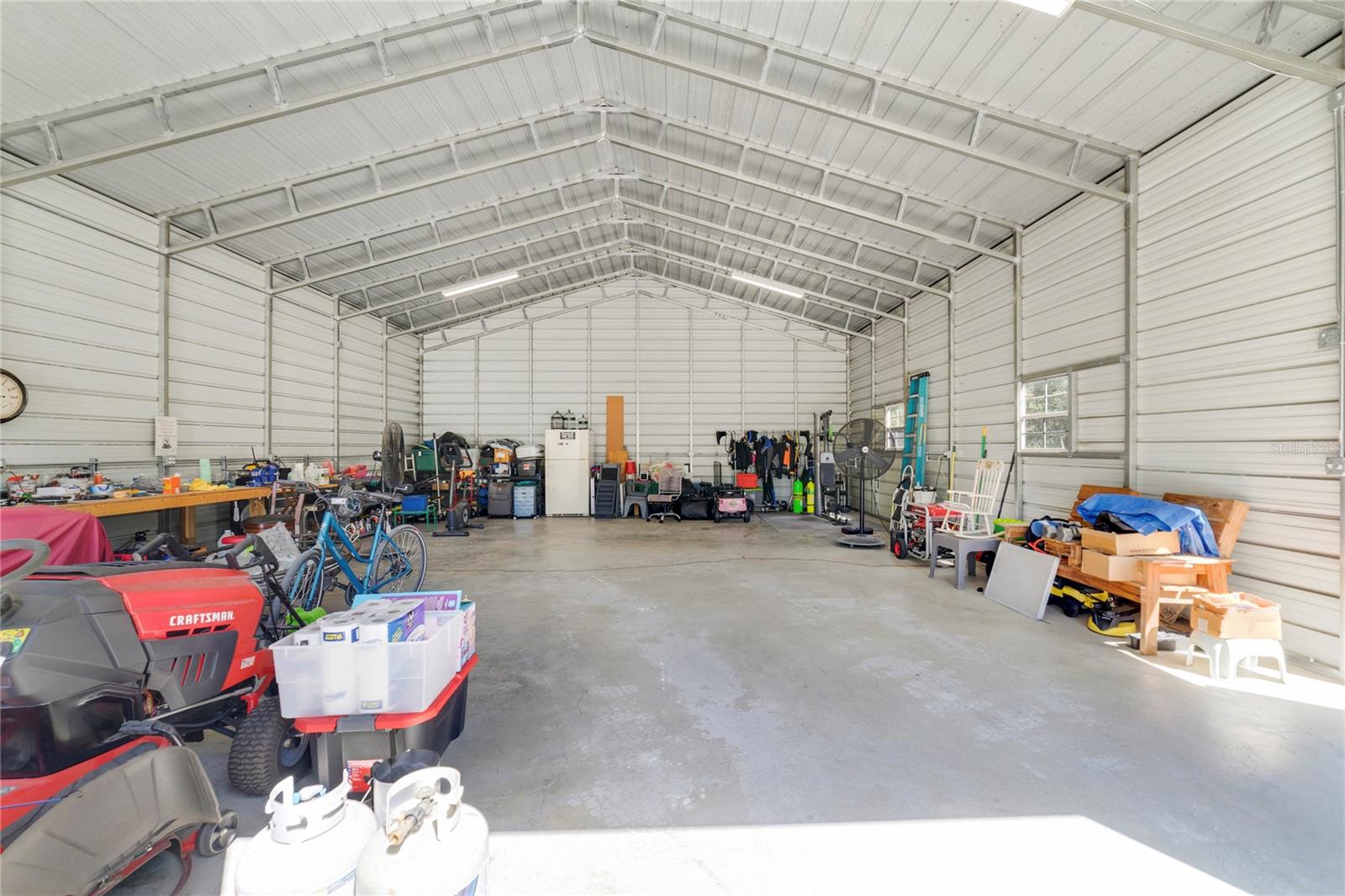 NEW LOWEST PRICE. This is the least expensive 4/3 home with over 2+ acres lot and a huge 30'X40' garage in Rolling Hills. It is only just 2 blocks away from the paved road SW 129th Terrace Road. Impeccable 4 bedrooms & 3 baths excellent kept Home with Double Land Lot over 2 Acres, oversized Garage 30' X 40' on the adjacent lot with two 10’ x 10’ high doors & ceilings and door openers. Master bath has double sinks, enclosed glass shower & garden bathtub. Brand New Roof November 2024, 2 years new 16 Seers A/C Handler maintained every 6 months, 2 years new 50 gallons Water Heater, 2014 Fenced around, Water Well is enclosed with wood panels around it that has a new Iron Filter & 5 years new Salt Softener Filter. Kitchen has Stainless Steel Appliances, Quartz counter tops, cabinets with double trash bins & spice rack plus an Island, crown moldings, back splash, etc. Plant shelves, ceiling fans, window shutters, French doors, wide front glass door, laundry room with cabinets, Washer & Dryer machines are included, huge screened-in Lanai, sprinkler system, etc.