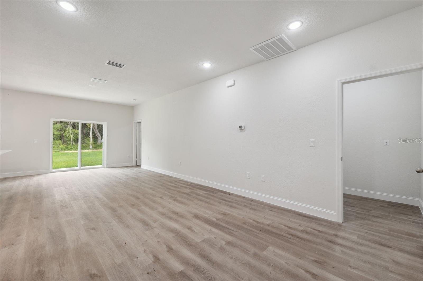 One or more photo(s) has been virtually staged. New construction home in Ocala with modern design, functionality, and move-in-ready comfort. Situated on a 0.31-acre corner lot, this property features added privacy, abundant natural light, and a spacious backyard with excellent potential for outdoor living. The home includes 4 well-sized bedrooms. The primary suite features a walk-in closet and private bathroom, while the remaining bedrooms include built-in closets and share a second full bathroom, ideal for guests. A welcoming front porch, landscaped yard, and modern façade create strong curb appeal. Inside, the open-concept layout connects the living area, dining space, and kitchen under high ceilings that enhance the bright, airy feel. The kitchen features waterfall quartz countertops, solid wood cabinetry, ceramic tile flooring, and stainless steel appliances. Sliding glass doors open to a large backyard, perfect for entertaining, a BBQ area, or a future pool. Additional highlights include LED exterior lighting, a laundry room with ready hookups, a covered two-car garage with automatic door, and a 1-year builder’s warranty. Located in a quiet, growing neighborhood, ideal for homeowners or investors.