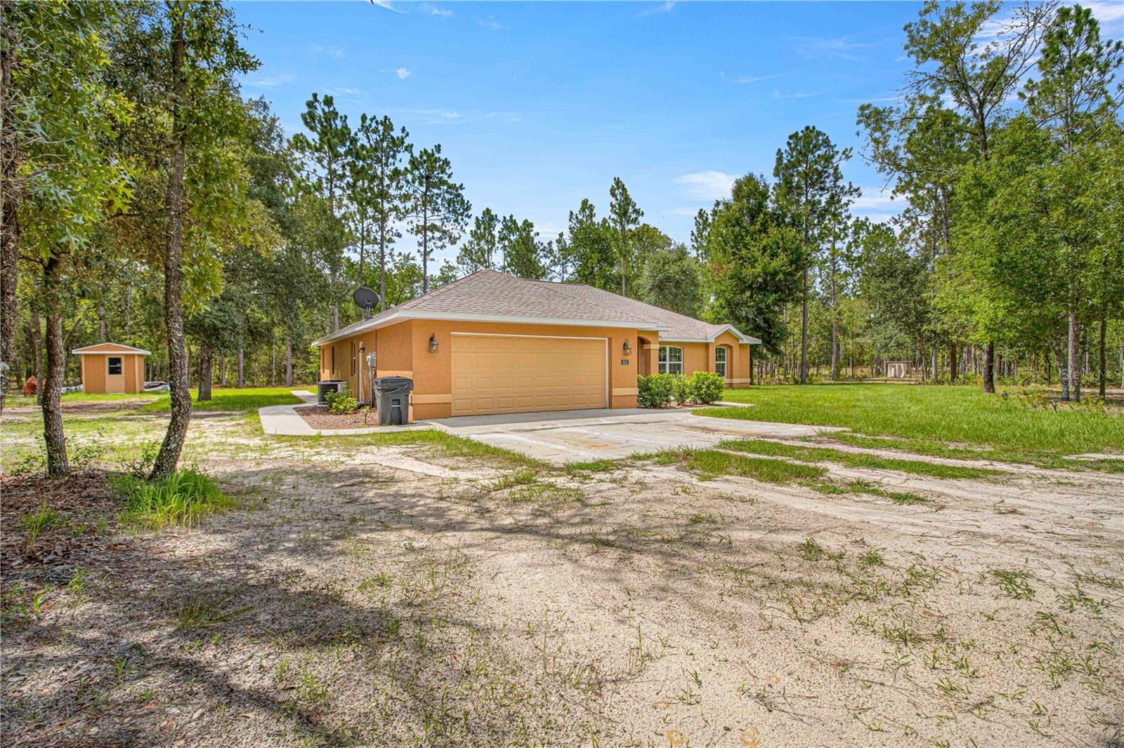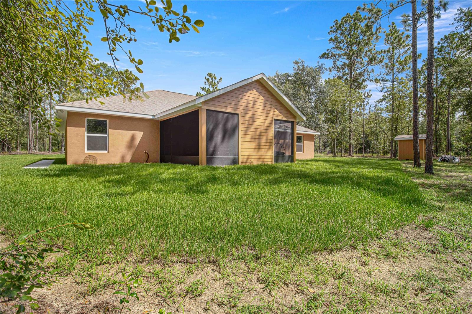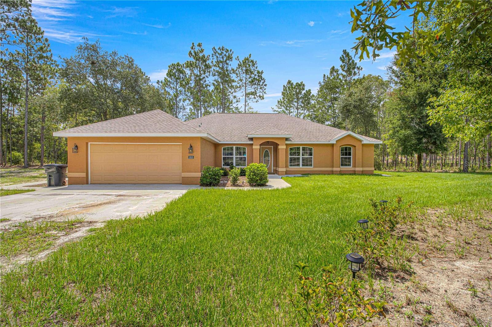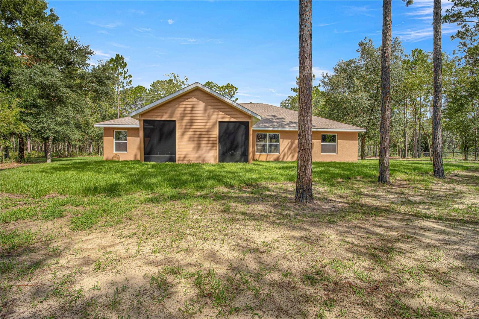 One or more photo(s) has been virtually staged. This better than new 2020 home sits on a beautiful 11.39+/-!! Completely fenced and extremely private with plenty of trees. Or it could be perfect for a barn and patures with clearing for your own private mini farm. Enter through the gate and go down the long, scenic driveway to your personal get away. When you enter the home you will notice the wood look tile in your entrance, dining and kitchen areas. To the right is your office/den area with carpet and a true archway entrance. There is also a cathedral ceiling adding the spacious feel of the open floor plan. The living room features carpet and a large ceiling fan. The kitchen has a gas stainless range and dishwasher. Wood cabinets and plenty of counter space for the chef in the family, along with a nice sized pantry with wood shelving. French doors from the living room take you into the brand new screened room with gorgeous cypress ceiling, stacked stone accent wall, recessed lighting with dimmers and your own private jacuzzi! And it's plumbed for an outdoor kitchen, perfect for entertaining. The large master bedroom has a barn door entrance, carpet and a walk in closet. No wire shelving here either. All of the closets have wood shelving! Master bath features a double sink vanity, soaker tub and step in shower. This split floor plan has the 2 guest rooms on the other side of the home and are just the right size. Outside there are 2 archery ranges. You have plenty of space to have your own mini farm, a pool or whatever your heart desires! Lot's of room for outbuildings, RV's or other toys! Less than 15 minutes to WEC. Close to the Rainbow River to kayak or go tubing, but all of the privacy you could ever ask for. Call for your appointment to see today!