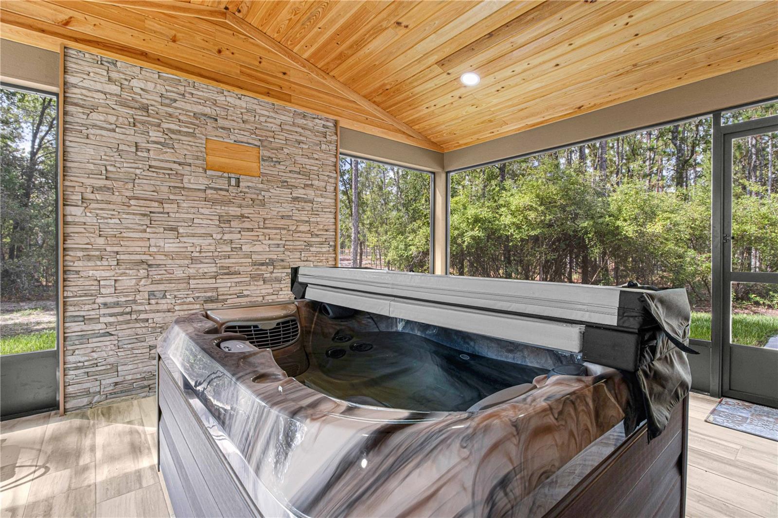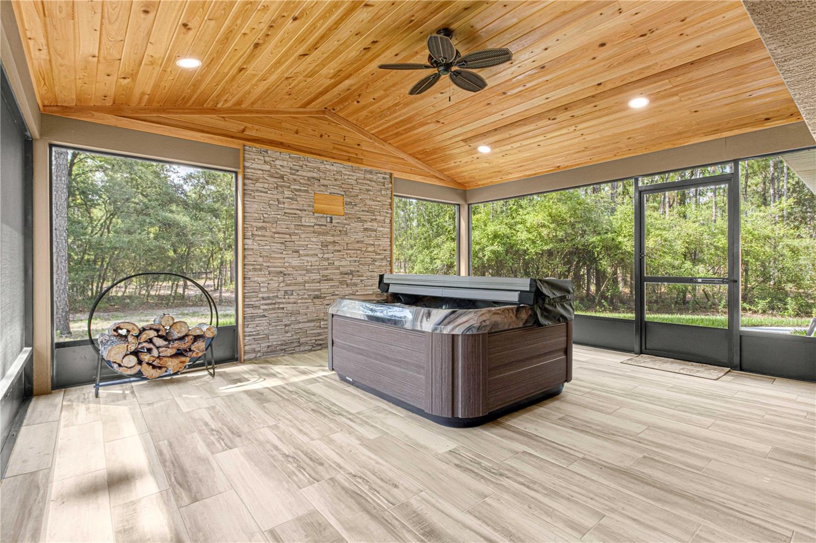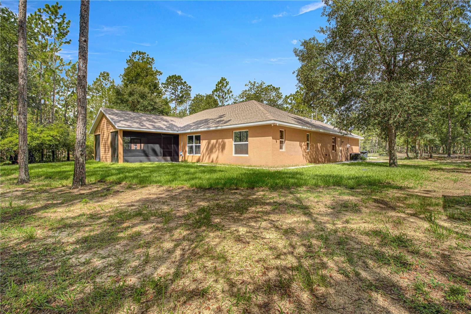 One or more photo(s) has been virtually staged. This better than new 2020 home sits on a beautiful 11.39+/-!! Completely fenced and extremely private with plenty of trees. Or it could be perfect for a barn and patures with clearing for your own private mini farm. Enter through the gate and go down the long, scenic driveway to your personal get away. When you enter the home you will notice the wood look tile in your entrance, dining and kitchen areas. To the right is your office/den area with carpet and a true archway entrance. There is also a cathedral ceiling adding the spacious feel of the open floor plan. The living room features carpet and a large ceiling fan. The kitchen has a gas stainless range and dishwasher. Wood cabinets and plenty of counter space for the chef in the family, along with a nice sized pantry with wood shelving. French doors from the living room take you into the brand new screened room with gorgeous cypress ceiling, stacked stone accent wall, recessed lighting with dimmers and your own private jacuzzi! And it's plumbed for an outdoor kitchen, perfect for entertaining. The large master bedroom has a barn door entrance, carpet and a walk in closet. No wire shelving here either. All of the closets have wood shelving! Master bath features a double sink vanity, soaker tub and step in shower. This split floor plan has the 2 guest rooms on the other side of the home and are just the right size. Outside there are 2 archery ranges. You have plenty of space to have your own mini farm, a pool or whatever your heart desires! Lot's of room for outbuildings, RV's or other toys! Less than 15 minutes to WEC. Close to the Rainbow River to kayak or go tubing, but all of the privacy you could ever ask for. Call for your appointment to see today!