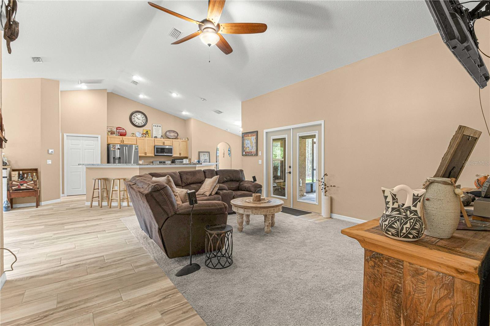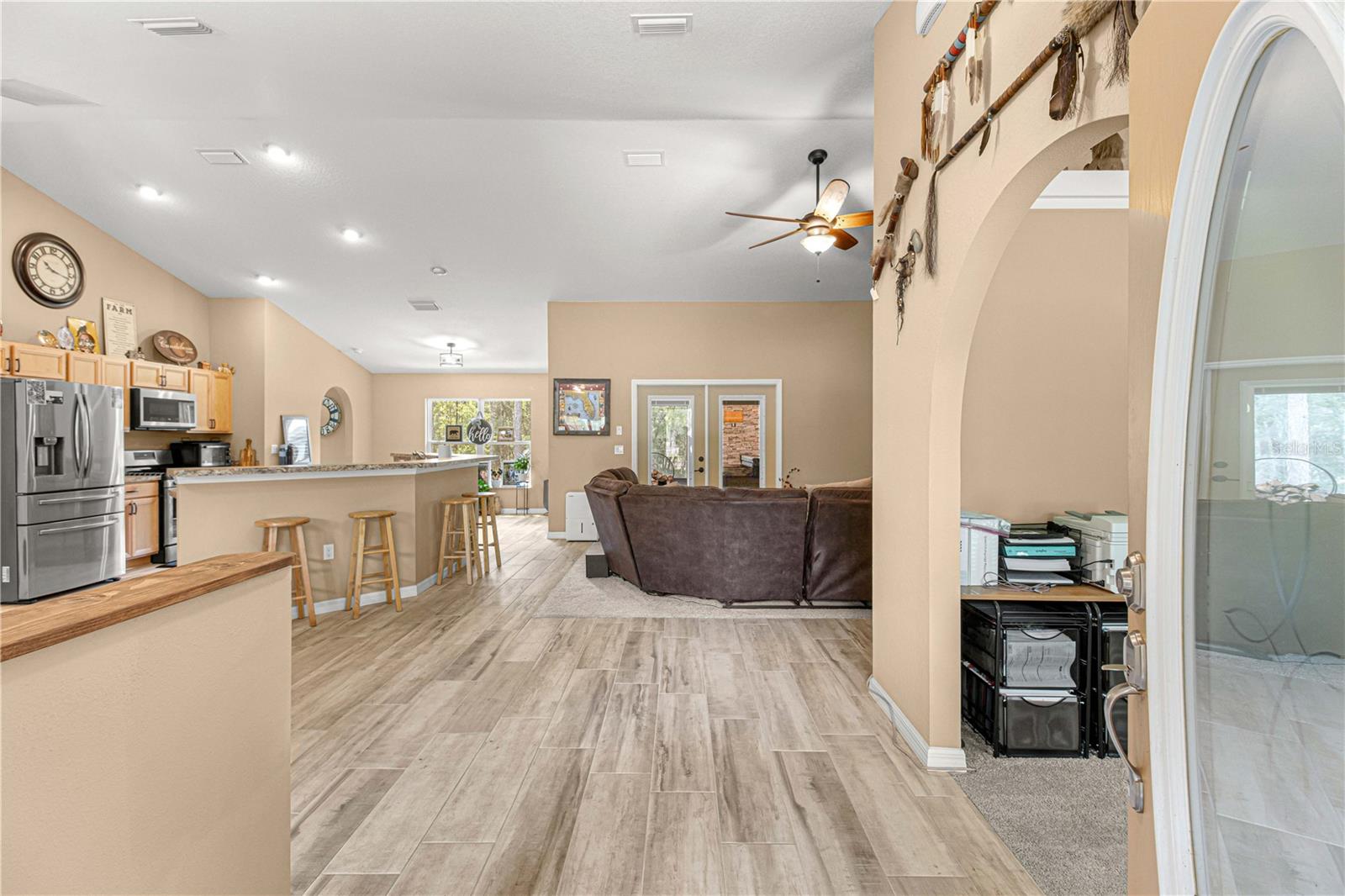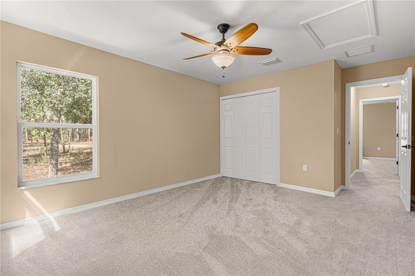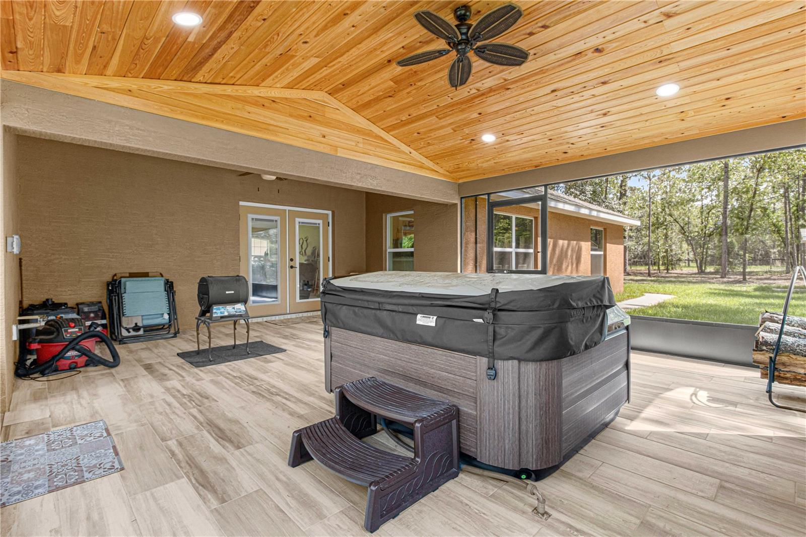 One or more photo(s) has been virtually staged. This better than new 2020 home sits on a beautiful 11.39+/-!! Completely fenced and extremely private with plenty of trees. Or it could be perfect for a barn and patures with clearing for your own private mini farm. Enter through the gate and go down the long, scenic driveway to your personal get away. When you enter the home you will notice the wood look tile in your entrance, dining and kitchen areas. To the right is your office/den area with carpet and a true archway entrance. There is also a cathedral ceiling adding the spacious feel of the open floor plan. The living room features carpet and a large ceiling fan. The kitchen has a gas stainless range and dishwasher. Wood cabinets and plenty of counter space for the chef in the family, along with a nice sized pantry with wood shelving. French doors from the living room take you into the brand new screened room with gorgeous cypress ceiling, stacked stone accent wall, recessed lighting with dimmers and your own private jacuzzi! And it's plumbed for an outdoor kitchen, perfect for entertaining. The large master bedroom has a barn door entrance, carpet and a walk in closet. No wire shelving here either. All of the closets have wood shelving! Master bath features a double sink vanity, soaker tub and step in shower. This split floor plan has the 2 guest rooms on the other side of the home and are just the right size. Outside there are 2 archery ranges. You have plenty of space to have your own mini farm, a pool or whatever your heart desires! Lot's of room for outbuildings, RV's or other toys! Less than 15 minutes to WEC. Close to the Rainbow River to kayak or go tubing, but all of the privacy you could ever ask for. Call for your appointment to see today!