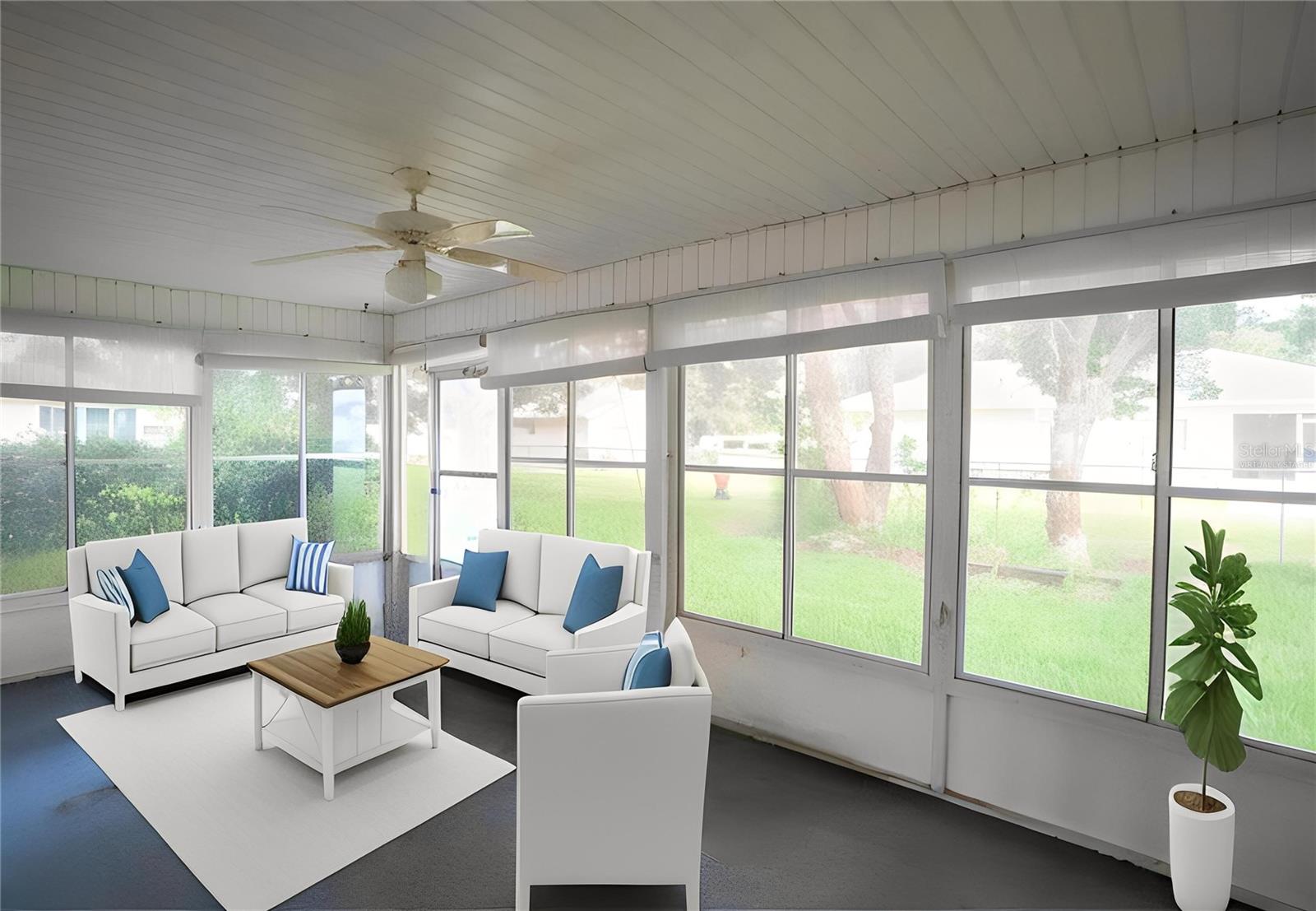 One or more photo(s) has been virtually staged. Seller may consider buyer concessions if made in an offer. Experience the epitome of vibrant 55+ living in the sought-after Spruce Creek Preserve community – a haven brimming with activities and amenities that redefine retirement. Welcome to a world of endless possibilities within this charming 2-bedroom, 2-bath with den and 1 car garage Palm model home. As you step inside, you're greeted by a luminous and inviting interior that's ready to embrace its new owner's vision. The spacious living room seamlessly connects to the dining area, offering a delightful space to gather and entertain. Slide open the doors to reveal a sprawling, enclosed Florida Room – a haven of relaxation where you can bask in the Florida sunshine or host gatherings with ease. Spacious backyard with a small gated area for your pets. Roof was replaced in 2018. Nestled on 416 acres of rolling countryside, Spruce Creek Preserve is more than just a community – it's a way of life. Bordering the tranquil Ross Prairie State Forest, this development offers an intimate tie to the natural world, where the majesty of stately oaks and the presence of wildlife paint a picturesque backdrop. With a gated entrance and a serene atmosphere, this active adult haven is a testament to comfort, community, and the joy of embracing each day to the fullest.