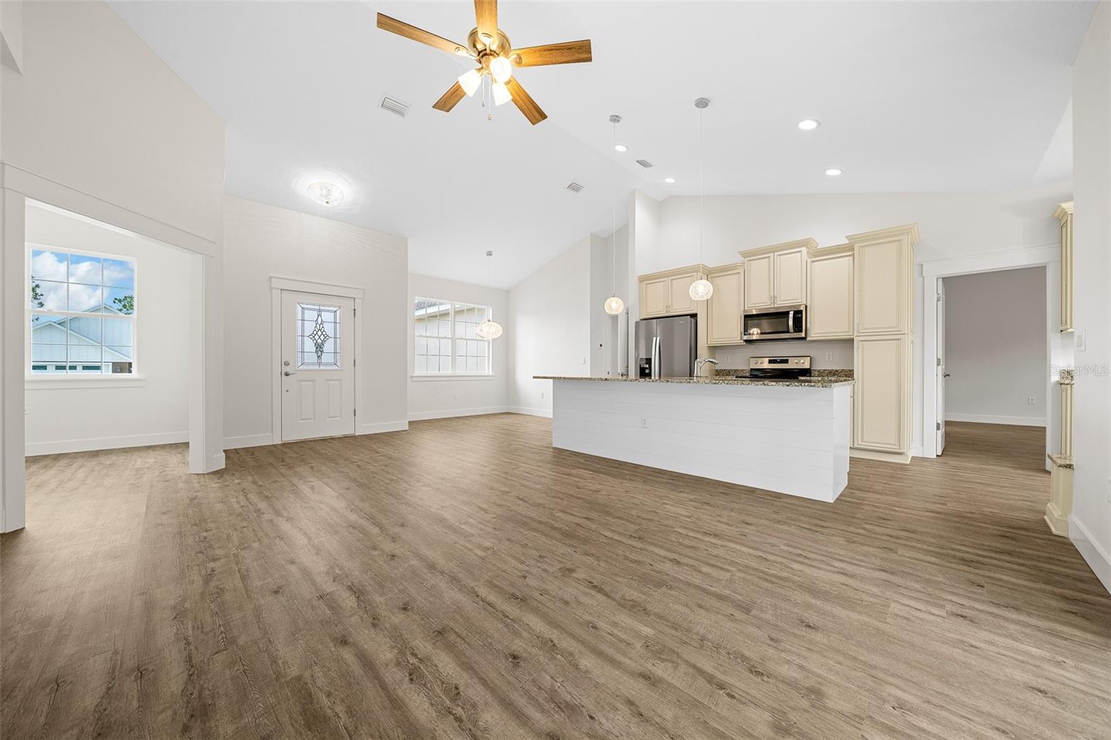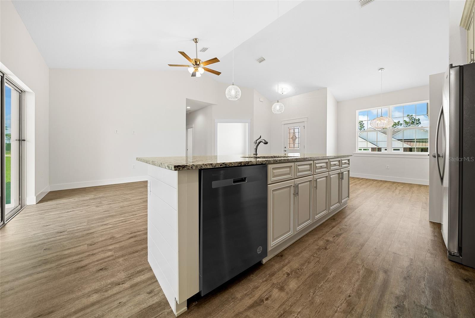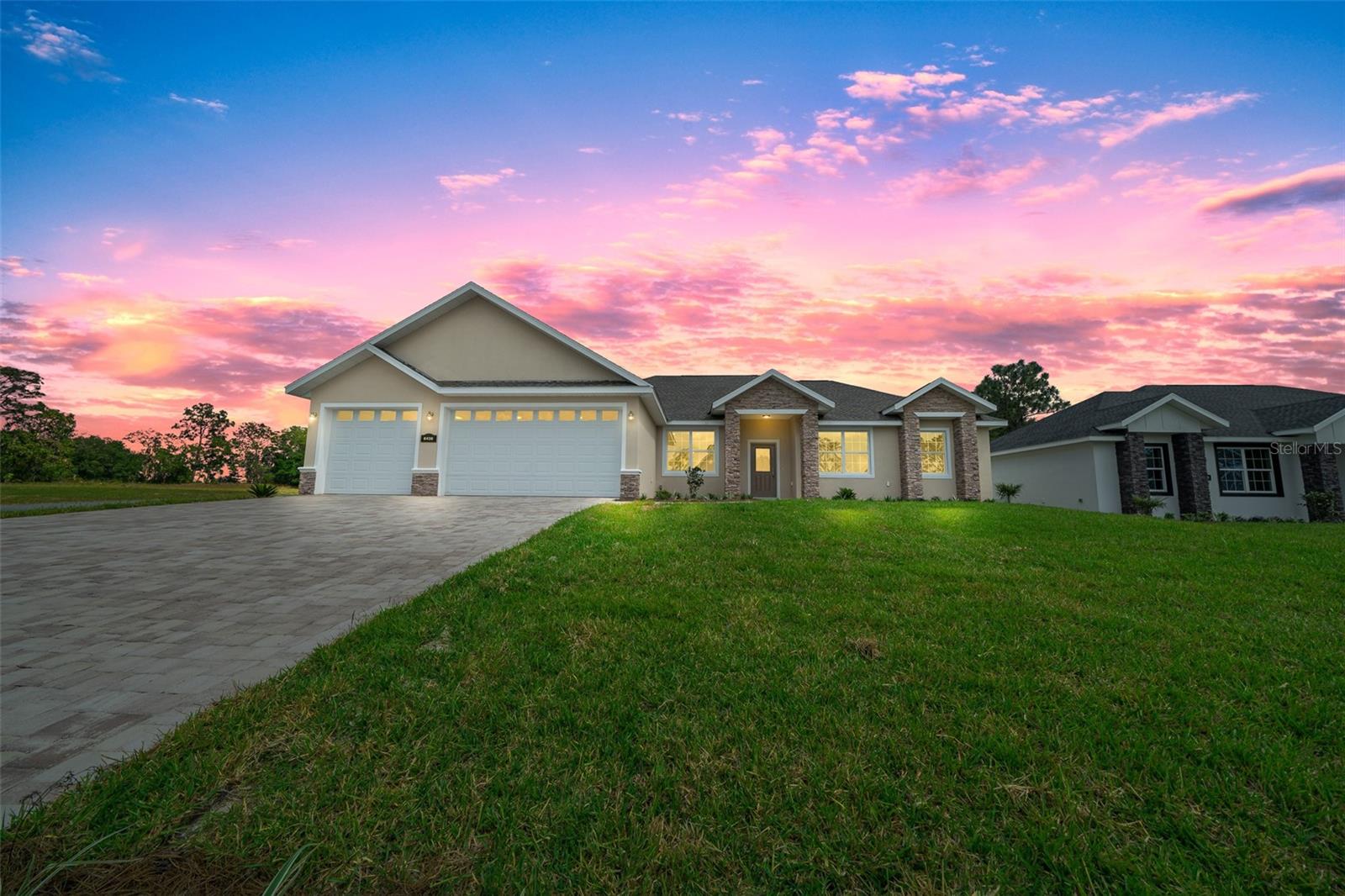 Welcome to your dream home! This brand new 3-bedroom, 2-bathroom 2024 build is located in one of the nation’s premier golf course communities, providing a lifestyle of luxury and leisure. Upon entering, you are greeted by an open-concept layout that blends the living, dining, and kitchen areas. The kitchen features sleek countertops, stainless steel appliances, and ample storage space, making it perfect for both everyday living and entertaining guests. The master suite is a private retreat, boasting a spacious bedroom, a walk-in closet, and a luxurious ensuite bathroom with dual sinks and a walk-in shower. The two additional bedrooms are generously sized and share a stylish full bathroom. With a low HOA, residents have access to the coveted gold course and the club house with a great restaurant. This home also comes with the added peace of mind of a 1-year builder warranty, ensuring that your investment is protected. Don’t miss this opportunity to own a brand new home in a desirable community. Schedule your showing today and make this your forever home!