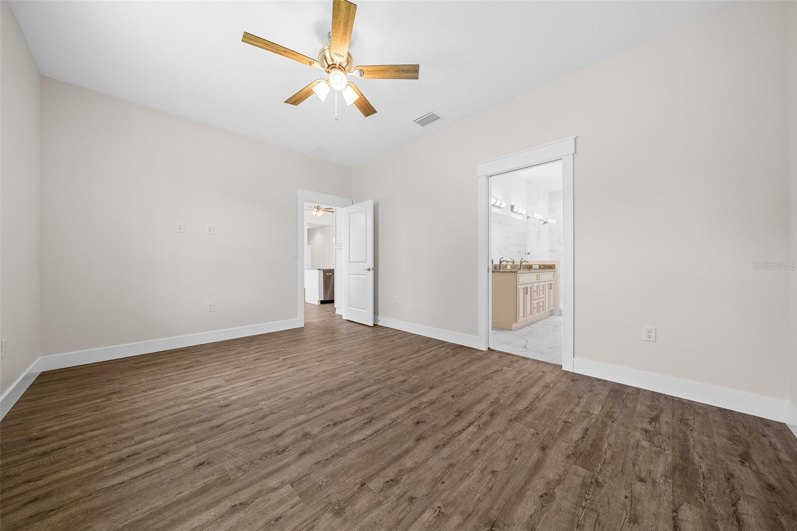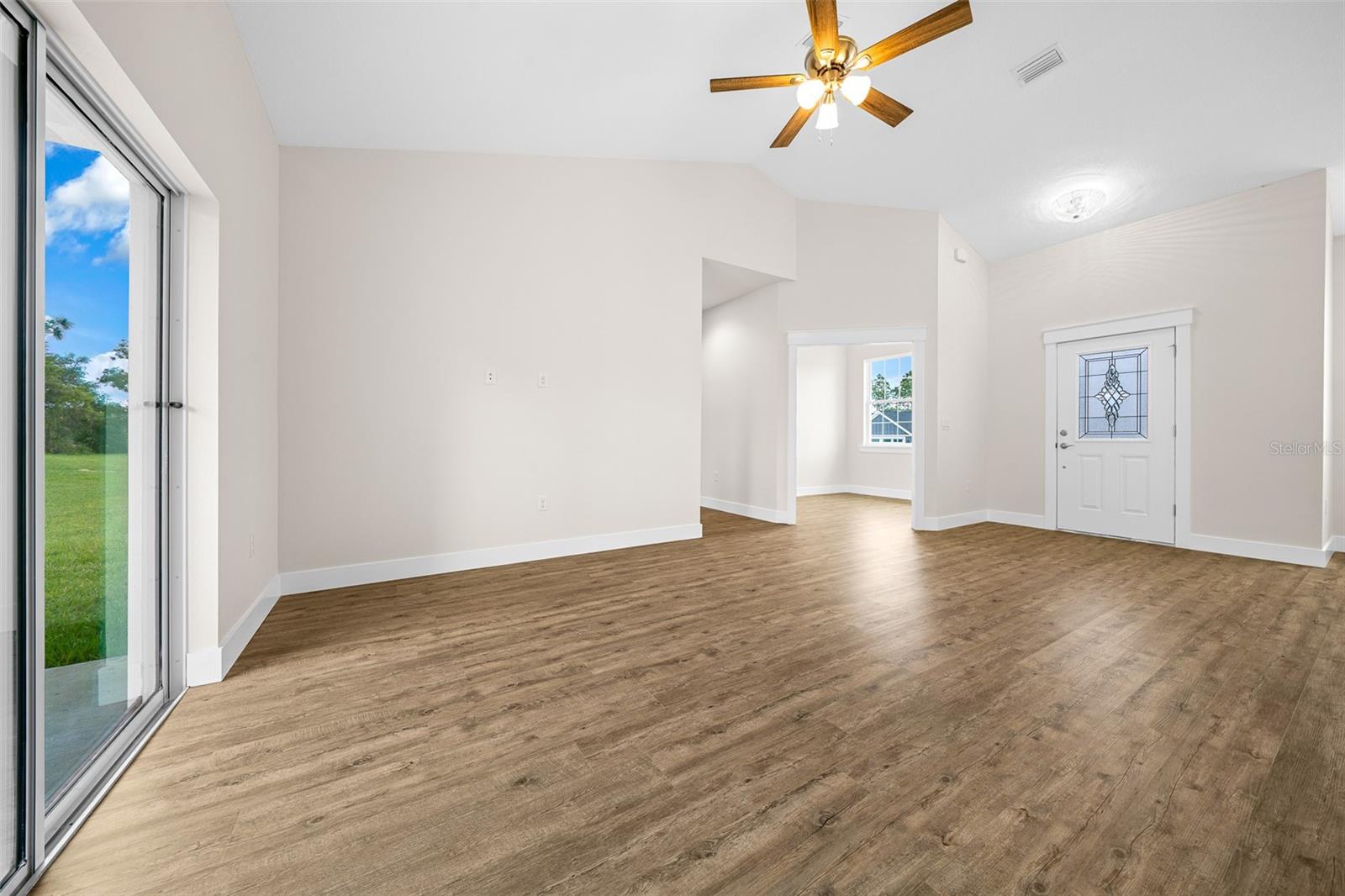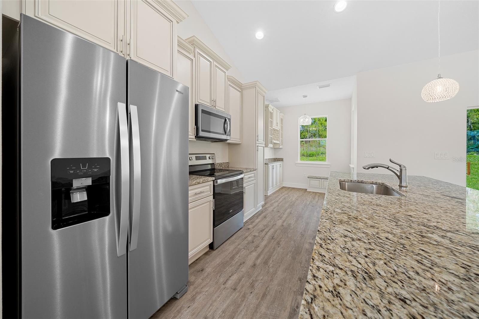 Welcome to your dream home! This brand new 3-bedroom, 2-bathroom 2024 build is located in one of the nation’s premier golf course communities, providing a lifestyle of luxury and leisure. Upon entering, you are greeted by an open-concept layout that blends the living, dining, and kitchen areas. The kitchen features sleek countertops, stainless steel appliances, and ample storage space, making it perfect for both everyday living and entertaining guests. The master suite is a private retreat, boasting a spacious bedroom, a walk-in closet, and a luxurious ensuite bathroom with dual sinks and a walk-in shower. The two additional bedrooms are generously sized and share a stylish full bathroom. With a low HOA, residents have access to the coveted gold course and the club house with a great restaurant. This home also comes with the added peace of mind of a 1-year builder warranty, ensuring that your investment is protected. Don’t miss this opportunity to own a brand new home in a desirable community. Schedule your showing today and make this your forever home!