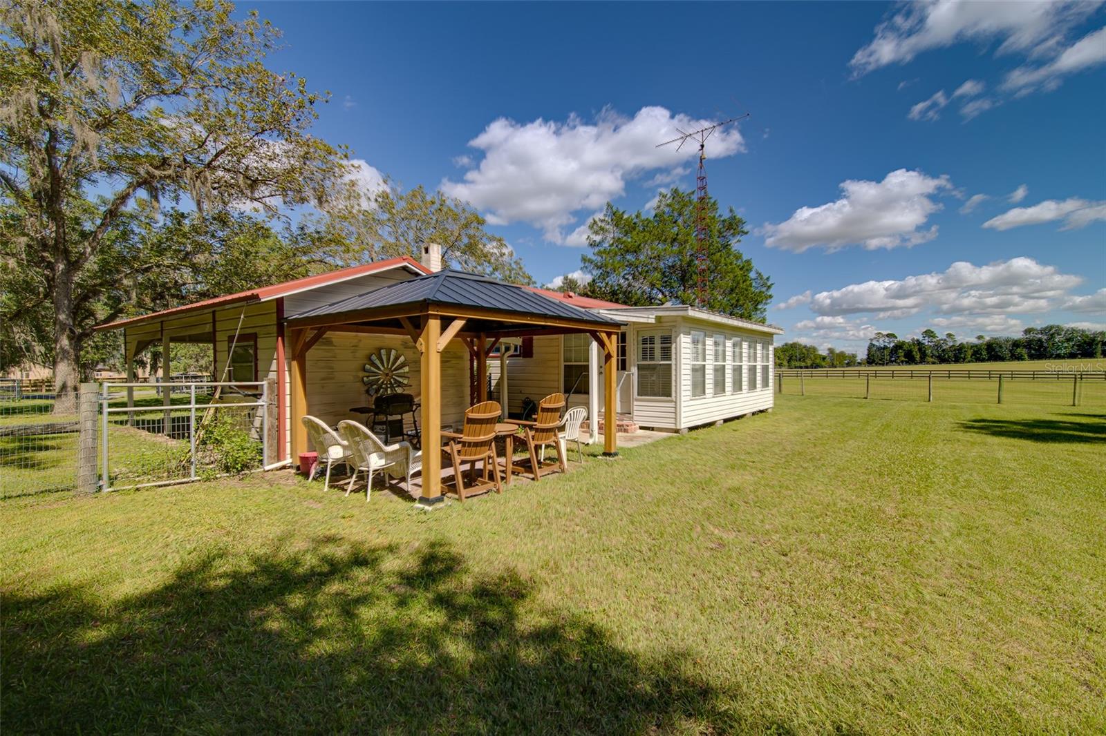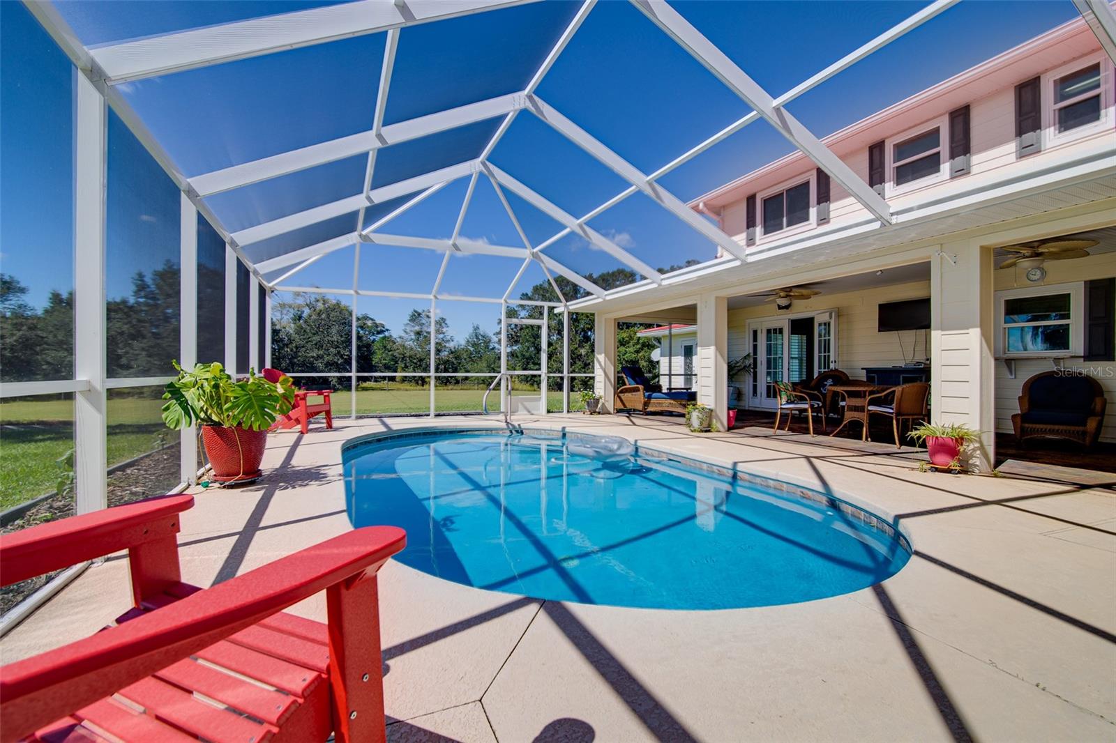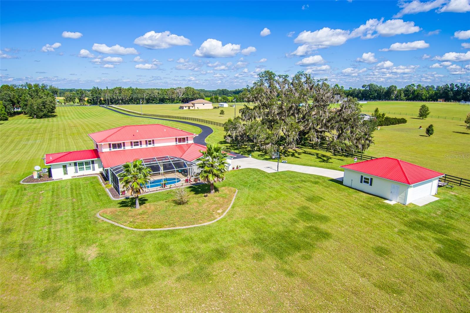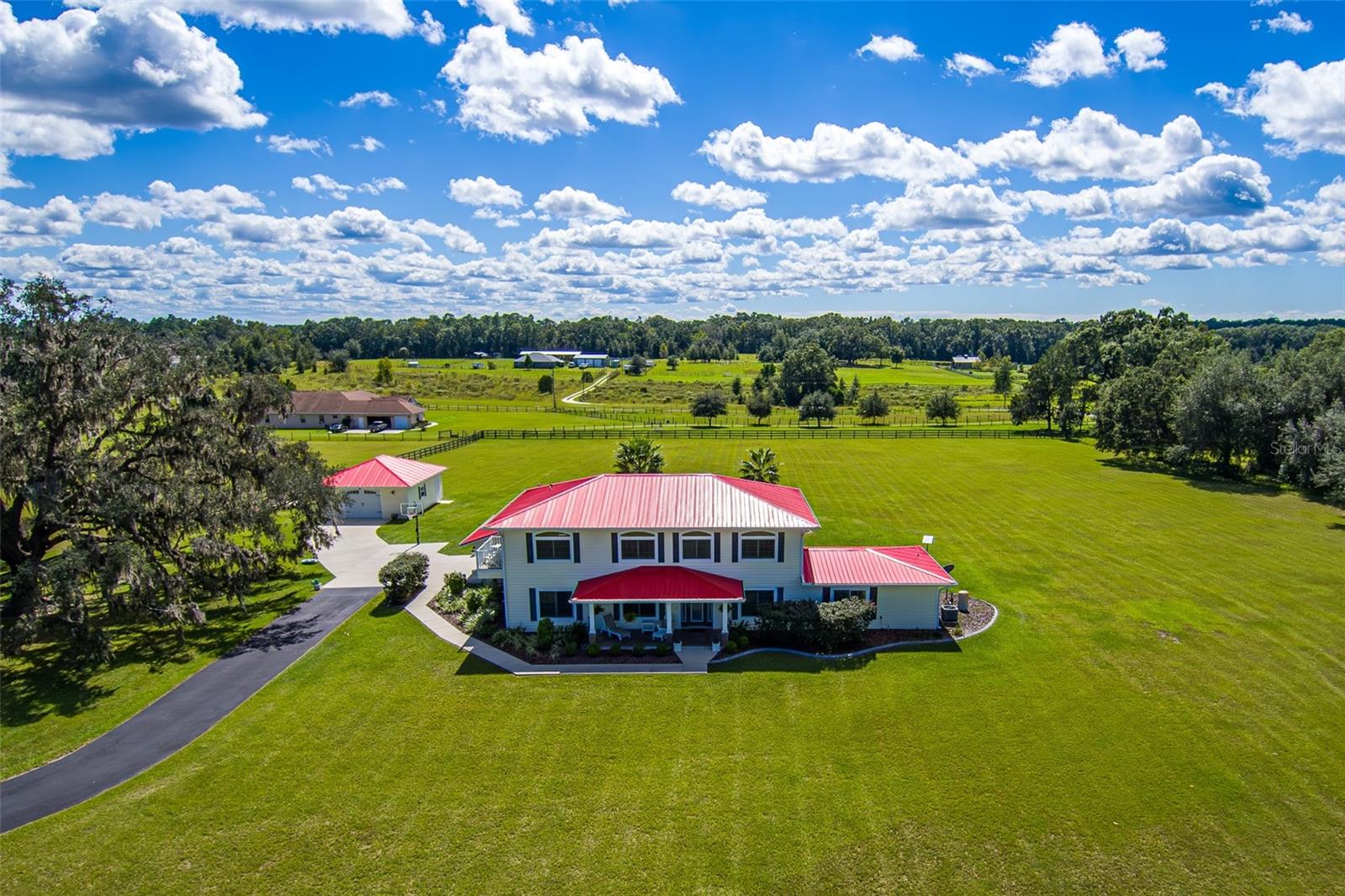 Exquisite Custom-Built Home on 10 Acres with a Bonus Airbnb Property Custom 2016 Fagan Built Home on 10 acres with a second home that is an income producing 3/2 Airbnb. Located 13 miles from WEC in western corridor of Marion County with a short drive to shopping, restaurants , and highways. The main Home boasts four spacious bedrooms and four beautifully appointed bathrooms, there's ample room for your family to grow and thrive. The presence of two primary bedrooms, each with its en-suite bathrooms, ensures that you and your guests enjoy the utmost privacy and comfort. The downstairs primary with en-suite has its own private entrance for privacy. The center of the home is the Kitchen and who doesn’t love a Bright and Well-Equipped Kitchen! This kitchen is a chef's dream, plenty of storage space, top-of-the-line appliances, tons of granite counter space, and every cooks dream a gas stove! It's a space where culinary creativity knows no bounds. The cozy dedicated dining room has two built in corner cabinets for storage and easy access. Just off the Kitchen area is a spacious living/family room with built in entertainment-book case making relaxing with family most enjoyable. Creativity can also extend past the kitchen space, so whether you work from home or need a dedicated space for your hobbies, the bonus office room provides the perfect setting for productivity. Walking throughout the home the interior boasts beautiful engineered hardwood flooring that adds an element of sophistication and warmth to every room. You will also notice the Plantation Shutters, not only enhancing the aesthetics but also allowing you to control natural light and maintain your privacy. Every window in this home frames breathtaking views of the surrounding landscape, creating a sense of serenity and connection with nature. The Primary Bedroom features an amazing Balcony for you to step out onto and have your morning coffee before starting your day or possibly deciding to venture to your private outdoor oasis, complete with a refreshing pool, lanai and outdoor kitchen. It's an inviting space for relaxation, entertainment. There is also a 2 car detached garage that matches the main homes' hardi-board siding. Garage that is detached has automatic garage doors front and back, easy to store your extra things or turn into a workshop/mancave. In addition to the main residence, this property offers an incredible opportunity with a second home. The 3-bedroom, 2-bath, very quaint and private 1600-square-foot home is currently operated as a successful Airbnb and is sold turnkey. It also has a well appointed sun room, carport, laundry building, storage sheds and pole barn. The entire property is fenced as well as a gated entrance with a paved driveway. Whether you choose to continue this venture or enjoy it as a guest house for friends and family, the possibilities are endless.We invite you to experience this exceptional property in person. Words and images can only convey so much – the true magic of these homes reveals itself when you step inside. Please feel free to reach out to schedule a private viewing or ask any questions you may have.