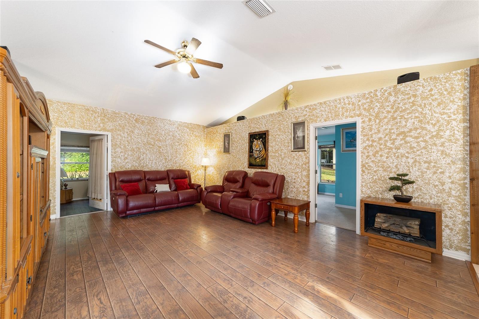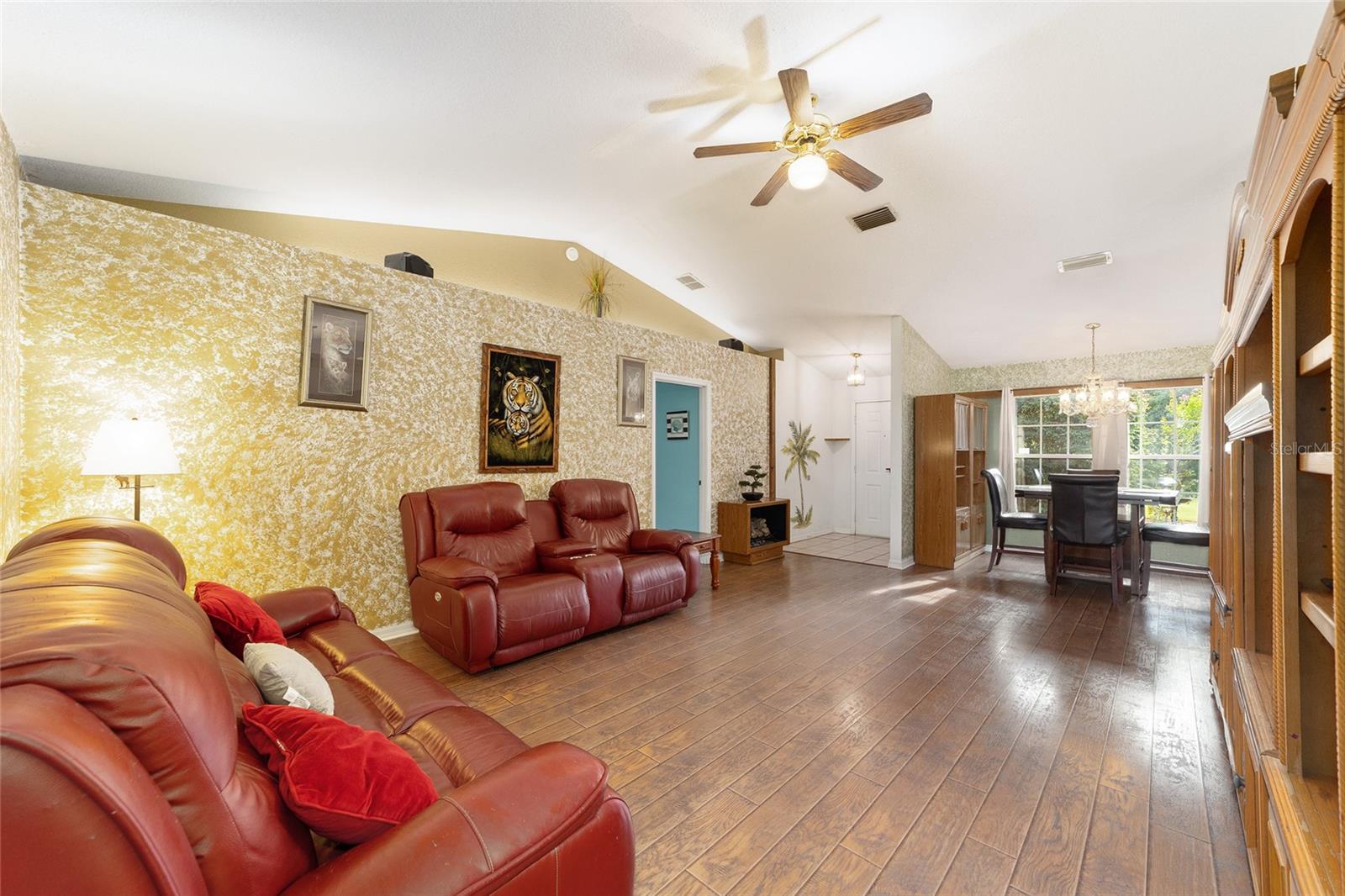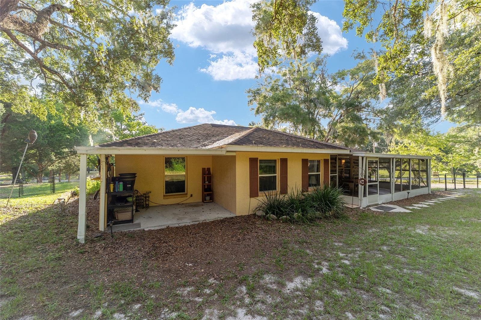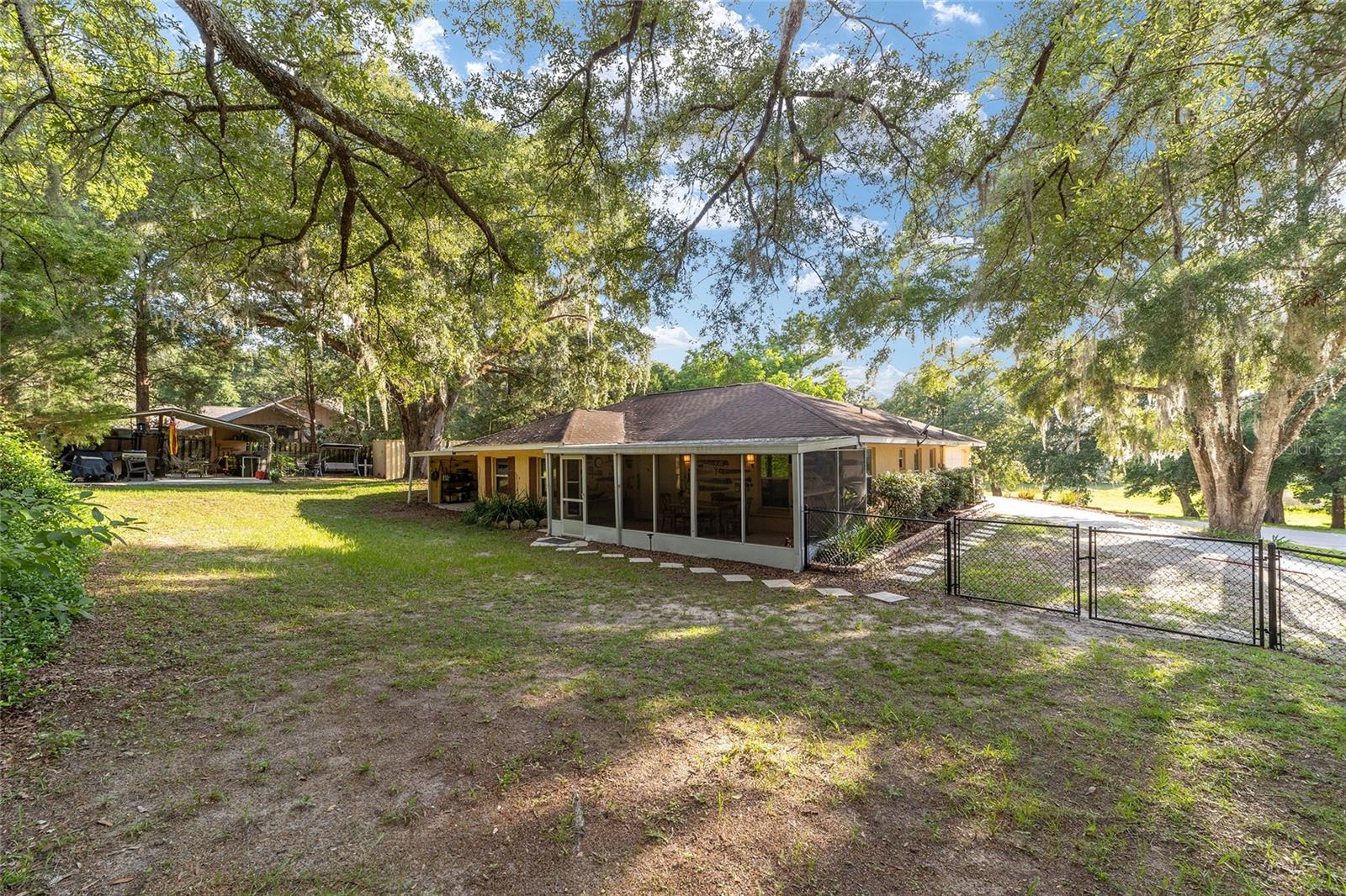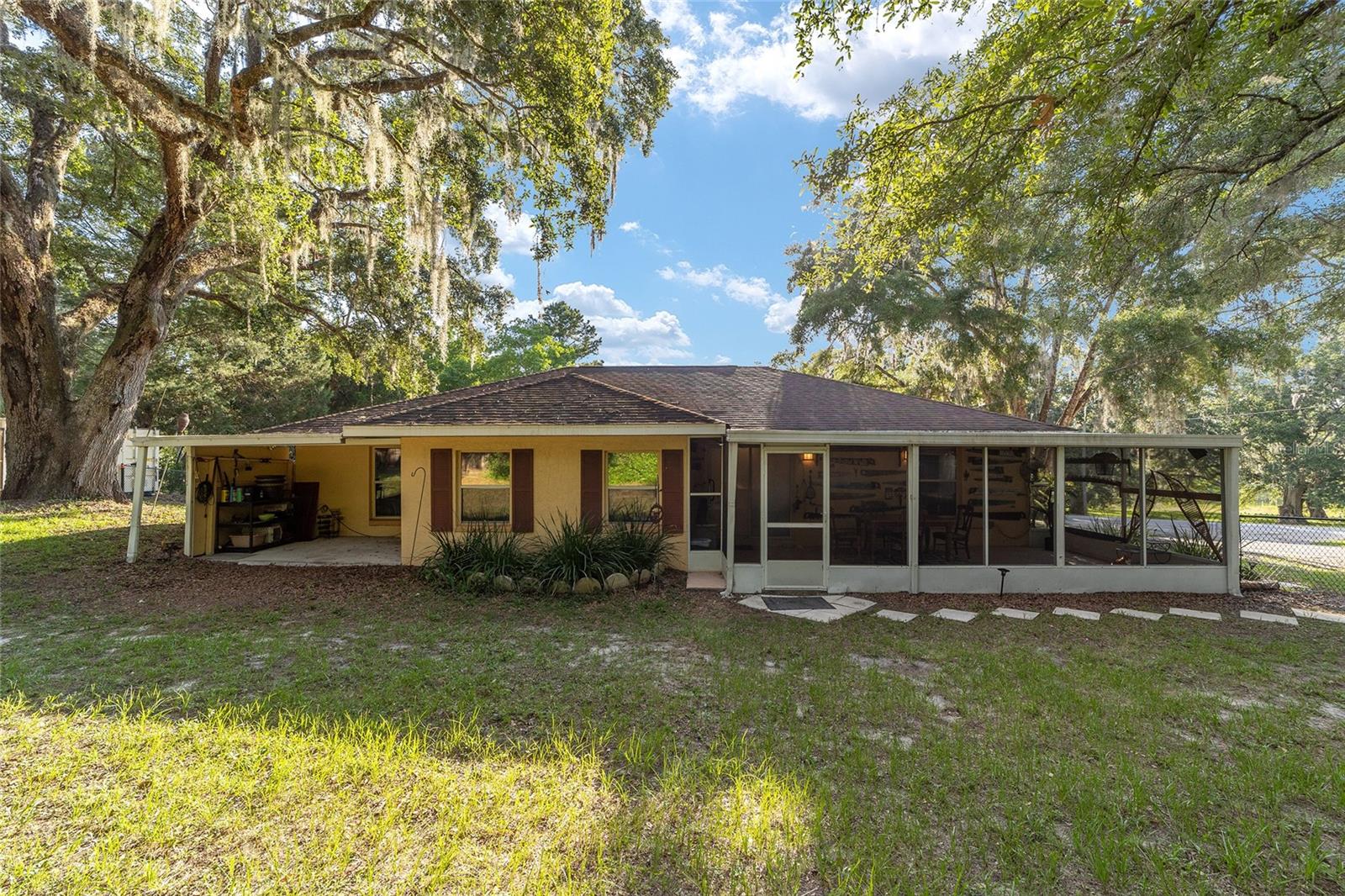 Price Reduction! Welcome Home! This 4 bedroom home sits on half an acre and is surrounded by beautiful oak trees, it's so peaceful. When you walk through the front door, you'll be welcomed into a large living room. Through out parts of the home, you'll see beautiful Dupont elite premium flooring. The kitchen has an island, walk-in pantry and an eat-in kitchen. Spacious master bedroom with a HUGE walk in closet, just wait until you see it! The master bathroom features a large walk in shower. Spare bedrooms are spacious, yet cozy. The huge screened in lanai is perfect for relaxing or an extra space for entertaining family and guests. The back yard is fully fenced in. The back of the home has wood privacy fencing and the sides are chain link. There's access points on either side of the property. The fencing features pull through gates that are 10 ft wide. Large carport in the back with electricity. The carport is perfect for extra vehicles or even a work space. 20 foot shipping container with electricity, could be used as an extra living space, there's so many possibilities! The home features USB throughout and security cameras are available. There's a pond across the street with a playground and lake with a walking path, basketball and tennis court just one block away . This property is conveniently located near Ocala and the heart of Dunnellon. The beautiful rainbow river is a short 25 minutes away. Don't let this one pass you by, schedule your showing today!