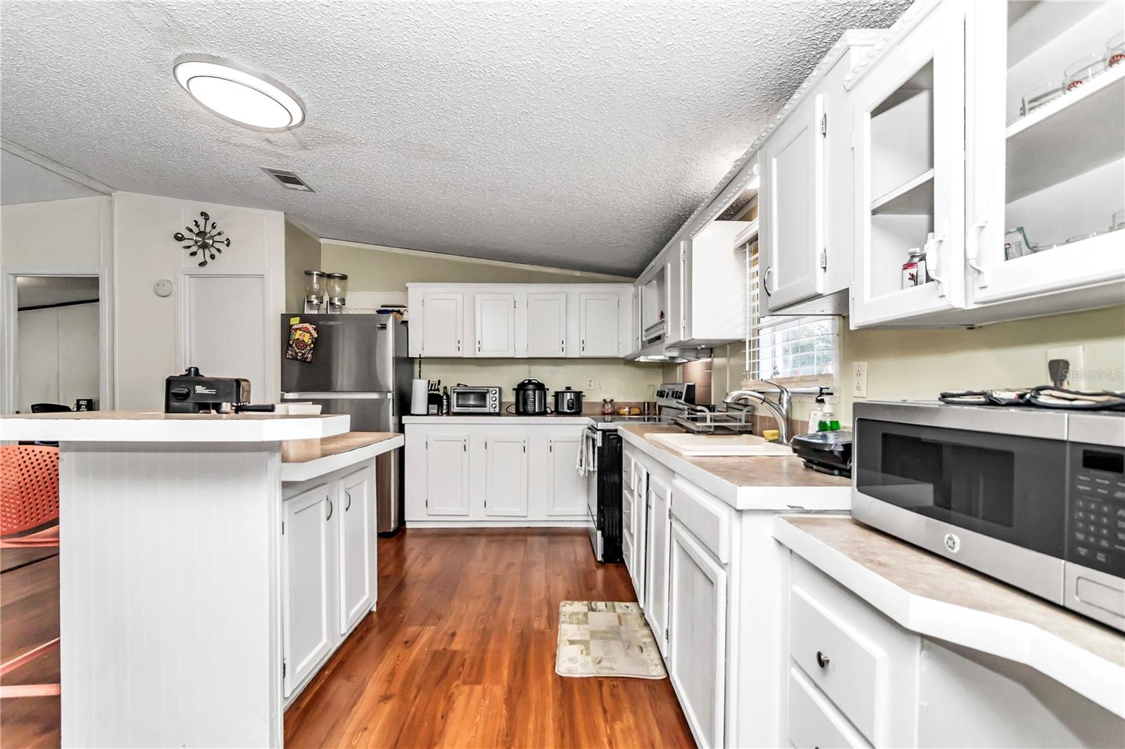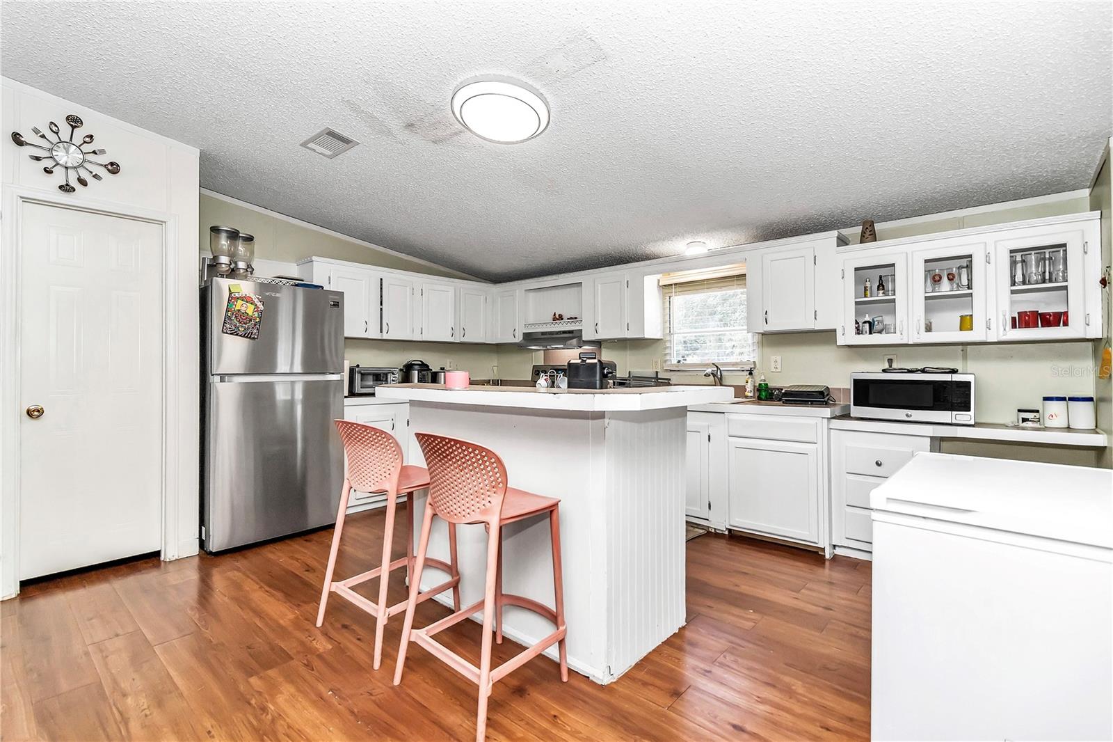Beautiful Fenced and Gated Home with Mother-in-Law Suite. Welcome to this charming property that offers a perfect blend of comfort and functionality. This fenced and gated home features a versatile mother-in-law suite and is located in a serene neighborhood. The main home is spacious with 2 bedrooms and 1.5 bathrooms, featuring a large kitchen with ample counter space, and two separate living areas with wood laminate flooring throughout. Enjoy relaxing and entertaining on the front and rear decks. The mother-in-law suite includes 1 bedroom and 1 bathroom, along with a spacious kitchen and living area, providing a private space for guests or extended family. Outdoor features include multiple areas for storage, a fun summer kitchen and hangout spot, an enclosed space for pets, and a 2-car carport. Schedule your showing today! This home is perfect for multi-generational living or for those who love to entertain. Don’t miss the opportunity to make this wonderful property your own!