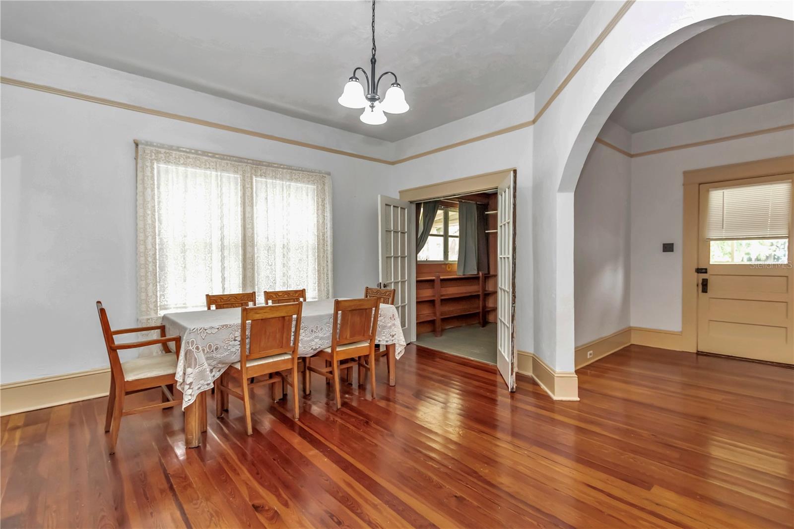 LOCATION LOCATION LOCATION!! This historic 1926 home offers old time charm right in the heart of Dunnellon! Property is directly in front of the entrance to The City Beach where you can enjoy the refreshing waters of the Rainbow River, a kid’s playground, picnic tables and grills. Every square inch of this home has such unique character! From the skeleton keys, to the door knobs and the original hardwood flooring! This lovely home features high ceilings, plaster walls and a picture rail that brings out the uniqueness of the home. The layout of the living-dining room separated by an architectural arch opens the room up for large family gatherings. This beautiful 3-bedroom, 2-bathroom home boasts almost 1400 sq ft and features a walk-in pantry, an indoor laundry room and an office/den for those that work from home. The central bathroom has a tub/shower combo which also opens to the front bedroom and the second bathroom. The master en-suite bedroom could also be utilized as an interior mother in law suite which also includes a private exit/entry. This bathroom features a walk-in shower with a handicap toilet. The front of the home offers a walkup ramp to a cozy screened in front porch for enjoying the fresh air. The backyard offers room for a small garden, and a kid’s playground. There is also plenty of space for additional storage in the 12X18 shed! The home had a new roof in 2023, new outside paint and rooms with a fresh coat of paint inside. The home was updated with central air/heat several years along with the electric panel and water lines. Property is within walking distance to the Blue Run walking & biking trail, Rainbow River tubers exit, restaurants and more! Under 5 minute drive to downtown Dunnellon and you will have access to restaurants, shopping, grocery stores and medical offices. A short 20 minute drive to Ocala where you will find medical offices, hospitals, grocery stores, restaurants, shopping and malls!