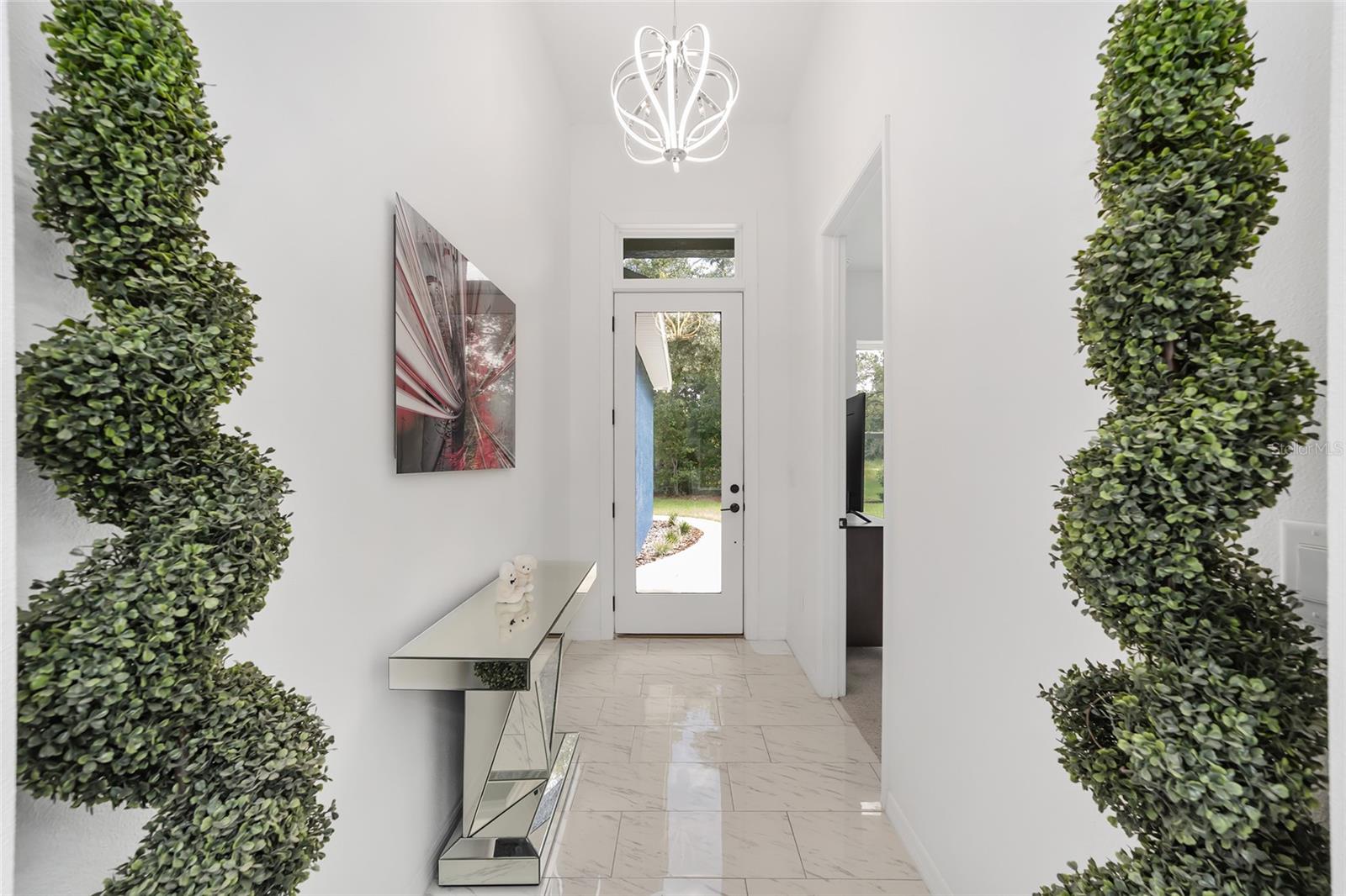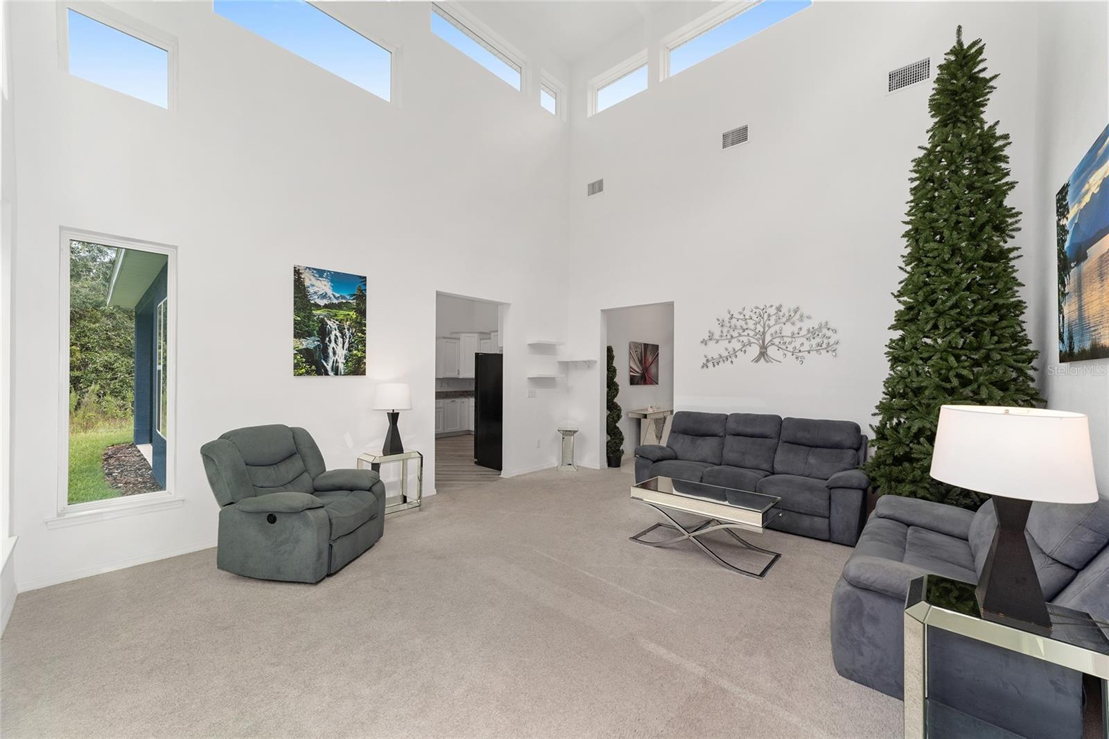 Get ready to start packing! This one-of-a-kind custom-built in 2023 home on over 1 Acre with no rear neighbors is ready for it's new owners!! Located in the beautiful and peaceful Rainbow Lakes Estates, this property puts an emphasis on the natural Florida sunlight. As soon as you walk into the foyer, you feel the ambience of the beauty as it then opens into a unique and exquisitely articulated large great room with a 22' tray ceiling accented by 28 windows providing abundant natural sunlight. The home has 2 en suite bedrooms with bathrooms and one flex room (potential to be utilized in multiple ways such as a third bedroom, second living space, or even an office, man cave, etc.) The primary bedroom has a beautifully walk-in tiled shower as well as a door to an outdoor open large patio ideal for your hot tub or patio set for your morning coffee. Did I mention this unique built emphasizes natural light? Enjoy beautifully placed skylights in the kitchen eating area with a 12' vaulted ceiling as well as a convenient pass-through serving shelf from the kitchen to the lanai, perfect for entertaining!! This home design is perfectly designed for entertainment whether that be for a potential pool in the backyard, fire pit, garden, workshop, or just a play space, with the amount of space your dream ideas will come to reality! Enjoy privacy and security as the home sits approx. 100 feet from the road leading to an oversized garage (26'x22') while still providing an abundant amount of backyard space to accommodate anyone's plans. The property is conveniently only a short drive to local shopping, dining, and entertainment while also sporting community amenities such as a community boat ramp for lake access, fishing, playground, tennis courts, park, restaurant, etc. Enjoy the tranquility of no rear neighbors and the benefits of living in Rainbow Lakes Estates in this beautifully designed custom home. Contact us today to schedule a viewing and make this dream home yours!