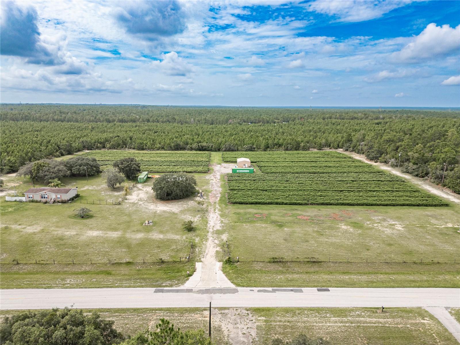 One or more photo(s) has been virtually staged. Nestled on a sprawling 9.81 acre blueberry farm, this charming mobile home offers a unique blend of agricultural opportunity and comfortable living! The property features over 5 acres of healthy, high-density blueberry bushes that are expected to produce an impressive 50,000 pounds of blueberries this year. The home itself boasts a spacious open floor plan with three bedrooms, two bathrooms which provides ample space for family and guests. The split room layout ensures privacy, while the mix of vinyl and carpet flooring adds to the home's cozy appeal. The large kitchen is a highlight, offering plenty of cabinetry for storage and ample countertop space for meal preparation. In addition to the residential well, the property includes an 8-inch agricultural well to support the farm's needs. There is a 26X30 Prefab steel building with an enclosed office inside which is perfect for fam operations or additional toy storage. There is also a 30X30 open metal building that can be used as a carport or additional storage for an RV. This property presents an ideal opportunity for those seeking a rural lifestyle with the potential for agricultural income. Don't miss OUT!! Property is within 10 minutes of Crystal River where you will find natural springs, hiking trails, restaurants, medical offices, grocery stores and more. Short 15 minute drive to Dunnellon where you can kayak/tube on the Rainbow River, find grocery stores, shopping and more!