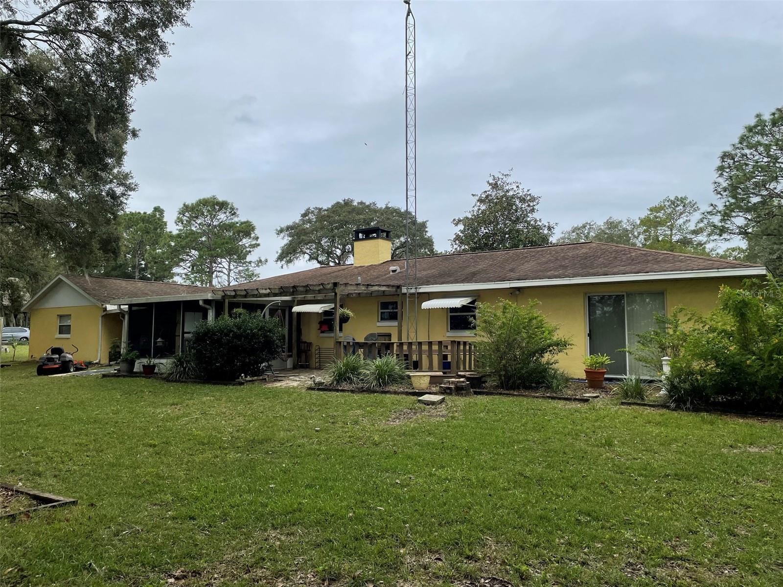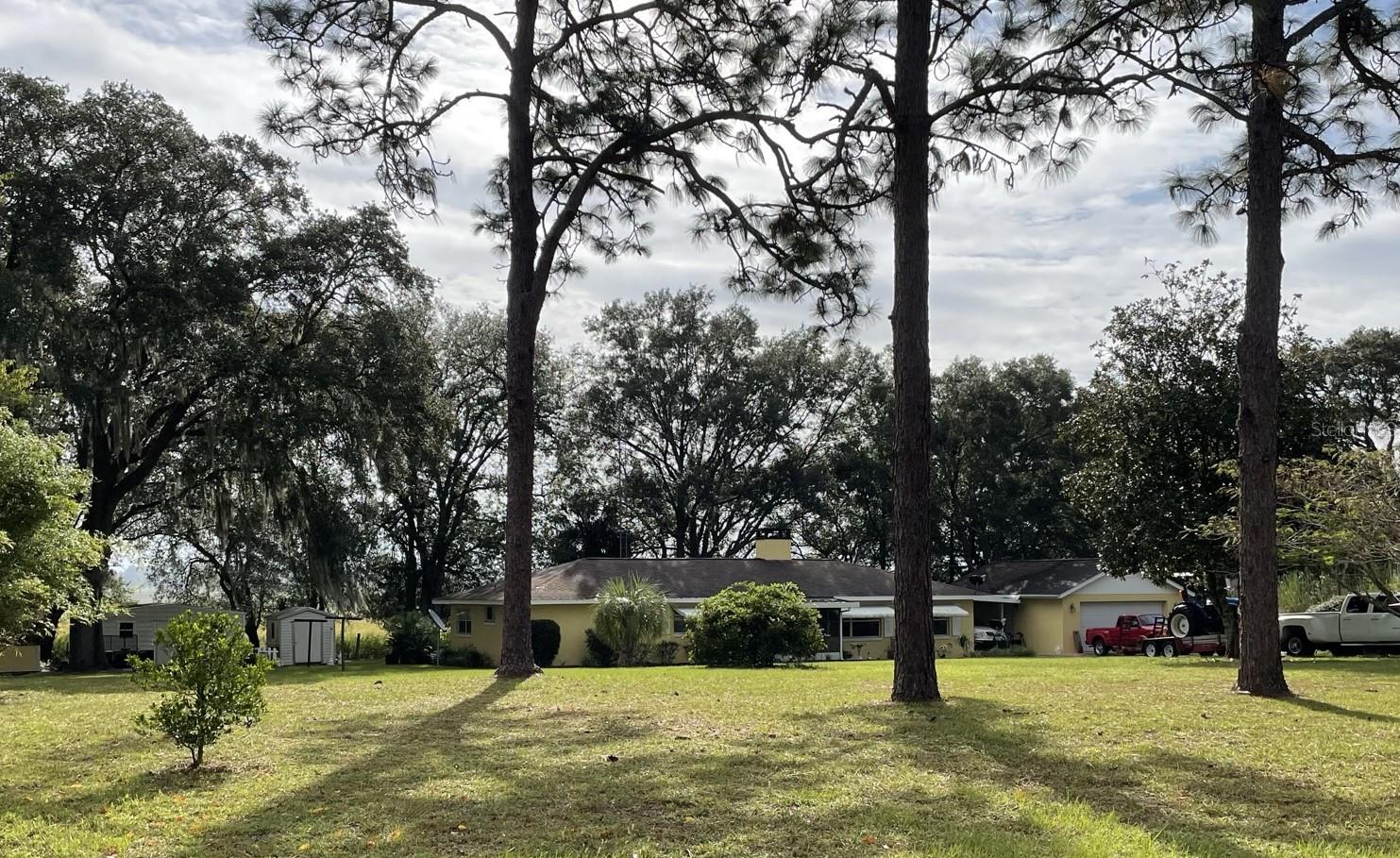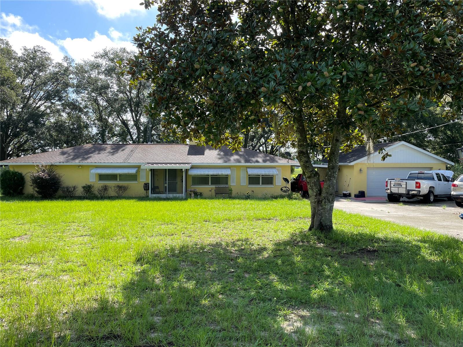 Welcome to peace and tranquility! This beautiful property backs up to picturesque farm land. The screened in lanai, a deck and an open patio offer spectacular views! Home has a detached 2 Car oversized garage (22x28) with workbench, a sink and plenty of cabinets for storage. There is also an attached carport and utility sheds, one with electric. Inside the home you will find a nice size kitchen with breakfast bar and spacious dining area, which opens to the family room with a wood burning fireplace. Master bedroom is large and has 2 closets and private bath. Nice size guest bedroom and 2nd full bath. Plus 2 BONUS ROOMS which can be used as an office, den, entertainment/fitness room or extra bedroom. There is a 3rd full bathroom/laundry room combo. Tucked away in peaceful Rainbow Lakes Estates and not far from the beautiful crystal clear waters of Rainbow Springs State Park where you can canoe, kayak, swim, snorkel and picnic. This home is a must see!!