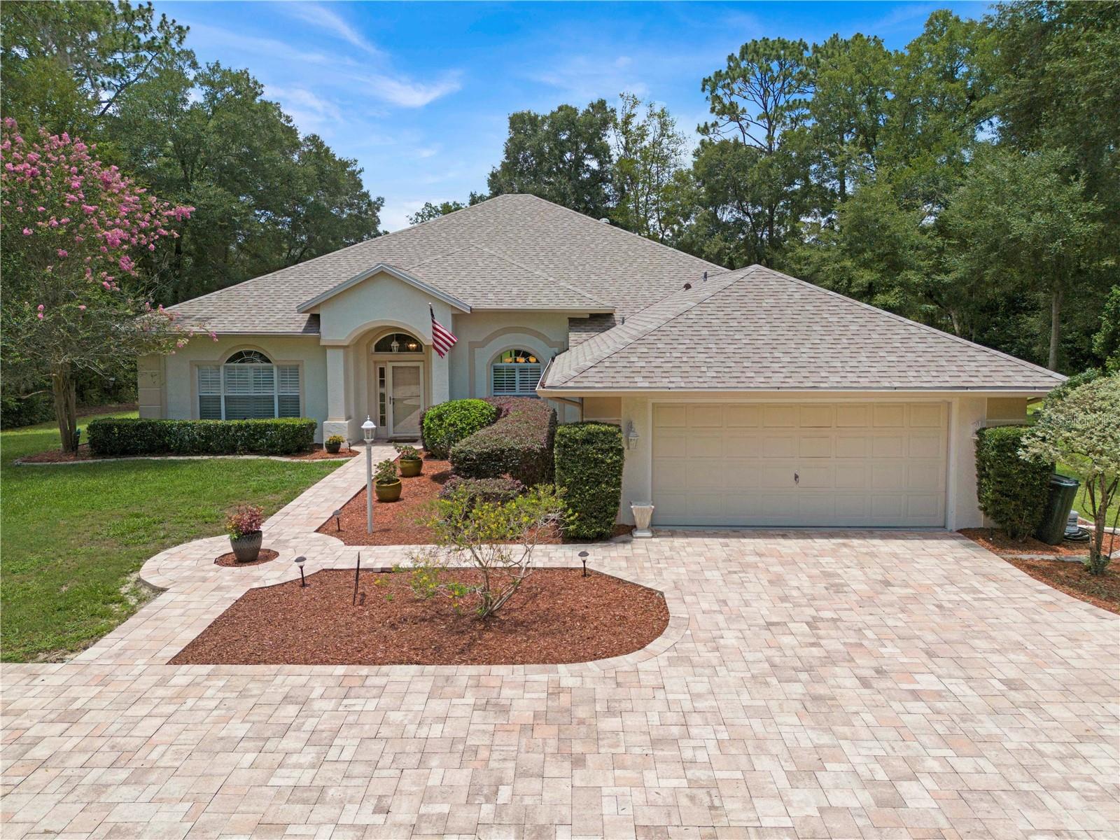 Welcome to Rainbow Springs Country Club, where luxury living meets natural beauty! Nestled on a sprawling .80-acre lot, this exquisite 3502 square foot home offers an unparalleled opportunity to embrace the serene lifestyle of Dunnellon, FL. As you enter through the front door, you'll be greeted by a grand foyer that sets the tone for the exceptional craftsmanship and attention to detail found throughout this residence. The open-concept design seamlessly connects the living spaces, creating a perfect flow for entertaining and everyday living. The heart of the home is undoubtedly the spacious eat in kitchen, which boasts solid wood cabinetry and stainless steel appliances. With ample counter space and plenty of storage, culinary enthusiasts will find themselves inspired to create culinary delights. The expansive living room is an inviting retreat and a great space for family gatherings. The large florida room features a wall of sliding glass doors adorned with remote controlled blinds, the panoramic view is second to none! It's the perfect place to unwind after a long day or gather with loved ones for lively conversations. The master suite is a true oasis, offering a private sanctuary to relax and rejuvenate. With its spacious layout, high ceilings and abundance of natural light this haven provides the perfect escape. The en-suite bathroom is a spa-like retreat, complete with a luxurious soaking tub, a large walk-in shower, dual vanities, and a generously sized walk-in closet. Two additional well-appointed bedrooms, provide comfort and privacy for family members and guests alike. These rooms have ample space for customization, whether you envision a home office, fitness center, or media room. Step outside onto the beautiful paver patio, where you'll discover a haven for outdoor entertaining and relaxation. The large backyard showcases the natural beauty of the surrounding landscape, offering a serene and private retreat. With plenty of land at your disposal, there's room for a pool, a garden, or any other outdoor oasis you can imagine! The office was designed so that it can easily be converted into a fourth bedroom. Plantation shutters throughout. House is set up for a generator. ROOF 2021