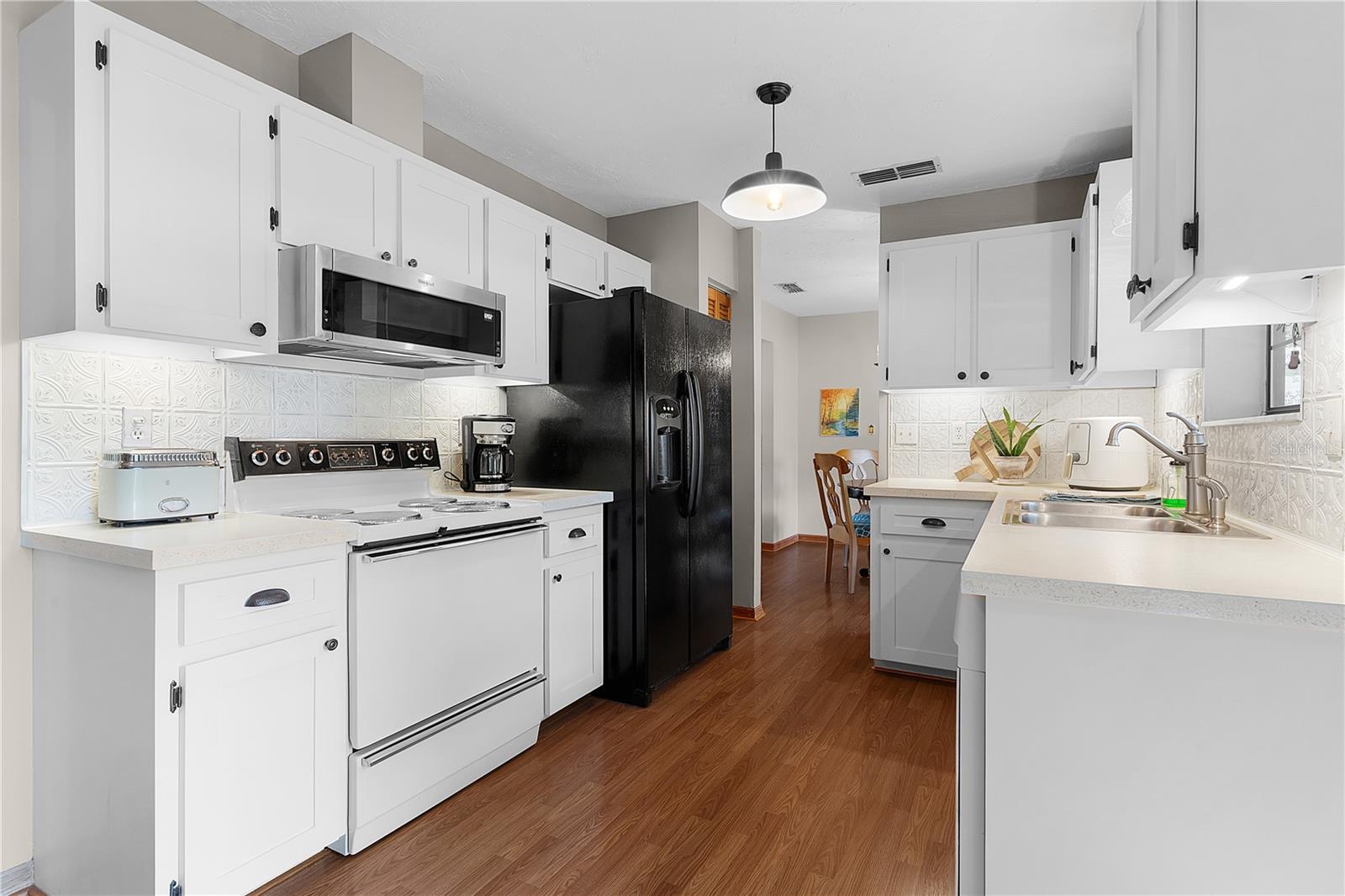 Immaculately cared for 3-bedroom, 2-bath home set on a generous 2 parcels for one price second PID# 3529-064-023, a grand total of .86-acre lot with a park-like setting surrounded by mature trees. The house features no carpet throughout, refaced cabinets in 2019, an eat-in kitchen, formal dining room, spacious living room, and a large master bedroom with a walk-in closet and ensuite bathroom. The exterior is freshly painted, with a metal roof installed in 2015, cedar shutters, a new garage door 2023, HVAC 2016, new well pump 2024, partially fenced backyard, a large shed with electric and an RV hook up. The property also includes newly updated double-paned tinted windows throughout. This neighborhood also includes a lake with walking trails, tennis courts and a playground. Come see this charming home today!