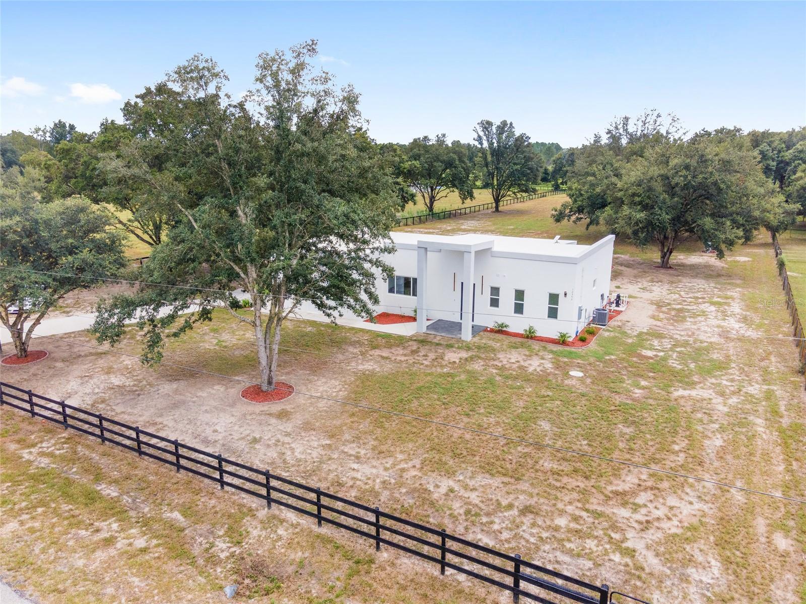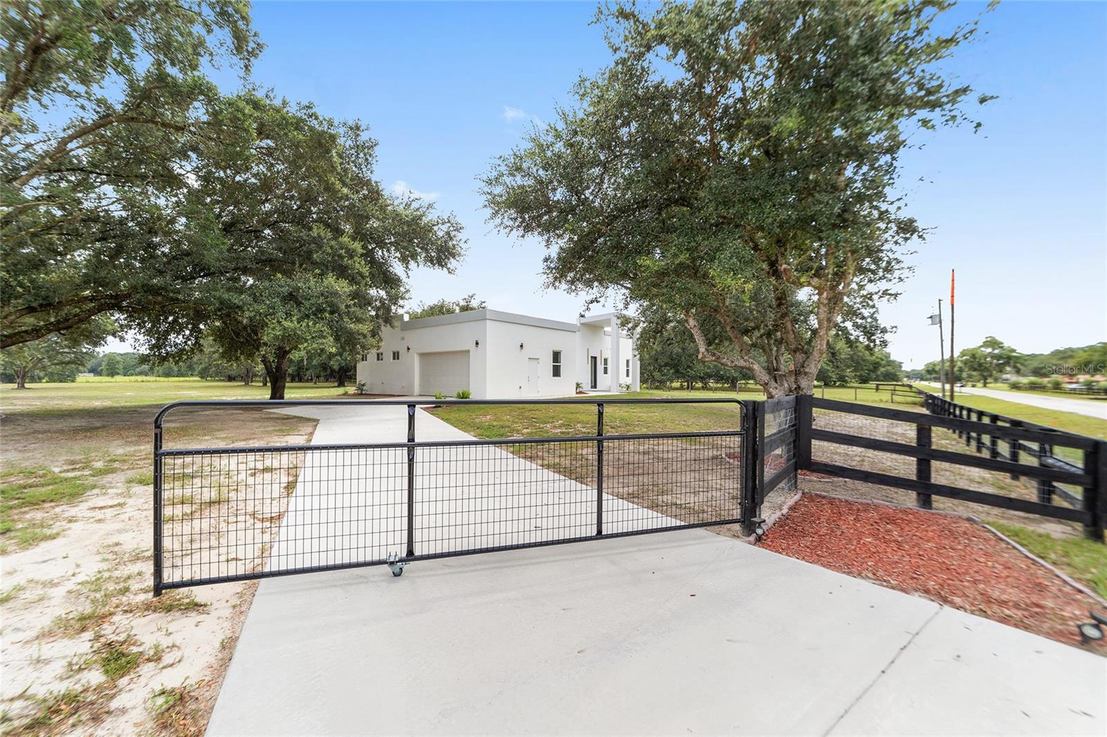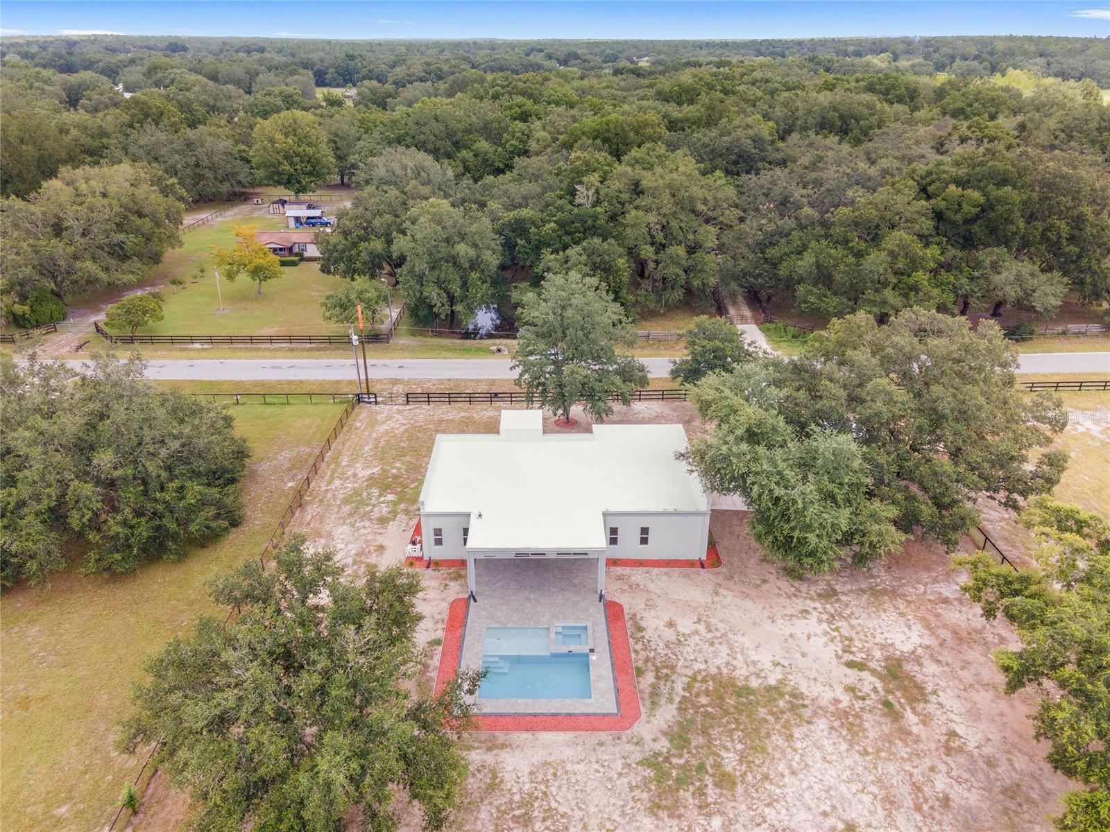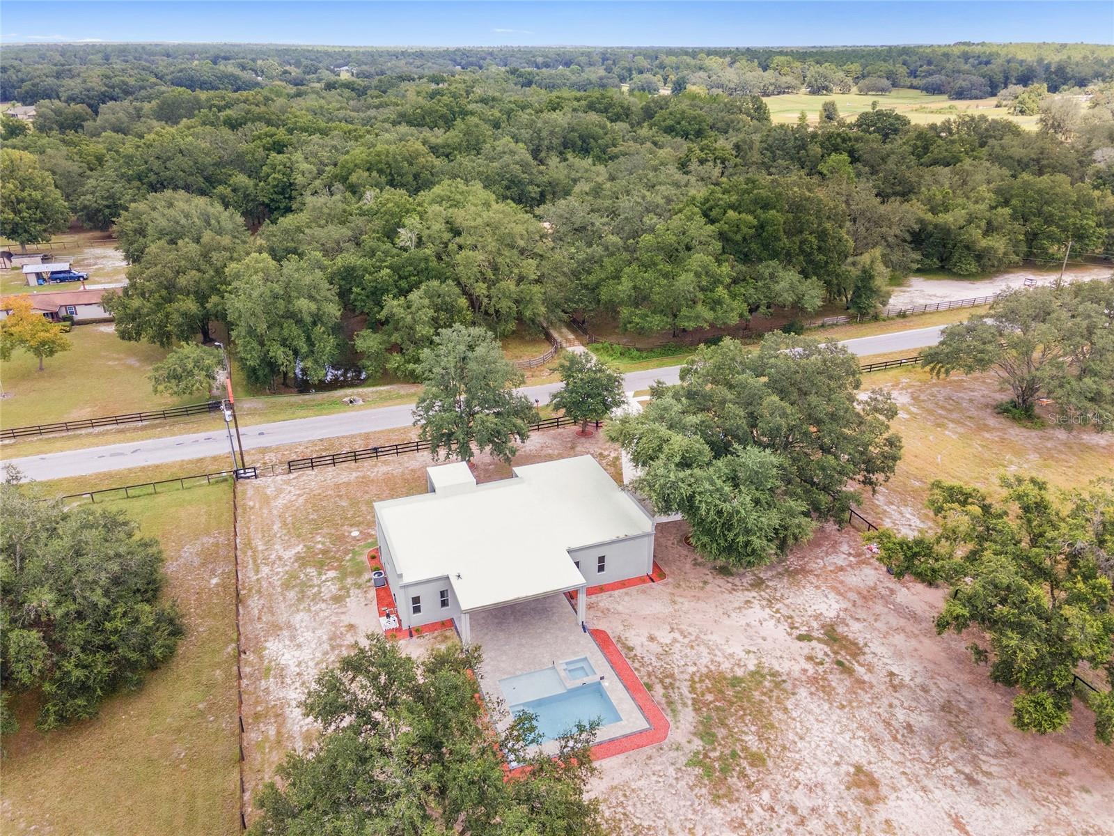 Nestled between Dunnellon and Ocala, this Mediterranean-style home offers the perfect balance of privacy and convenience. Just a short drive from local dining, shopping, and everyday amenities, the property is less than 20 miles from the World Equestrian Center, making it a prime location for equestrian enthusiasts. Built with insulated concrete forms, this home is engineered for ultimate safety, boasting hurricane resistance, tornado protection, and a concrete roof. Providing fortress-like security for you and your loved ones. Inside, the three-bedroom, three-bath home features a thoughtfully designed split floor plan, offering privacy and comfort. One bedroom functions as a versatile in-law suite, complete with a private bath, separate entrance and easy access to the pool. The interior is equally impressive, with soaring 12-foot ceilings, high-end finishes, and a gourmet kitchen outfitted with quartz countertops, soft-close cabinetry, and an open layout perfect for entertaining. The home comes equipped with StarLink internet, ensuring fast, reliable connectivity. Throughout the home, 24-inch porcelain tiles create a seamless, elegant flow. The luxurious baths feature walk-in showers with intricate tile work and brass fixtures, adding a touch of sophistication. Step outside to your private pool and expansive lanai, where you can relax while overlooking the fully fenced 2.27-acre property. With A-3 zoning and no HOA restrictions, this land offers endless possibilities, whether for agriculture, pets or your personal hobbies. This property offers a blend of upscale living and peaceful, country charm. Don't miss the opportunity to make this serene escape your own. Schedule a showing today!