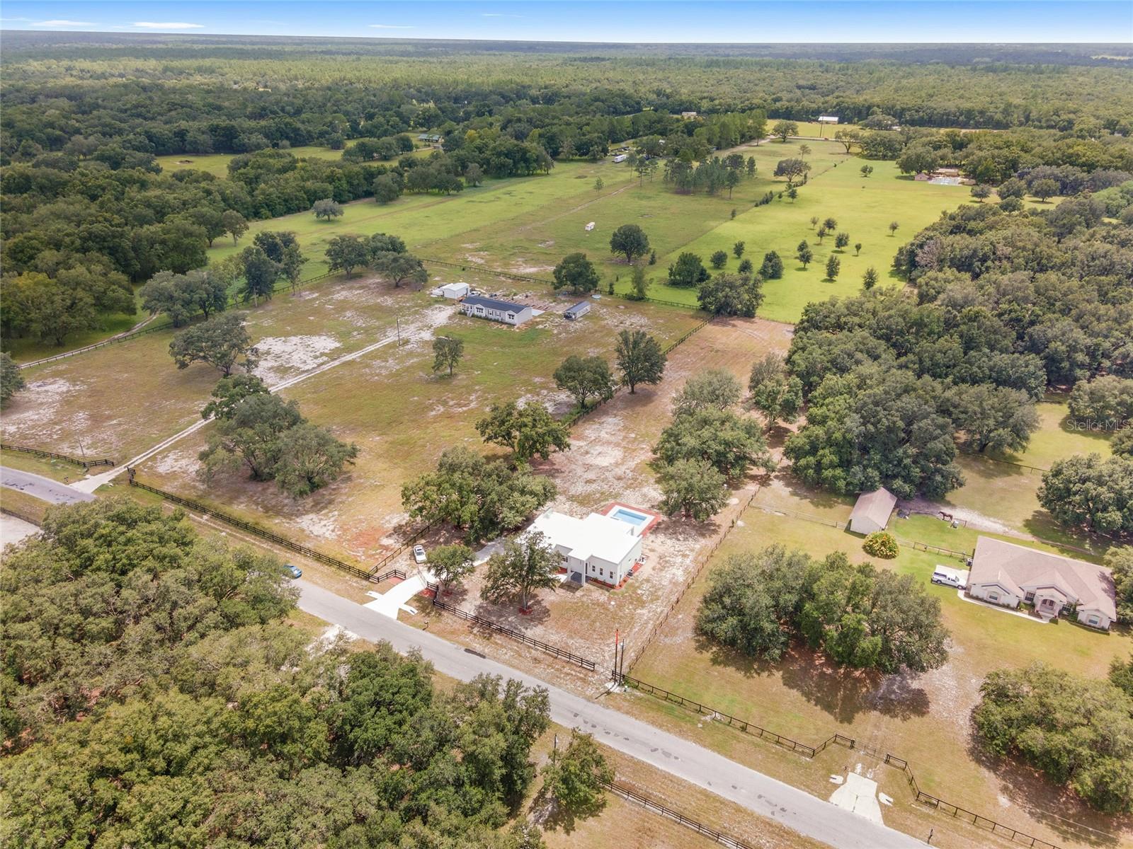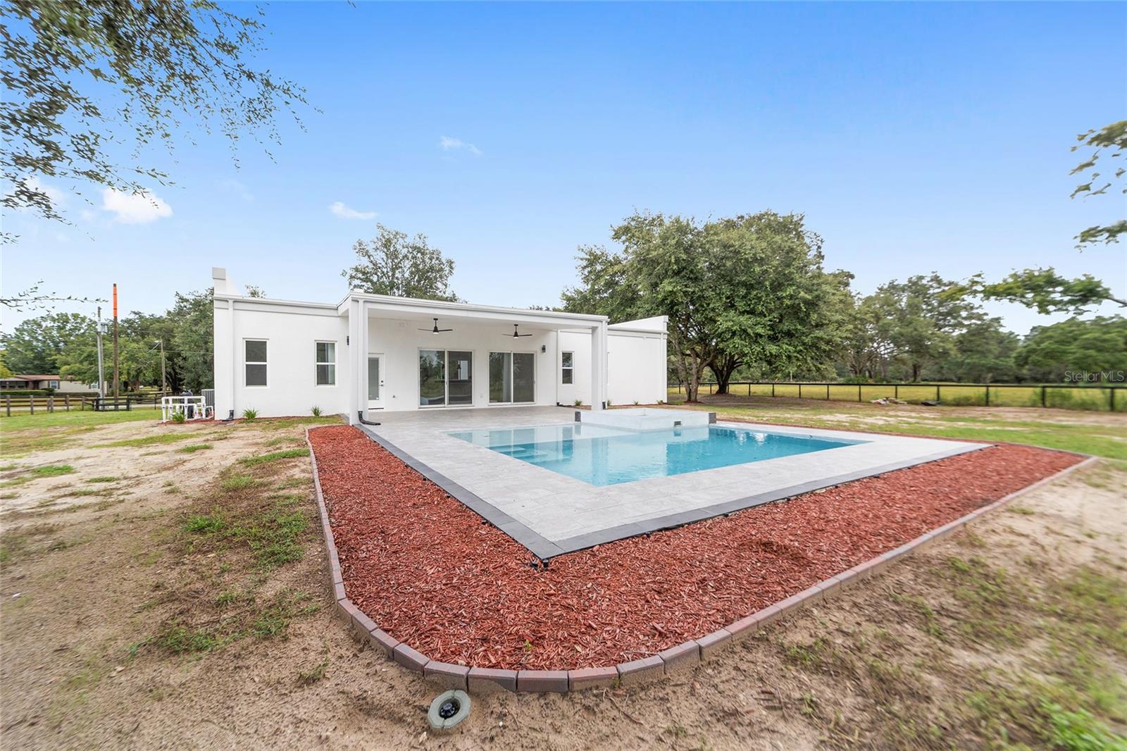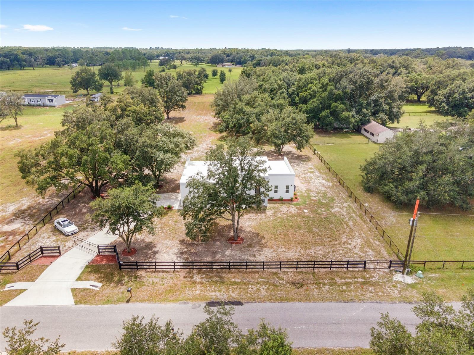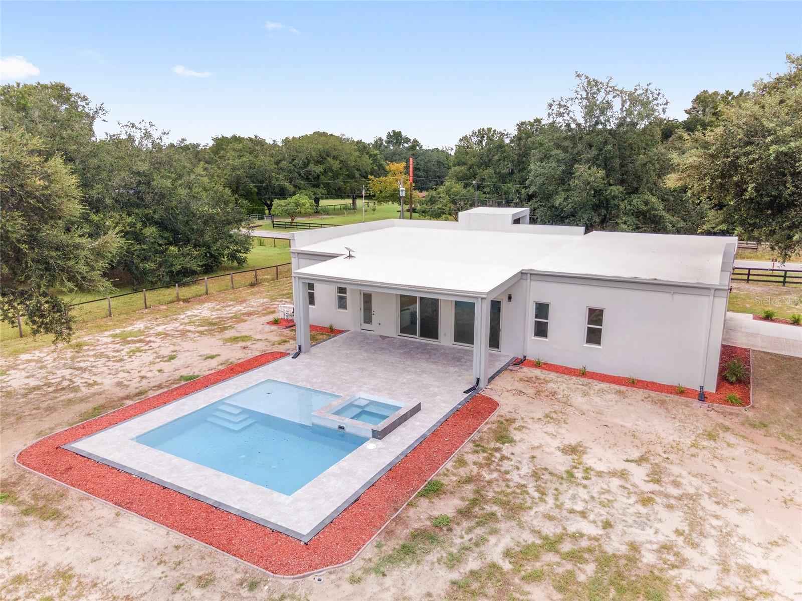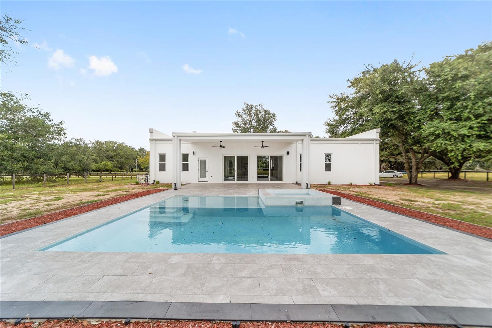 Nestled between Dunnellon and Ocala, this Mediterranean-style home offers the perfect balance of privacy and convenience. Just a short drive from local dining, shopping, and everyday amenities, the property is less than 20 miles from the World Equestrian Center, making it a prime location for equestrian enthusiasts. Built with insulated concrete forms, this home is engineered for ultimate safety, boasting hurricane resistance, tornado protection, and a concrete roof. Providing fortress-like security for you and your loved ones. Inside, the three-bedroom, three-bath home features a thoughtfully designed split floor plan, offering privacy and comfort. One bedroom functions as a versatile in-law suite, complete with a private bath, separate entrance and easy access to the pool. The interior is equally impressive, with soaring 12-foot ceilings, high-end finishes, and a gourmet kitchen outfitted with quartz countertops, soft-close cabinetry, and an open layout perfect for entertaining. The home comes equipped with StarLink internet, ensuring fast, reliable connectivity. Throughout the home, 24-inch porcelain tiles create a seamless, elegant flow. The luxurious baths feature walk-in showers with intricate tile work and brass fixtures, adding a touch of sophistication. Step outside to your private pool and expansive lanai, where you can relax while overlooking the fully fenced 2.27-acre property. With A-3 zoning and no HOA restrictions, this land offers endless possibilities, whether for agriculture, pets or your personal hobbies. This property offers a blend of upscale living and peaceful, country charm. Don't miss the opportunity to make this serene escape your own. Schedule a showing today!