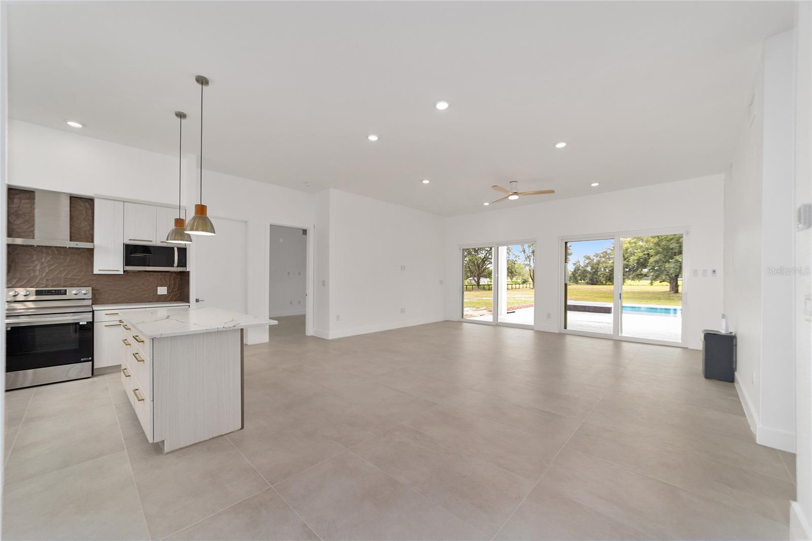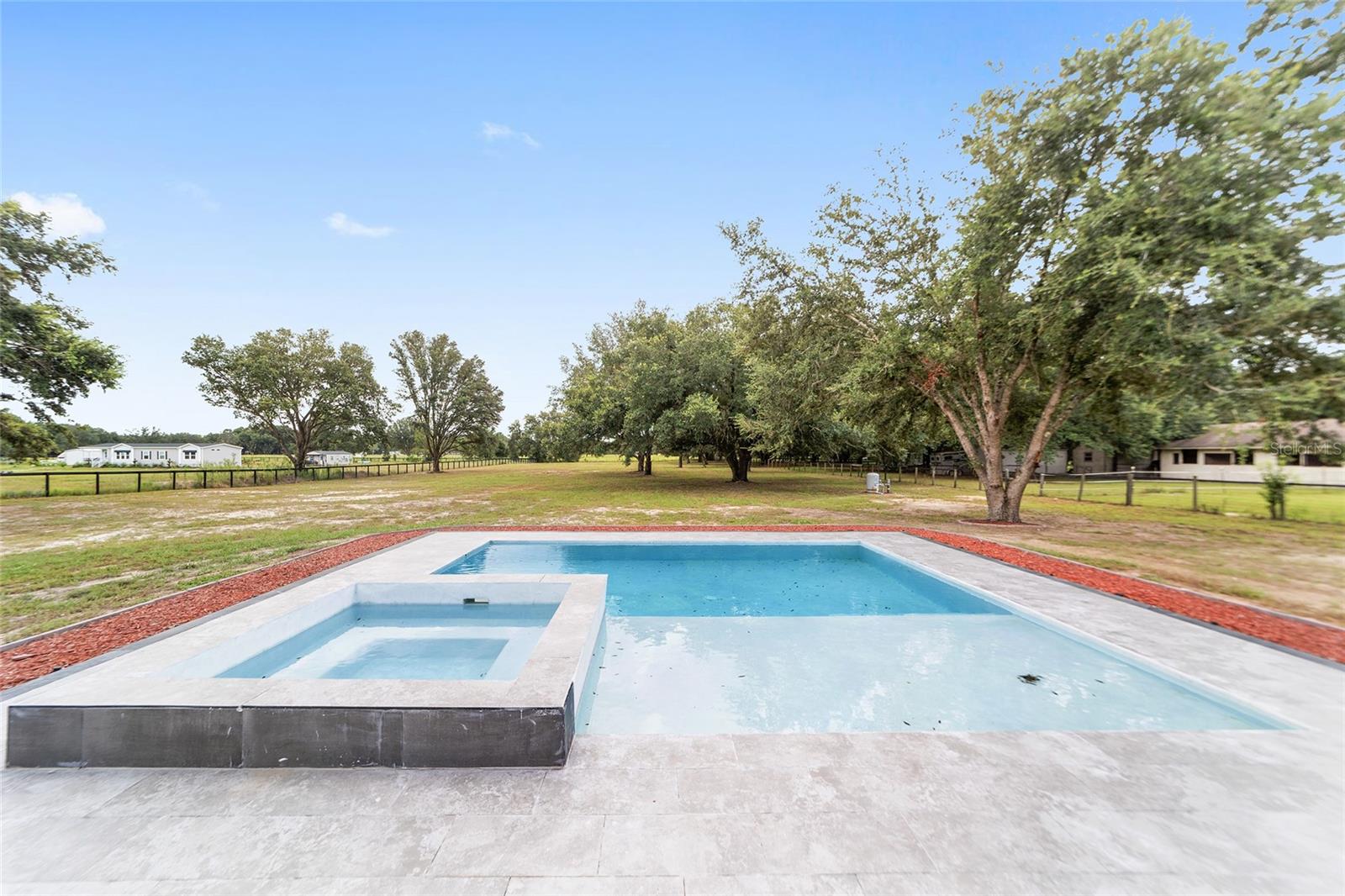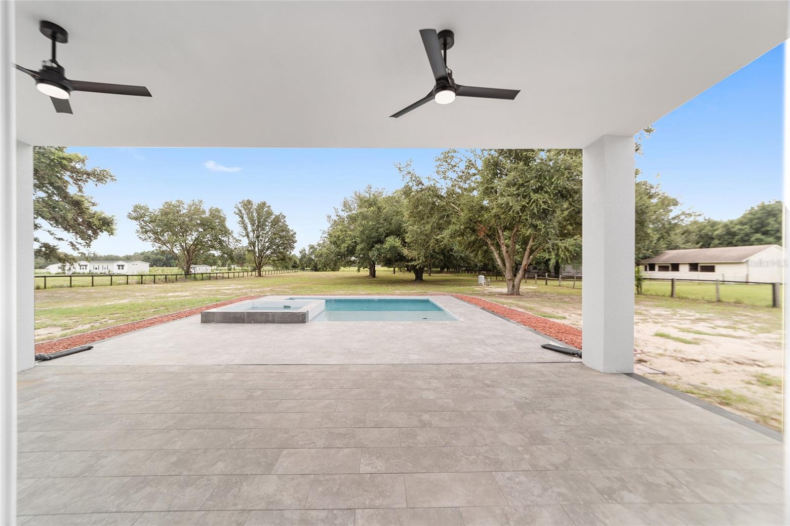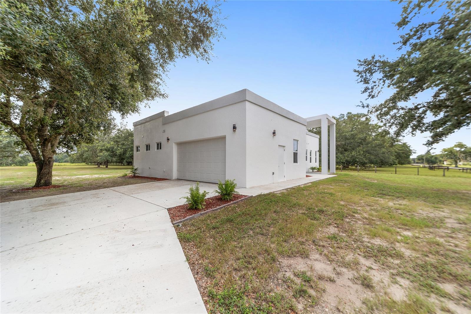 Nestled between Dunnellon and Ocala, this Mediterranean-style home offers the perfect balance of privacy and convenience. Just a short drive from local dining, shopping, and everyday amenities, the property is less than 20 miles from the World Equestrian Center, making it a prime location for equestrian enthusiasts. Built with insulated concrete forms, this home is engineered for ultimate safety, boasting hurricane resistance, tornado protection, and a concrete roof. Providing fortress-like security for you and your loved ones. Inside, the three-bedroom, three-bath home features a thoughtfully designed split floor plan, offering privacy and comfort. One bedroom functions as a versatile in-law suite, complete with a private bath, separate entrance and easy access to the pool. The interior is equally impressive, with soaring 12-foot ceilings, high-end finishes, and a gourmet kitchen outfitted with quartz countertops, soft-close cabinetry, and an open layout perfect for entertaining. The home comes equipped with StarLink internet, ensuring fast, reliable connectivity. Throughout the home, 24-inch porcelain tiles create a seamless, elegant flow. The luxurious baths feature walk-in showers with intricate tile work and brass fixtures, adding a touch of sophistication. Step outside to your private pool and expansive lanai, where you can relax while overlooking the fully fenced 2.27-acre property. With A-3 zoning and no HOA restrictions, this land offers endless possibilities, whether for agriculture, pets or your personal hobbies. This property offers a blend of upscale living and peaceful, country charm. Don't miss the opportunity to make this serene escape your own. Schedule a showing today!