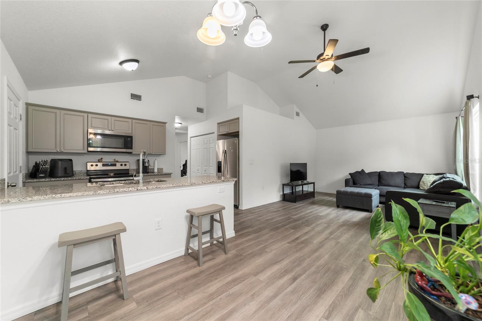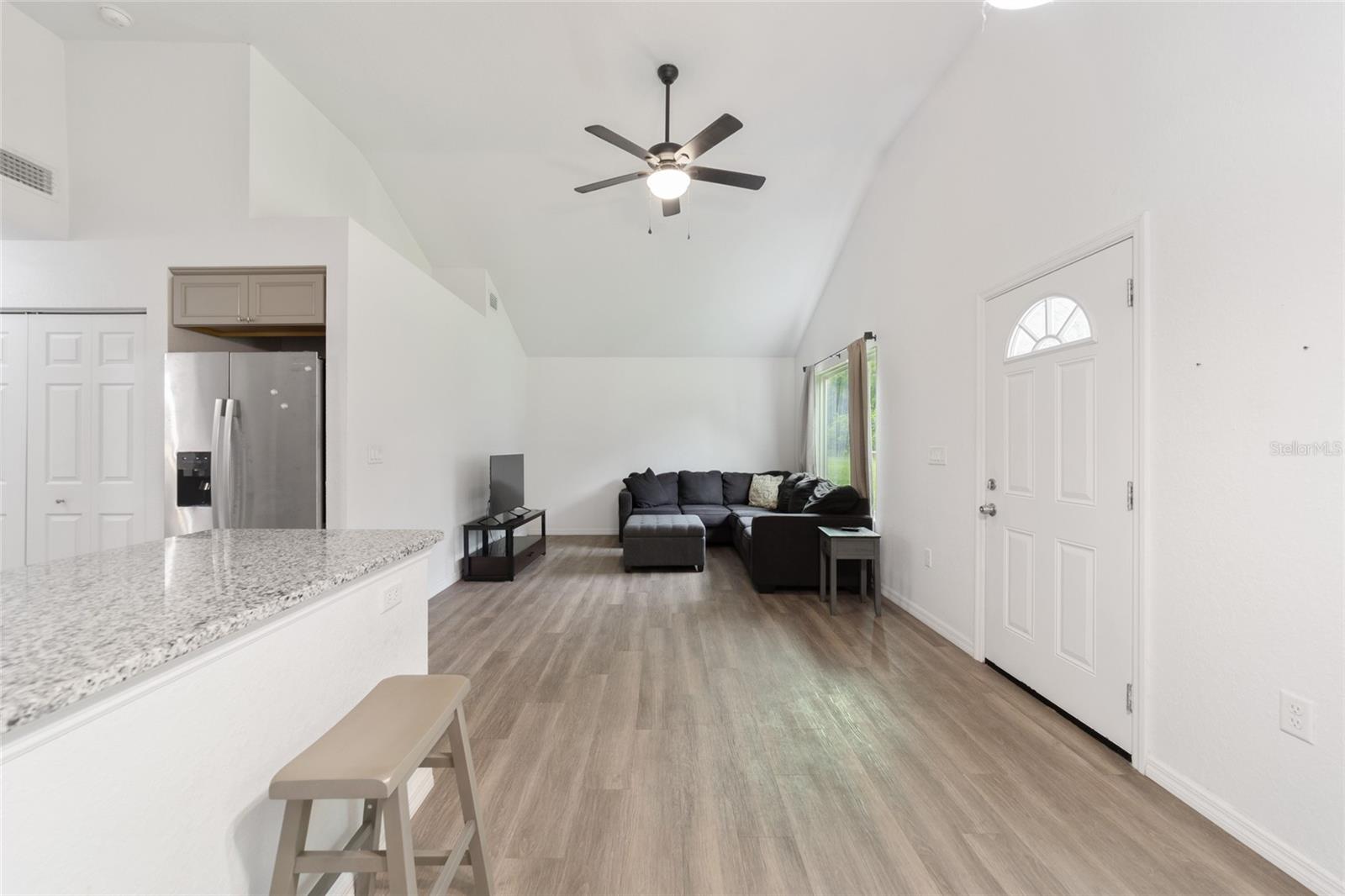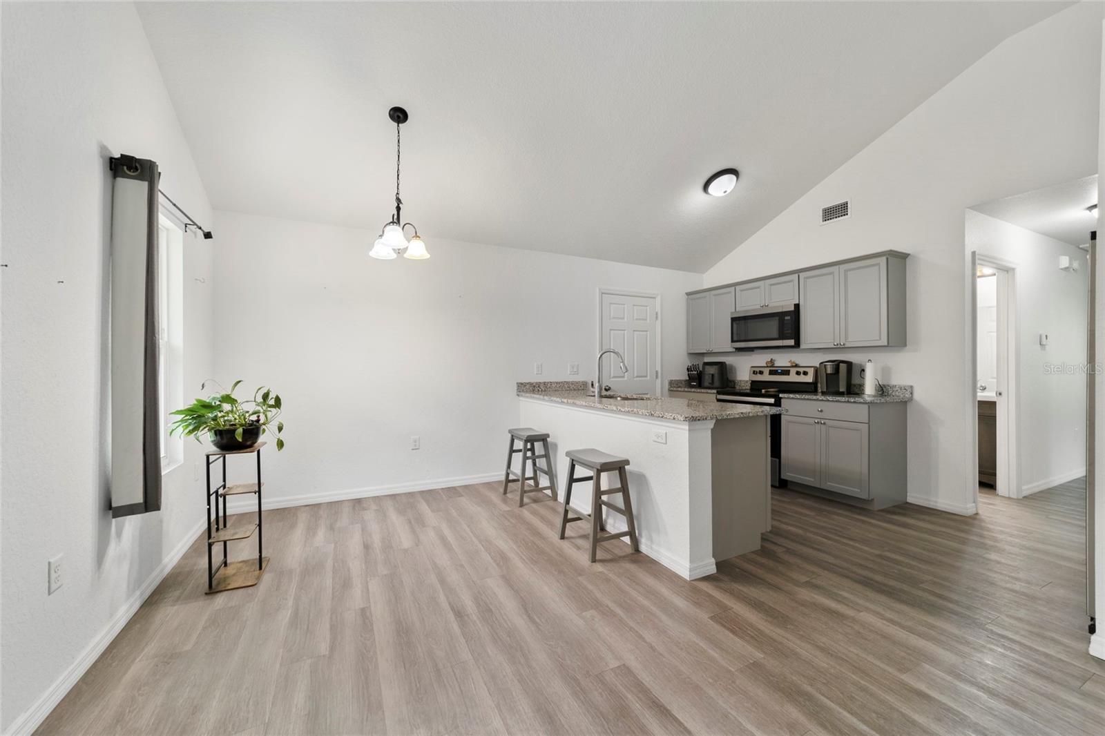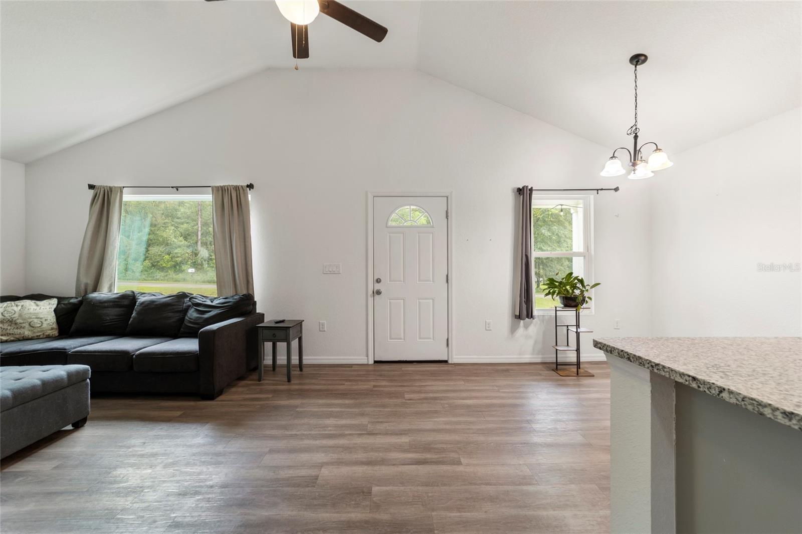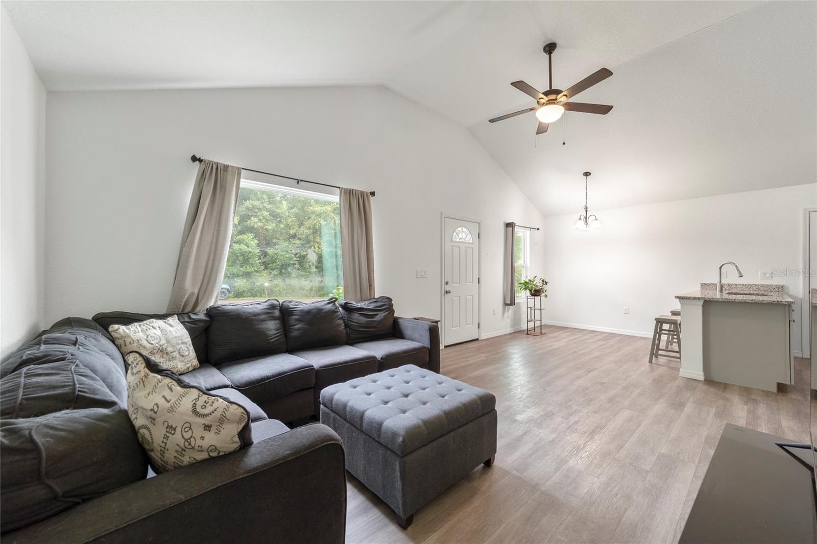 Welcome to one of the cutest homes in the neighborhood! This delightful nearly new three-bedroom, two-bath residence offers the ideal blend of modern convenience and charming appeal. As you approach, you'll be greeted by a welcoming country porch, setting the tone for this cozy abode. Step inside to discover soaring ceilings and open concept living with a kitchen that features elegant granite countertops, sleek stainless steel appliances and stylish vinyl plank flooring throughout. The thoughtful design ensures you have all the amenities you need without sacrificing style or functionality. Enjoy the ease of living with a single-car garage, providing convenient storage and parking. In a friendly community with no HOA, Rainbow Lake Estates offers two playgrounds, basketball courts and Bonable Lake for great bass fishing. This home ideally balances the charm of country living with modern comforts. If biking, kayaking, tubing, diving, snorkeling, walking or fishing is of interest, the home is convenient to Suncoast Trail, Rainbow River, Withlacoochee River, Crystal River and Ocala. Don’t miss the opportunity to make this adorable property your new home.