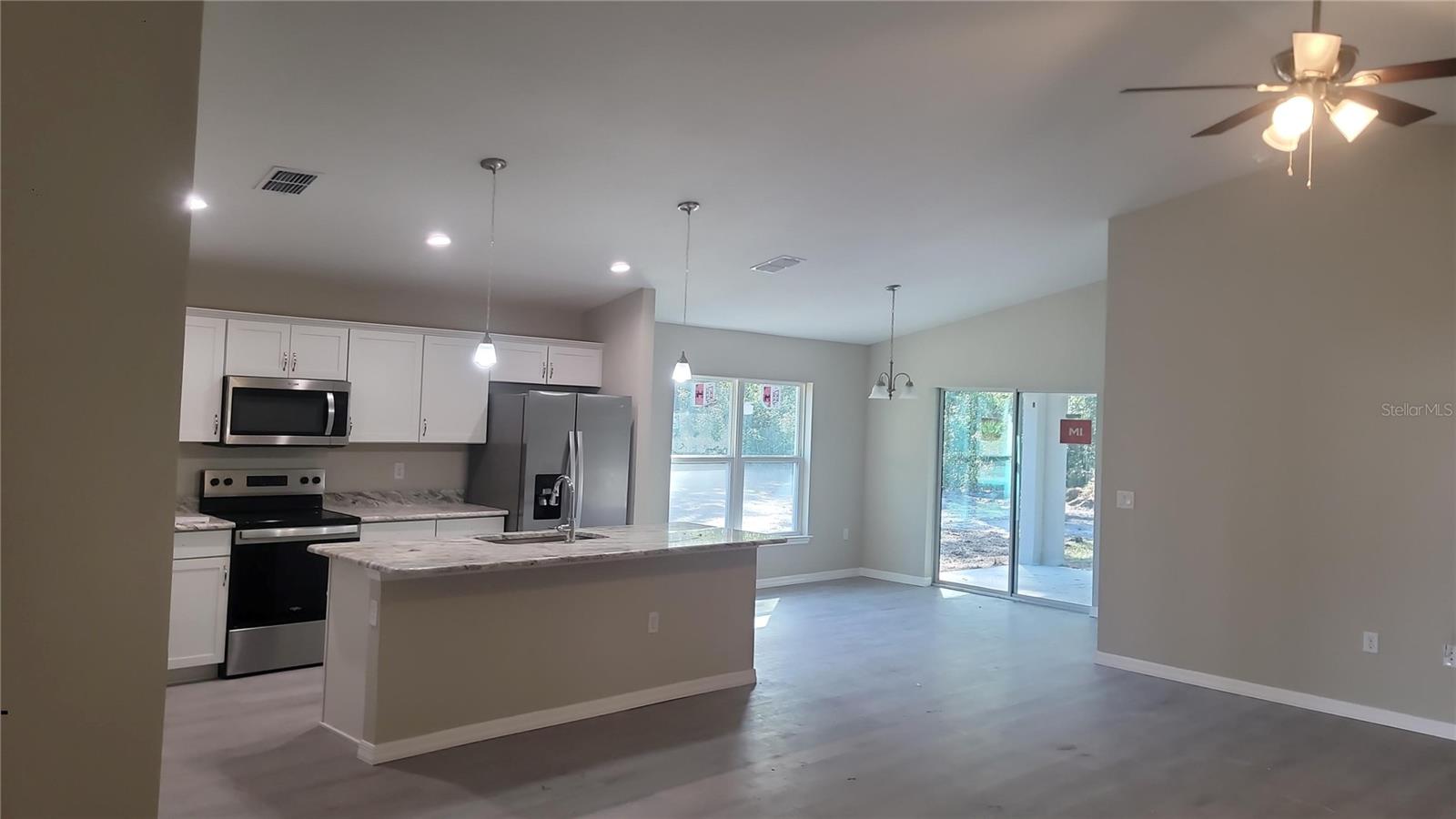 One or more photo(s) has been virtually staged. Beautiful new construction home! MOVE-IN READY!! BCC JUST APPROVED THE MSTU TO PAVE THE ROADS! Asphalt roads will have construction beginning in early 2025. We still have these last few homes available at "dirt road prices"! Hurry before the price of the homes goes up! Luxury Plank Vinyl flooring throughout all living and common areas, tile in bathrooms, and carpet in the bedrooms. Open floor plan with dining area and eat-in kitchen, all done in neutral, pleasing colors. Inside laundry with W & D hook-ups. Huge Walk-in closet in Master bedroom. Stainless steel appliance package in the kitchen. This home has white shaker-style cabinets and light luxury granite countertops.CONSTRUCTION COMPLETE! Please see attached documents from Builder (Builders Contract Addendum & Warranty) Actual photos are currently unavailable. Any photos depicted are for illustration purposes only and only to show layout. Floor plan displayed is our standard plan and garage orientation may vary on actual home. Interior and exterior colors, finishes, and garage orientation will vary for actual home. Information is deemed correct, but no guarantee made. Any dimensions listed are approximate. Dunnellon Oaks Neighborhood is currently under study for the application of an MSTU to pave the roads in the subdivision.