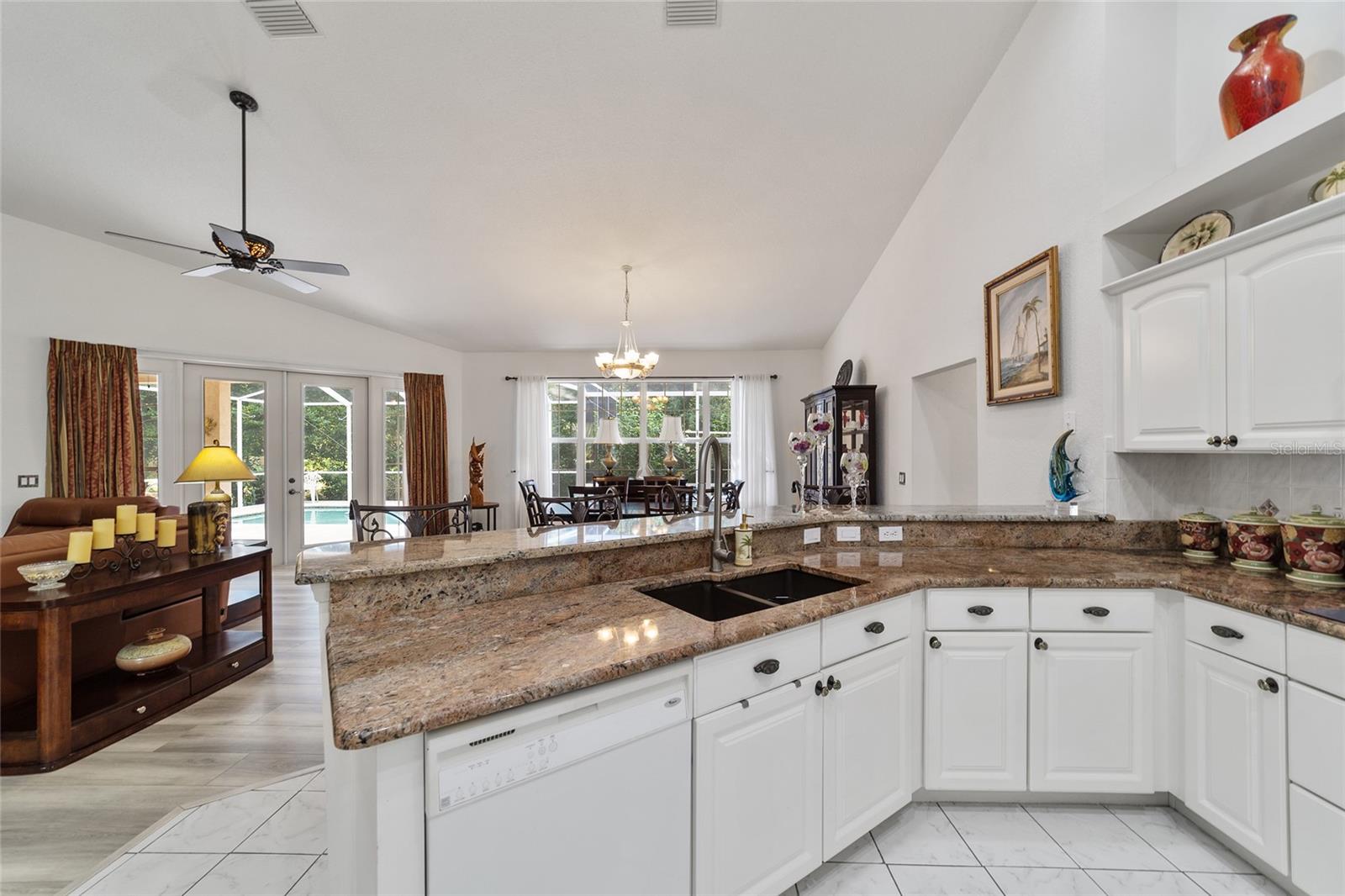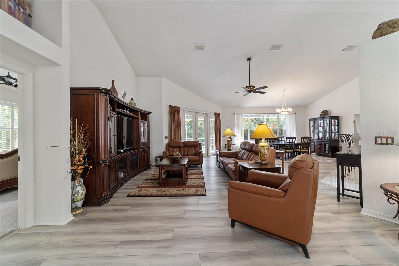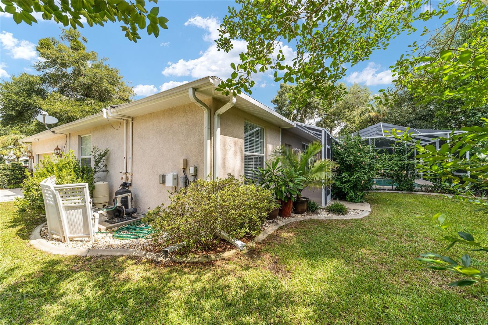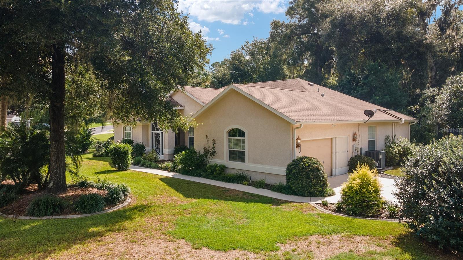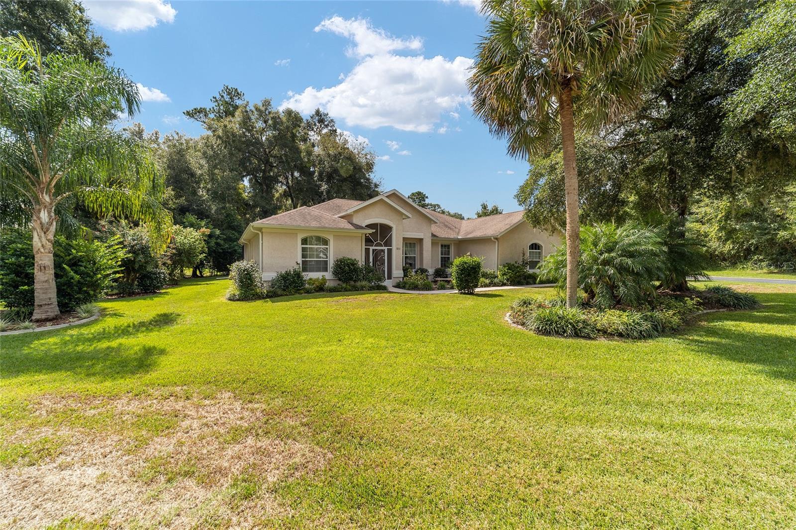 Everything is Grand in this stunning Grand Park Paradise within the Rainbow Springs subdivision. Nestled on a generous .34 acre corner lot, this pristine pool home offers three bedrooms and 2 baths, perfect for modern living. Step inside to soaring ceilings and luxury wide plank LVP flooring, accentuating the open concept kitchen, living, and dining room combo, along with a cozy den. The gourmet kitchen boasts granite surfaces, a large island, newer appliances, and plantation shutters throughout. The primary en suite features a deep cavernous walk in shower and dual walk in closets. Both sizable guest rooms offer comfort and privacy within the split floor plan. Enjoy the cabana bath with easy access to the sparkling solar heated pool, complemented by an outdoor shower with hot and cold running water. Located minutes from the coveted Rainbow River with private access to canoe, kayak, swim or grill your catch of the day. Amenities include Swimming pool, tennis, pickleball, billiards, gym, driving range, and a myriad of activities. Don't miss out on this exceptional home, you have earned it.
