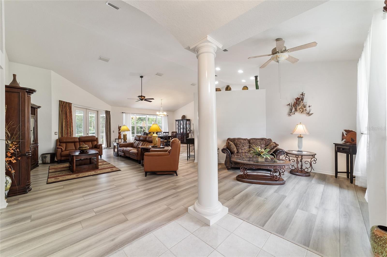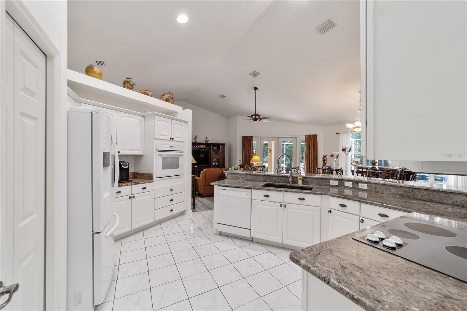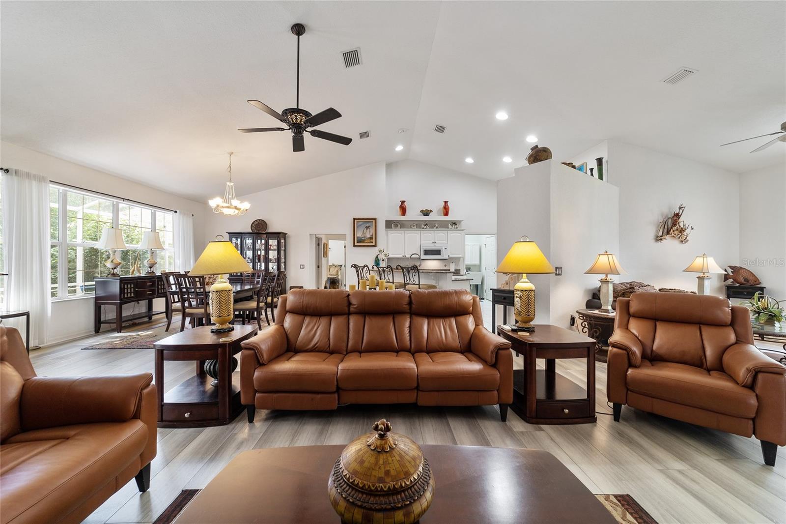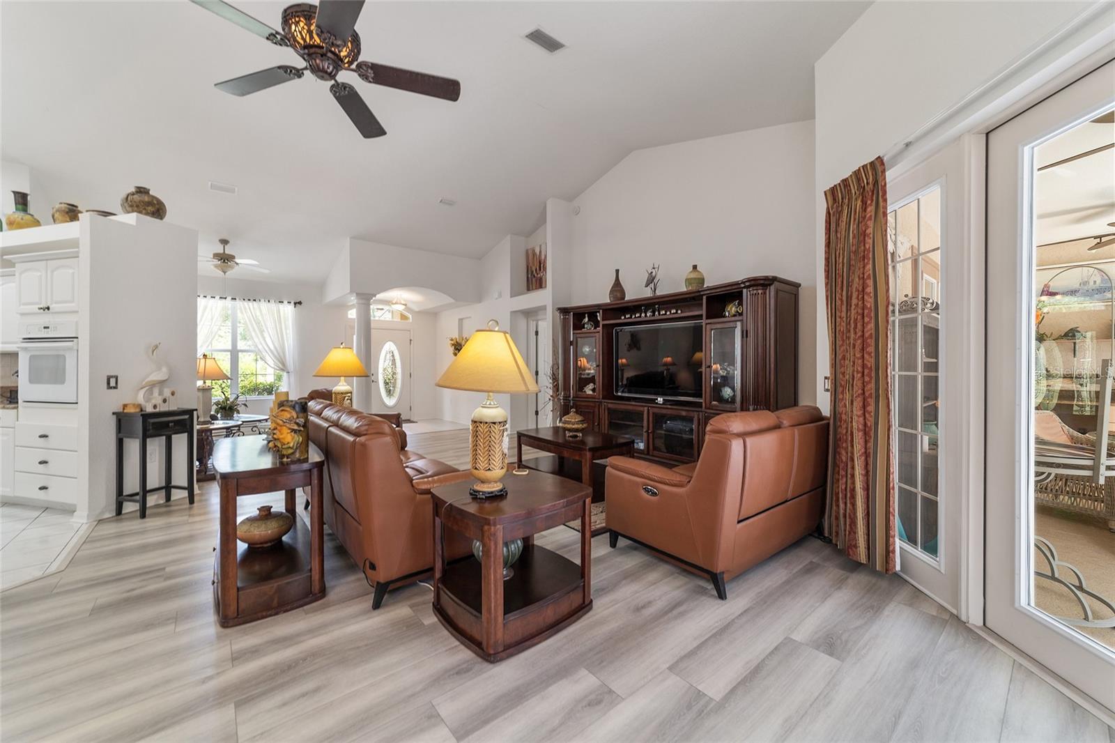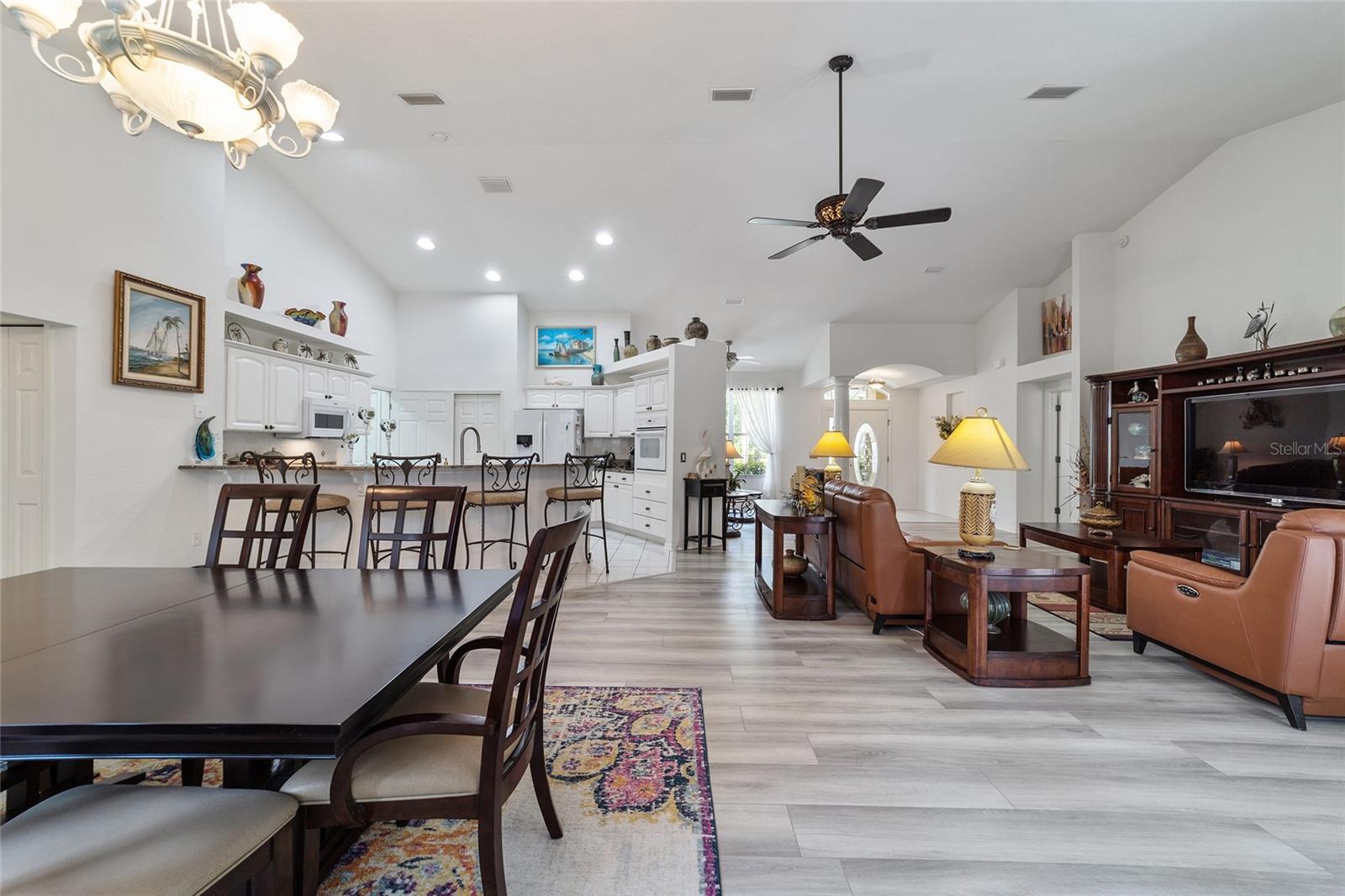 Everything is Grand in this stunning Grand Park Paradise within the Rainbow Springs subdivision. Nestled on a generous .34 acre corner lot, this pristine pool home offers three bedrooms and 2 baths, perfect for modern living. Step inside to soaring ceilings and luxury wide plank LVP flooring, accentuating the open concept kitchen, living, and dining room combo, along with a cozy den. The gourmet kitchen boasts granite surfaces, a large island, newer appliances, and plantation shutters throughout. The primary en suite features a deep cavernous walk in shower and dual walk in closets. Both sizable guest rooms offer comfort and privacy within the split floor plan. Enjoy the cabana bath with easy access to the sparkling solar heated pool, complemented by an outdoor shower with hot and cold running water. Located minutes from the coveted Rainbow River with private access to canoe, kayak, swim or grill your catch of the day. Amenities include Swimming pool, tennis, pickleball, billiards, gym, driving range, and a myriad of activities. Don't miss out on this exceptional home, you have earned it.