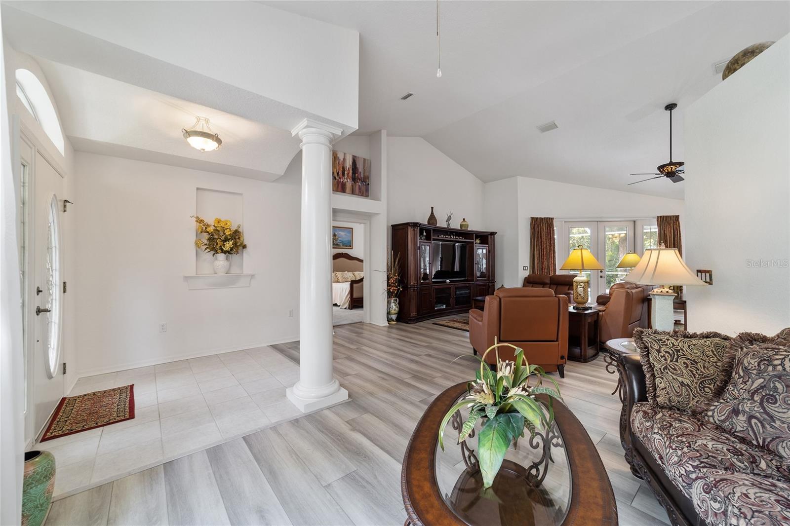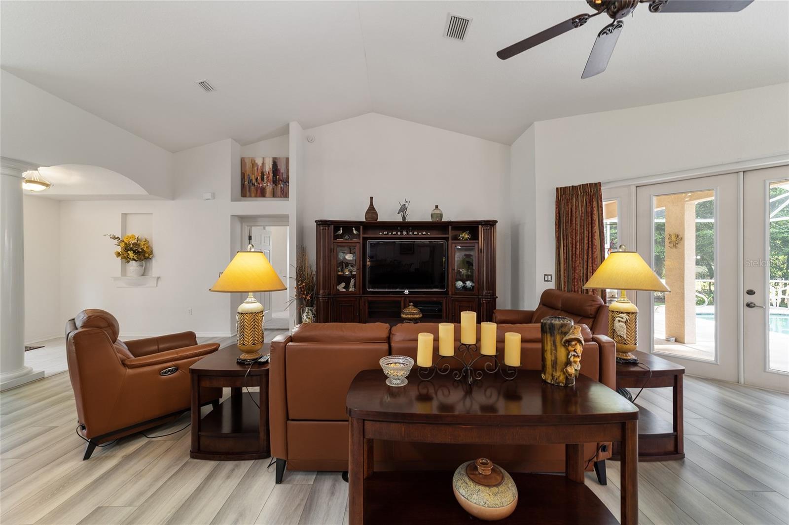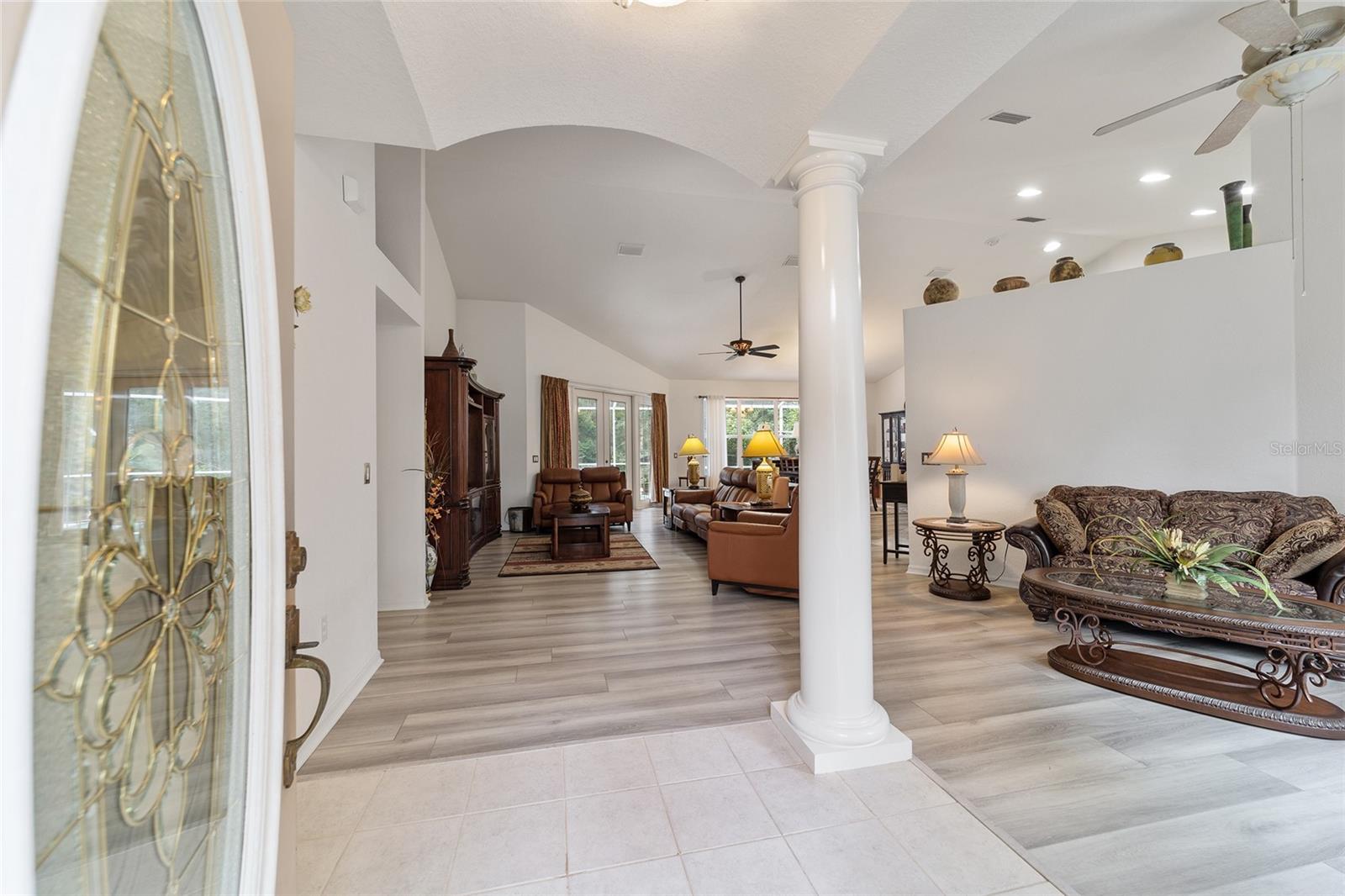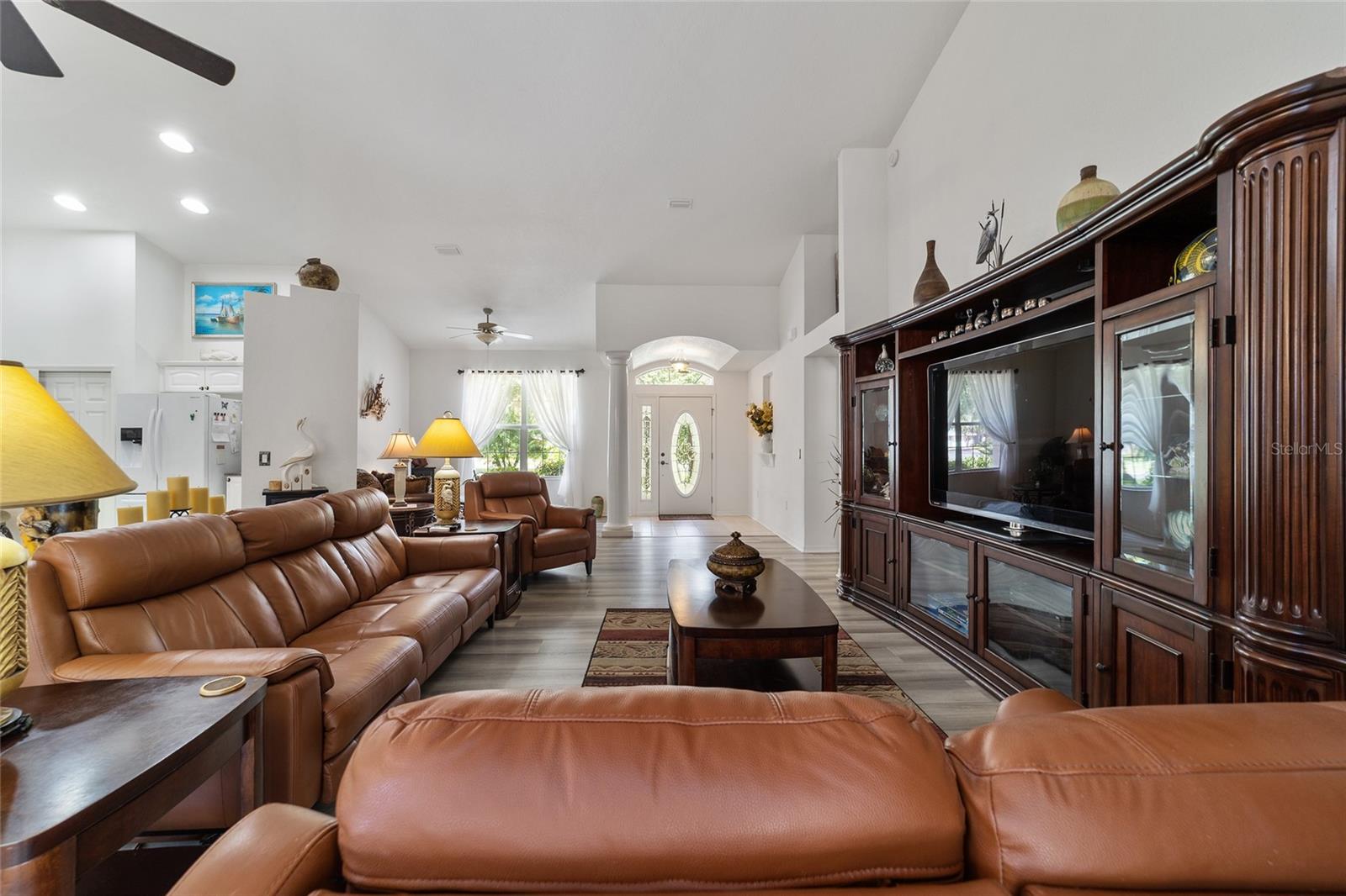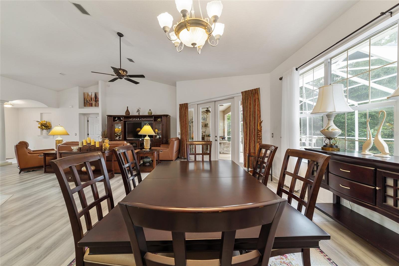 Everything is Grand in this stunning Grand Park Paradise within the Rainbow Springs subdivision. Nestled on a generous .34 acre corner lot, this pristine pool home offers three bedrooms and 2 baths, perfect for modern living. Step inside to soaring ceilings and luxury wide plank LVP flooring, accentuating the open concept kitchen, living, and dining room combo, along with a cozy den. The gourmet kitchen boasts granite surfaces, a large island, newer appliances, and plantation shutters throughout. The primary en suite features a deep cavernous walk in shower and dual walk in closets. Both sizable guest rooms offer comfort and privacy within the split floor plan. Enjoy the cabana bath with easy access to the sparkling solar heated pool, complemented by an outdoor shower with hot and cold running water. Located minutes from the coveted Rainbow River with private access to canoe, kayak, swim or grill your catch of the day. Amenities include Swimming pool, tennis, pickleball, billiards, gym, driving range, and a myriad of activities. Don't miss out on this exceptional home, you have earned it.
