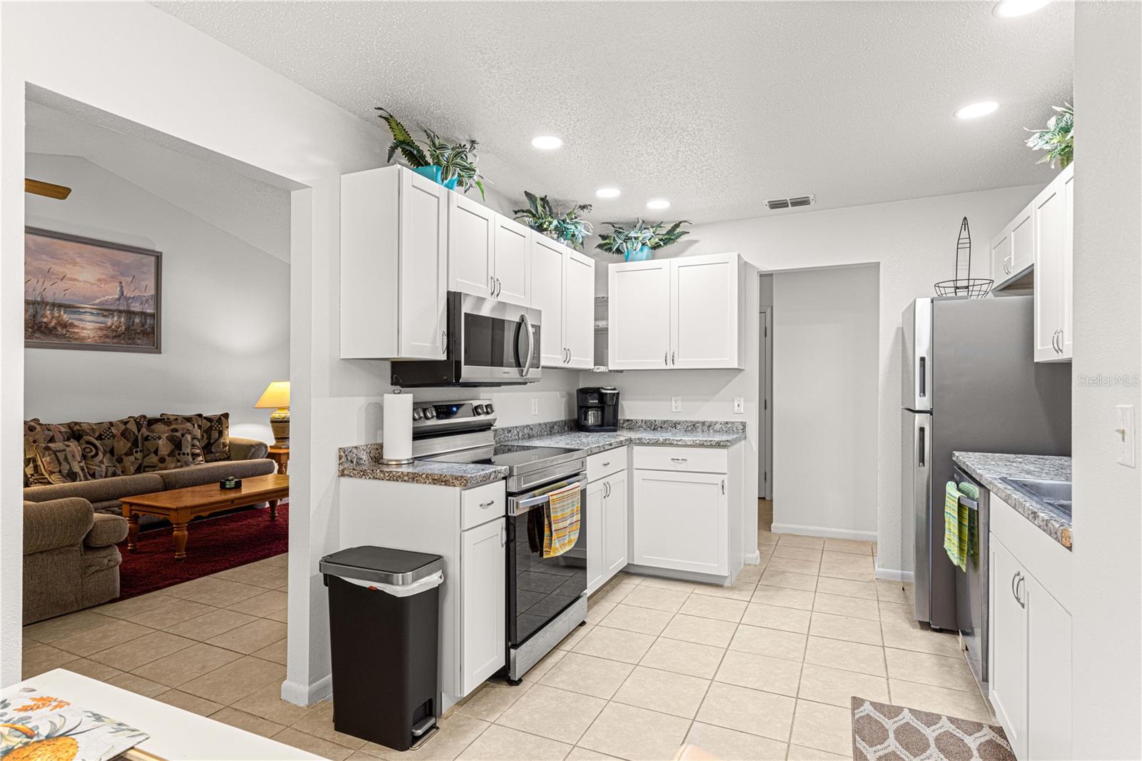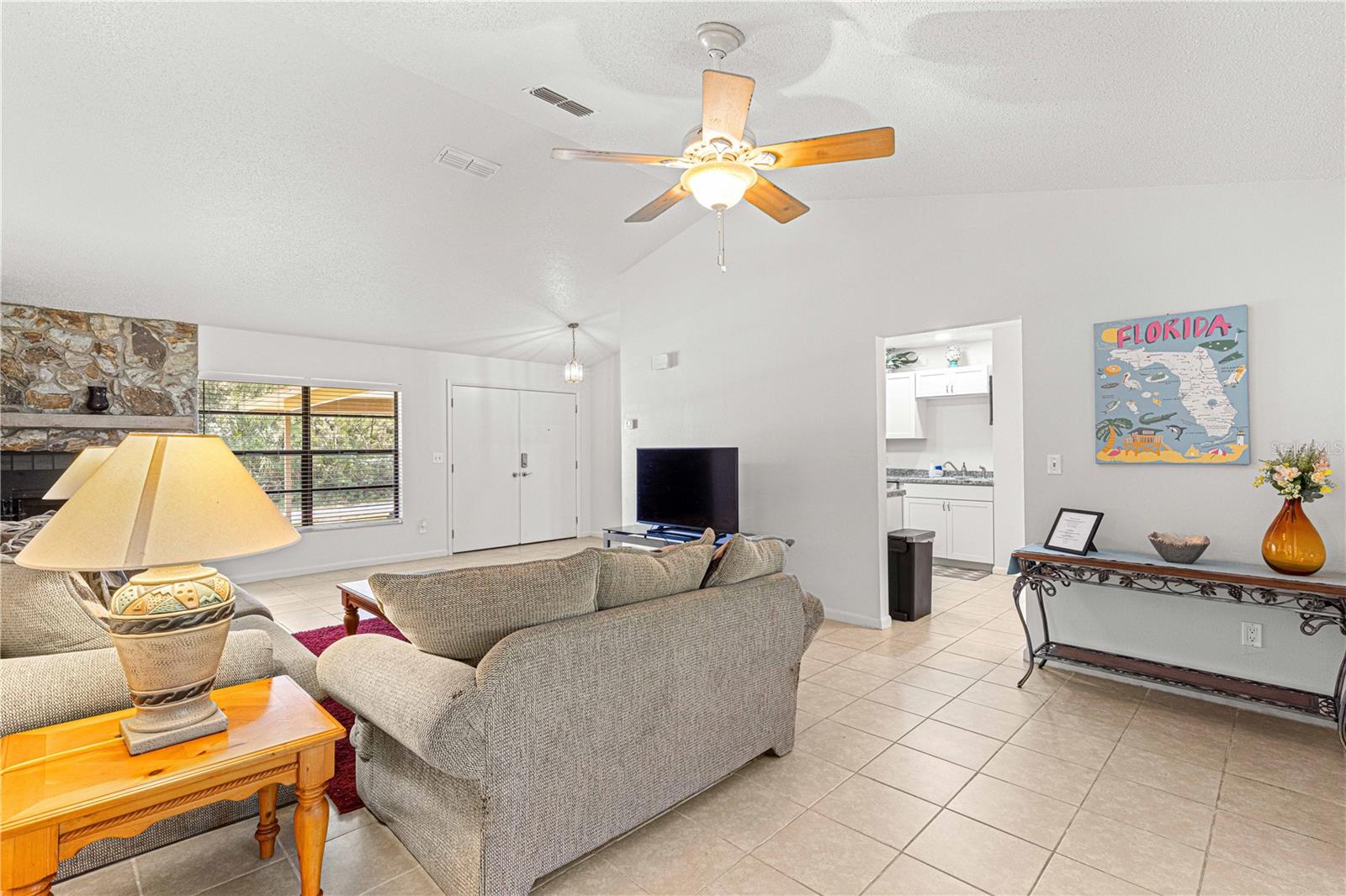 It's a NO-BRAINER at this price! Back on the market as the sale of Buyer's property fell through. Owner is MOTIVATED! Welcome to this updated home that was the builder's model! As soon as you walk in the double entry front doors you will notice the cathedral ceilings and the open living room. The living room features a wood burning, stone-faced, fireplace. The updated kitchen with brand new stainless steel appliances is centrally located and has a nice dining area adjacent to it. The washer and dryer are also new and are included with this home. The bedrooms are in a split plan to give you maximum privacy. The guest bath has a door that leads to the 30x10 screened-in lanai, which along with the private backyard are great settings to entertain your family and friends. The doors, outlets, window blinds and lights are all updated, the exterior was re-painted in 2023 and the interior was textured and repainted. A/C was replaced in 2018 and the water heater was replaced in 2019. Located just minutes from the famous Rainbow Springs State Park, the gulf coast, Juliette Falls Golf Club, Walmart, Publix and a multitude of restaurants, this home is the perfect location for nature lovers and those looking for conveniences. All furnishings (dishes, pictures, rugs etc.), except the dining room set and lanai furniture, are available for purchase for $3,000. Come see this home before it is sold!