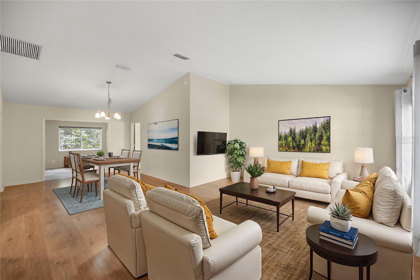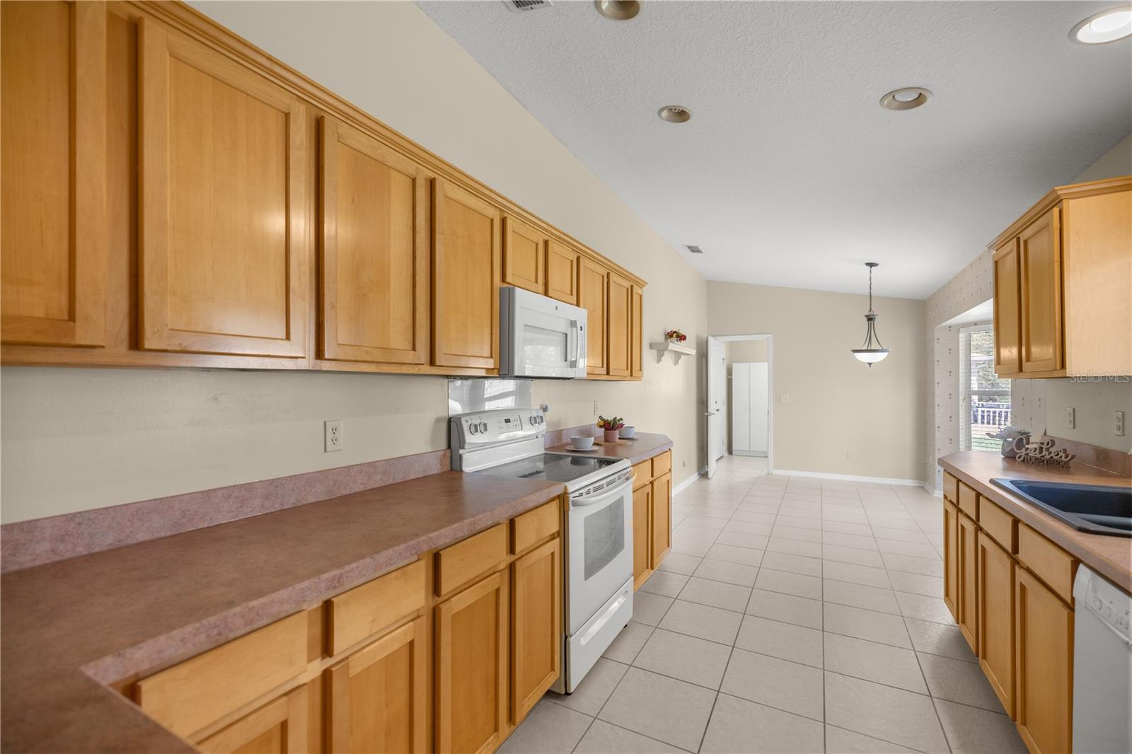 Welcome to this charming 2-bedroom, 2-bathroom home located in the desirable 55+ community of Spruce Creek Preserve. With just under 1,700 square feet of living space, this home offers a spacious layout complemented by mature landscaping. The kitchen boasts ample cabinet storage and generous counter space, perfect for meal prep, along with an eat-in area that provides lovely views of the private rear grounds. Recent updates include new gutters, a water heater from 2020, and an A/C system installed in 2018. The oversized Florida room, complete with A/C, offers additional space for relaxation or entertaining. Spruce Creek Preserve is an active and gated, guard-protected community, conveniently located along State Road 200, providing easy access to nearby amenities. The community offers a heated pool, spa, fitness center, tennis, pickleball, corn hole, yoga, water aerobics, exercise classes, billiards, cards, games, bingo, bunco, library, potluck dinners, dances, social and travel clubs. Don't miss the opportunity to make this beautiful home yours, schedule a private showing today.