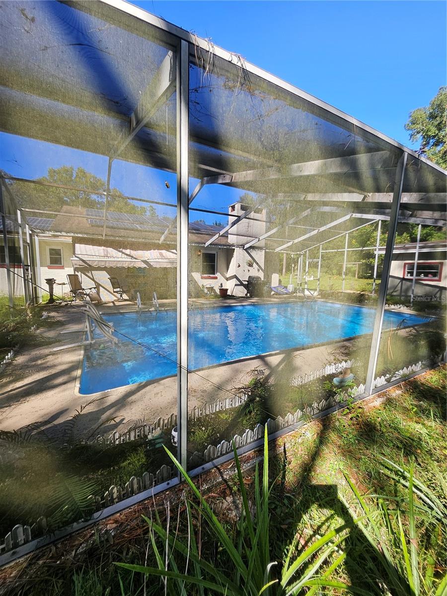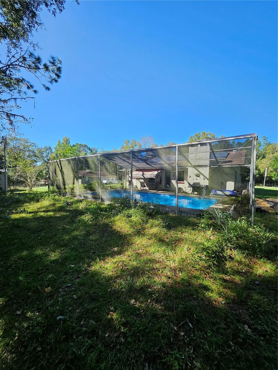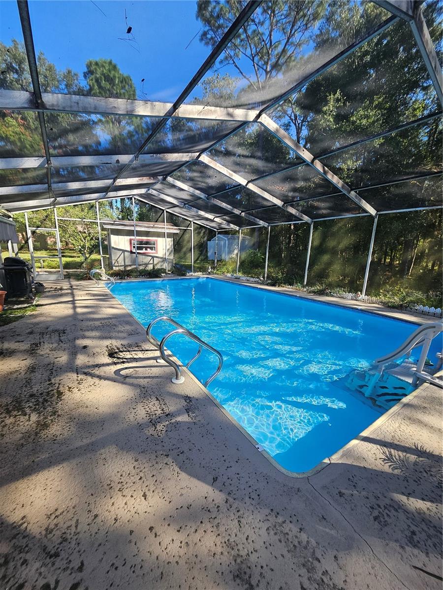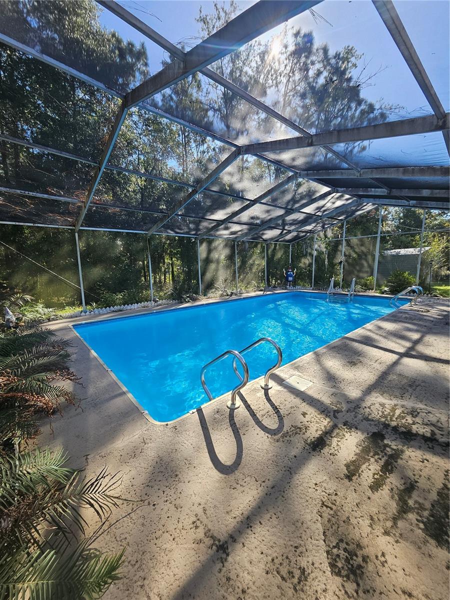 Don’t miss your chance to own this beautifully updated home just 2 minutes fromRainbow Springs! This stunning screened pool home is set on over an acre and features an inviting open floor plan with plenty of living space. Ideal for entertaining, it offers a spacious Living Room, Family Room, and Dining Room for gatherings with loved ones. The main living areas are adorned with low-maintenance laminate floors, while the recently remodeled Kitchen impresses with stainless steel appliances, recessed lighting, and casual bar seating. It overlooks the large Family Room, which features a cozy wood-burning/electric fireplace, perfect for relaxing evenings. Step outside to the enchanting screened-in pool, where you can unwind and enjoy peaceful views of your private, wooded backyard. Recent upgrades include a full house water filtration system new windows (2017), a new roof (2015), and solar panels, making this home both beautiful and energy-efficient. With two sheds for extra storage, you'll have plenty of space for all your needs. As a resident, you’ll also enjoy access to a community clubhouse and a private park on the spring-fed Rainbow River, perfect for fishing, canoeing, and kayaking adventures. Don’t let this opportunity slip away—schedule your visit today!