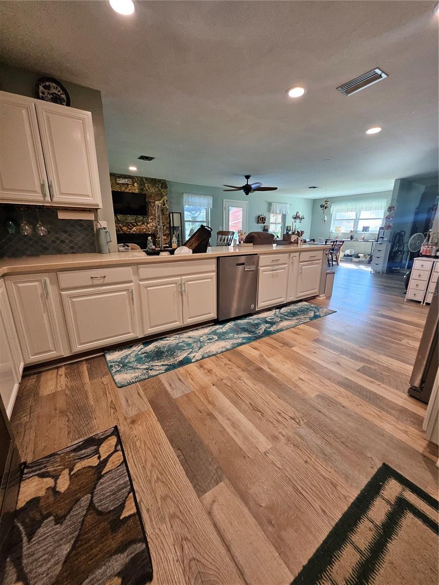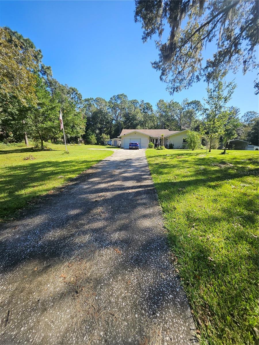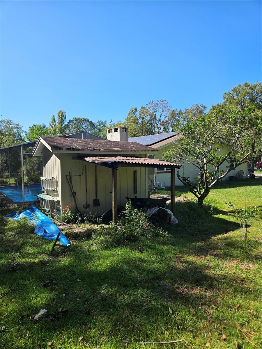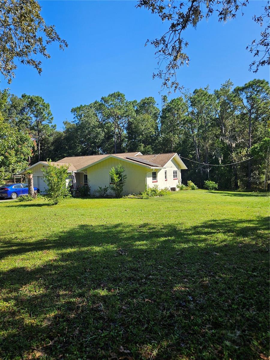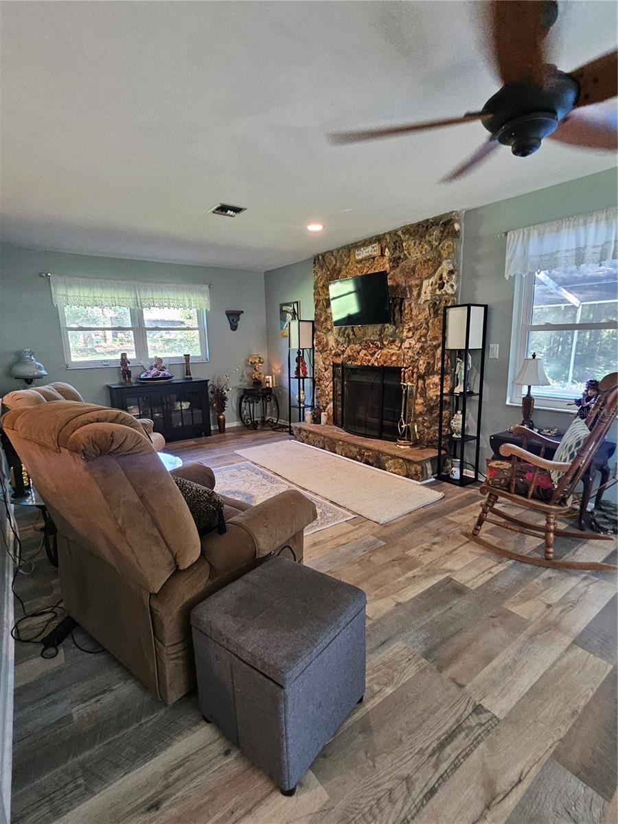 Don’t miss your chance to own this beautifully updated home just 2 minutes fromRainbow Springs! This stunning screened pool home is set on over an acre and features an inviting open floor plan with plenty of living space. Ideal for entertaining, it offers a spacious Living Room, Family Room, and Dining Room for gatherings with loved ones. The main living areas are adorned with low-maintenance laminate floors, while the recently remodeled Kitchen impresses with stainless steel appliances, recessed lighting, and casual bar seating. It overlooks the large Family Room, which features a cozy wood-burning/electric fireplace, perfect for relaxing evenings. Step outside to the enchanting screened-in pool, where you can unwind and enjoy peaceful views of your private, wooded backyard. Recent upgrades include a full house water filtration system new windows (2017), a new roof (2015), and solar panels, making this home both beautiful and energy-efficient. With two sheds for extra storage, you'll have plenty of space for all your needs. As a resident, you’ll also enjoy access to a community clubhouse and a private park on the spring-fed Rainbow River, perfect for fishing, canoeing, and kayaking adventures. Don’t let this opportunity slip away—schedule your visit today!