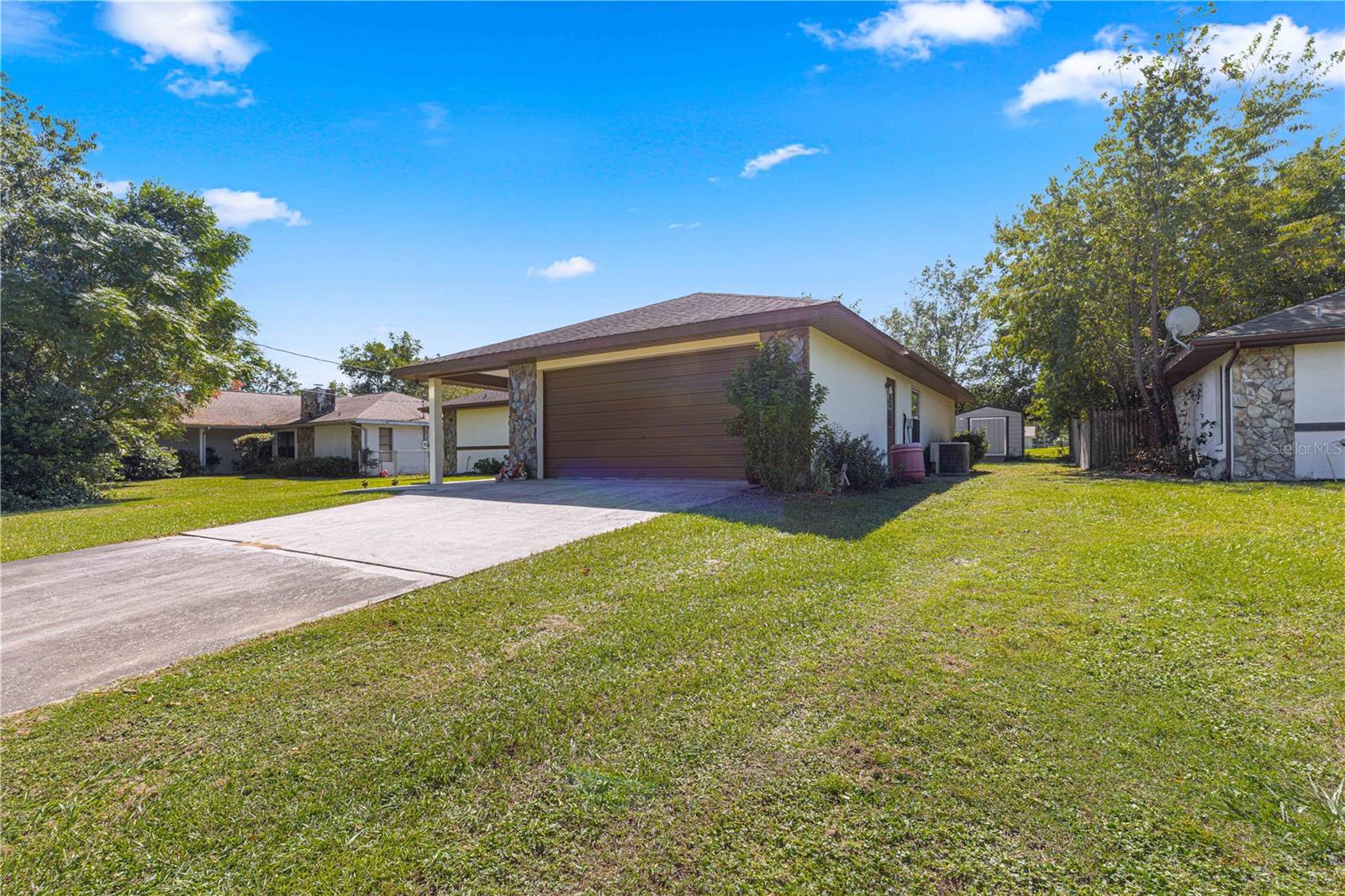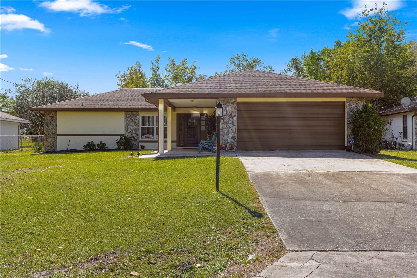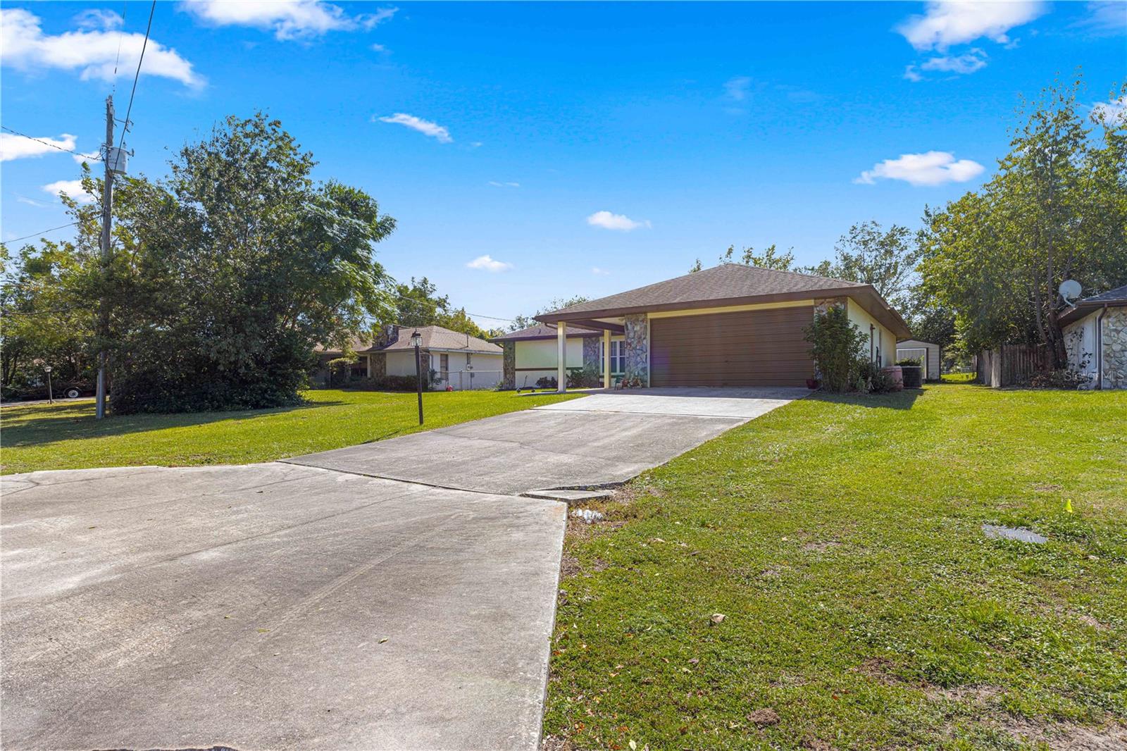 Charming well-maintained move in ready 3-bedroom 2 bath home with 2 car garage and large screened porch, with over 2500 sf under roof sits in a growing community just minutes to Downtown Dunnellon offering tons of shopping, dining, and entertainment opportunities. Step inside this spacious home and you'll find the open airy split plan featuring: tiled Living area, foyer, living room with cathedral ceilings; dining area; updated eat-in kitchen with granite, newer appliances, tile backsplash, pantry, and new lights; master with his and her closets & glass enclosed walk-in tile shower; 2 spacious guest bedrooms; guest bath with linen closet and access to the huge screen enclosed porch overlooking the gorgeous backyard with 2 large sheds and an open patio perfect for grilling/entertaining. Rainbow Lakes Estates is a family-friendly community, no HOA fees, the community offers lake access with a dock, boat slip, playground, shuffleboard, community center, baseball field, picnic tables, a gym that is available for the household at $50r/ year and so much more. For convenience located at entrance to the neighborhood is a gas station, restaurant, and convenient store. The home is located 15 minutes from downtown Dunnellon, with antique shops, community events, doctors, restaurants, shopping, Rainbow Springs State Park, Rainbow & Withlacoochee River access, Blue Run Park w/trails that lead all the way to Tampa. The World Equestrians Center & Ocala are a 20–30-minutes' drive. Many opportunities nearby for Golfing, fresh or saltwater fishing, and many parks. Easy drive to Daytona Beach, Orlando, the Gulf of Mexico, Tampa, or Gainesville. A great opportunity awaits in this perfectly positioned, move-in ready home! Bonus - Seller is providing a home warranty to buyer upon closing for peace of mind. Call us for information on down payment assistance information.