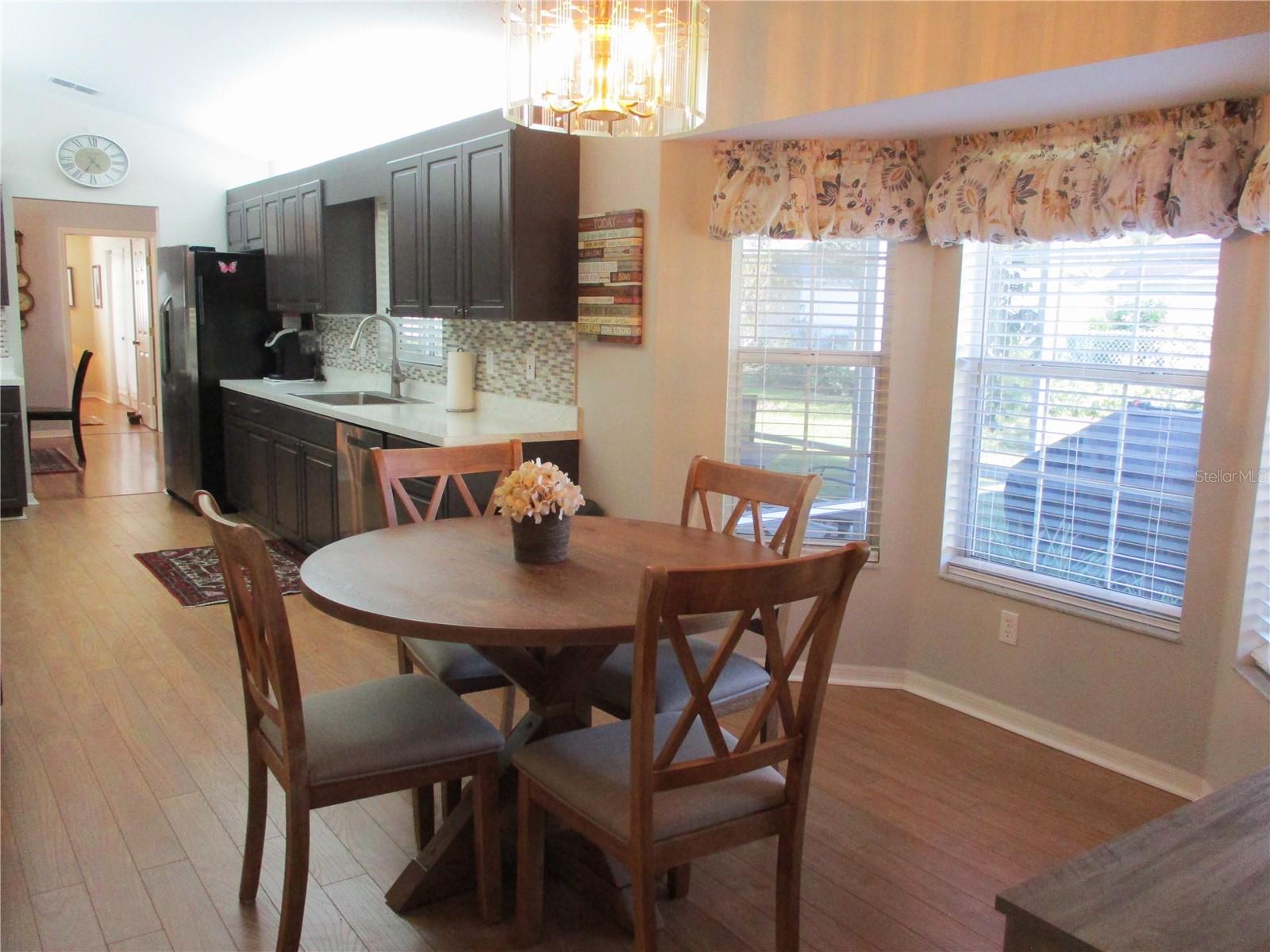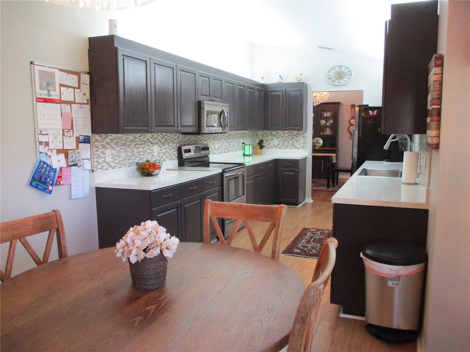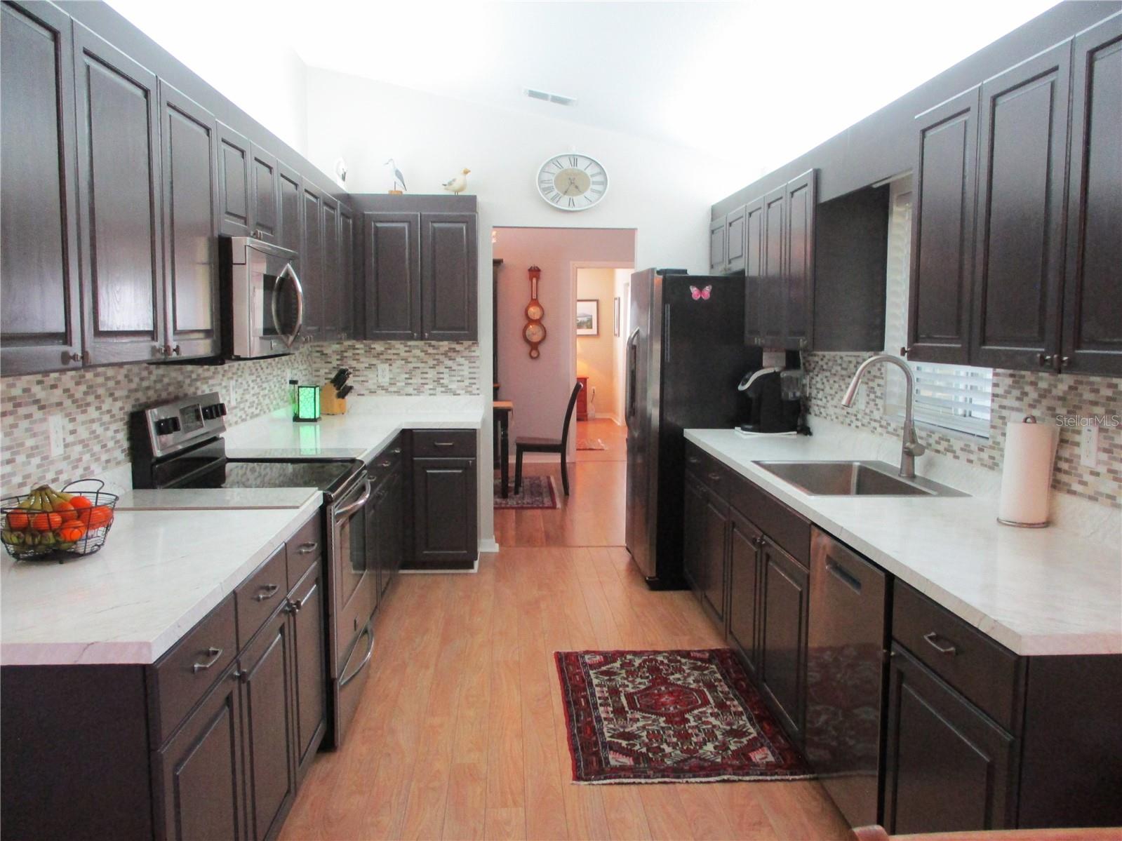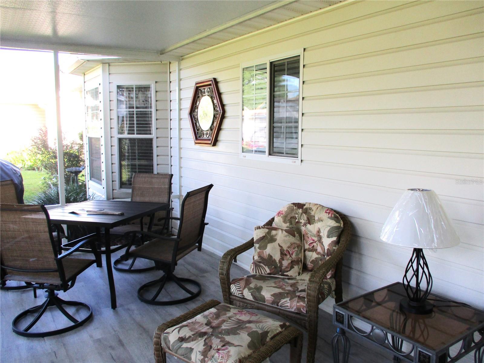 WELCOME HOME !! Immaculate, beautifully maintained, and move in ready!! This 2 bed 2 bath 2 car garage FIR has all the favorite features, like a tastefully updated kitchen with plenty of cabinets, over/under lighting, stylish counters, tile backsplash, farm sink, stainless appliances and a quaint breakfast nook with bay window. Split bedrooms, primary bedroom with 2 closets, primary bath with 2 sinks, large walk in shower, linen cabinet and new commodes. Inside laundry with wash tub sink (w/d included). Laminate floors thru-out the home. New covered screened patio is the perfect way to enjoy the gorgeous Florida weather and the peaceful community of SPRUCE CREEK PRESERVE nestled in on 3 sides by Ross Prairie Nature Preserve. ROOF DEC 2018, HVAC 2015, W/H 2020. SCP is a fun, friendly, active, 55+, 24/7 manned gated, golf community with heated pool, spa, pickleball, tennis, shuffleboard, corn hole, fitness center, water aerobics, yoga, exercise groups, chair volleyball, potluck dinners, dances, crafts, cards, game nights, bingo, bunco, billiards, social/ travel groups and more. Less than 5 miles from restaurants, shopping, groceries, gas, banking, doctors, hospital, fire station, miles of nature rails for hiking, biking, or horseback riding. Great location for day trips all across Florida from to Gulf to Atlantic and everything in between !!