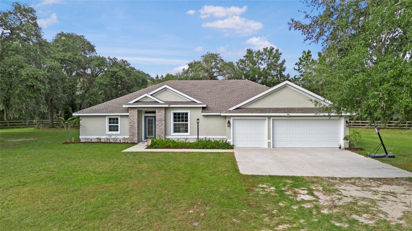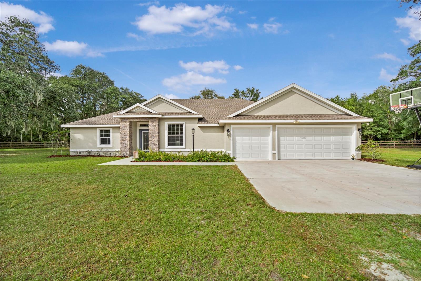 Nestled on over 2 acres of serene, private land, this stunning luxury home boasts four spacious bedrooms and three bathrooms approximately 20 minutes from The World Equestrian Center. With its premium finishes and newer kitchen appliances. The expansive three-car garage offers plenty of room for vehicles, storage, or even a workshop. Inside, you’ll find an open-concept living area flooded with natural light, a massive island, and a luxurious primary suite complete with a massive shower, double vanity, and TWO walk-in closets. Step outside to enjoy the vast outdoor space—perfect for entertaining, gardening, simply soaking in the peaceful surroundings, or with proper permitting space for your equine companions. Your home also comes with a survey, a full starlink system awaiting you! Spectrum is now servicing the community as well so that you can keep the internet you love! This home is the perfect blend of luxury living and country charm, offering the space and privacy you’ve been dreaming of.