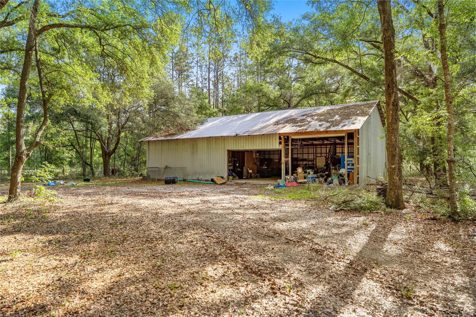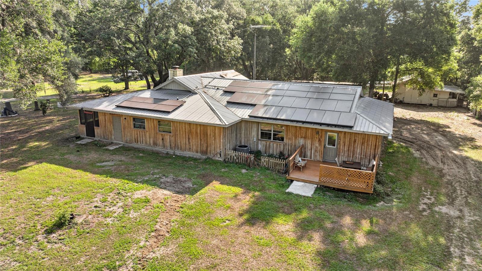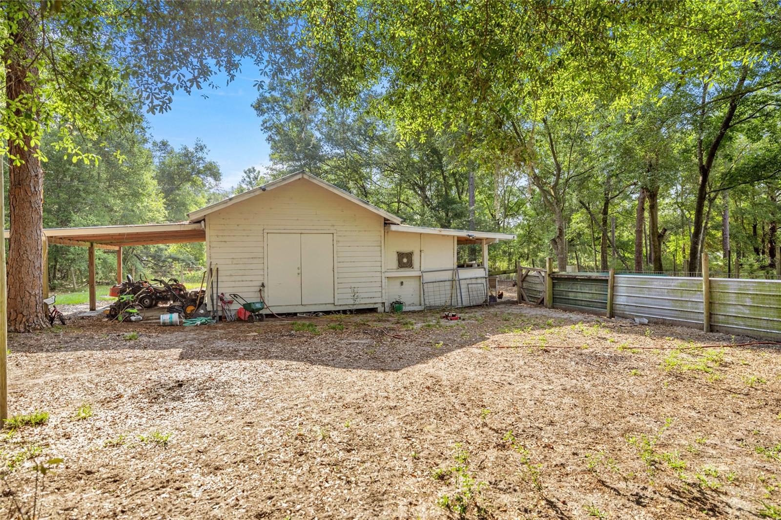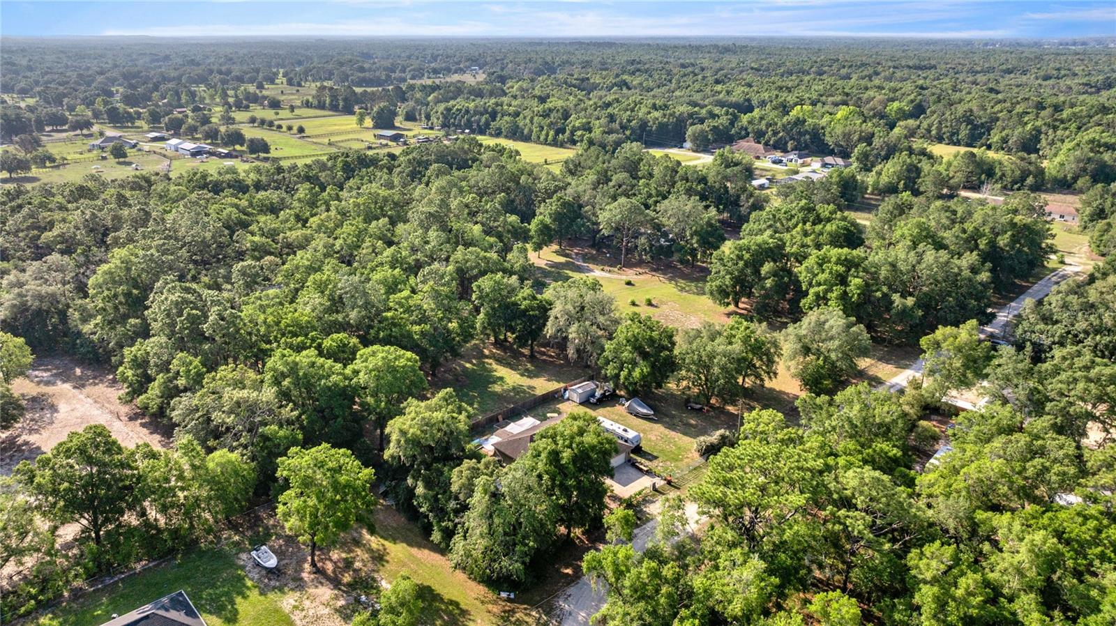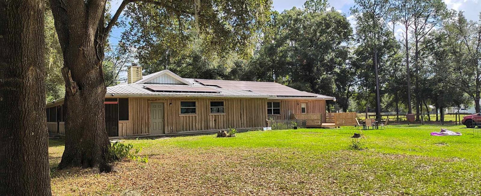 If you're looking for your forever home don't miss this Approximately 5 acres are zoned Agriculture. Additional approximately 3 acres with building lots available for additional price. Check this home with NO HOA. Approximately 15 mins from WEC, 25 mins from Florida Horse Park, 20 mins from HITS, 10 minutes from, shopping, the Rainbow River and other amenities. One-of-a-kind custom-built home is three-bedroom two bath and has a country feel with a wraparound screen porch covered. Exterior is constructed of unique Cypress Wood. Updated with 2 ,3.5-ton heat and a/c units. Step inside the front door into the spacious living room area. High ceilings and Enough space to have an office or a game room. The large kitchen and joining formal dining room comes complete with wood burning fireplace, huge closet/pantry area, 2 sets of French doors to the covered porch. Updated oak cabinets with newer appliances including range, dishwasher, refrigerator. Ample counter space, including a bar. Two generous size bedrooms with a jack and Jill bathroom. Laundry room with newer washer and dryer, even a newer water heater with a door to access the covered porch. A primary bedroom that has a big bathroom and a massive closet with a door to the front yard. Bathroom includes a beautifully tiled shower with a seat, a waterfall showerhead with the option to switch to a wand. The property includes an industrial well pump, with multiple water faucets throughout the property. Solar panels help keep this economical. 2600 square-foot shop with concrete floors for easy cleanup. High ceilings and doors, enclosed room perfect for storage, workshop or barn. Surrounded by large oak trees that provide privacy. Also included is a shed with attached lean two on one side and a chicken coop on the other. Entire property is fenced and cross fenced. Several pastures perfect for cows/horses even perfect for a garden. There is plenty of parking area! It's a Must See!!!