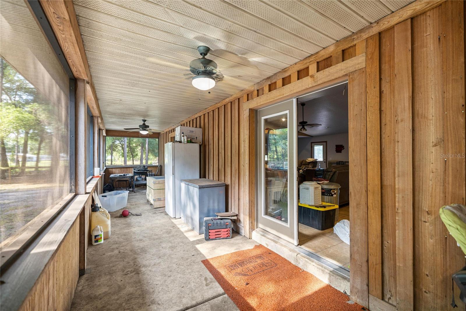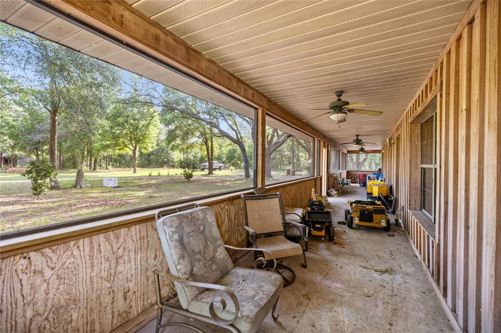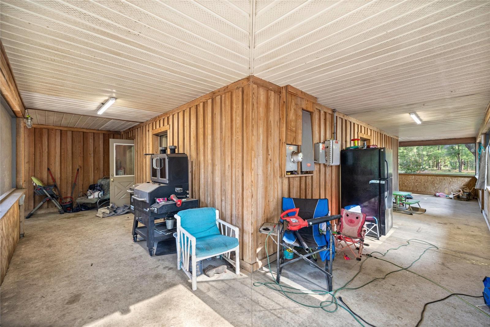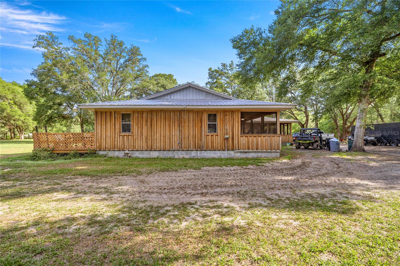 If you're looking for your forever home don't miss this Approximately 5 acres are zoned Agriculture. Additional approximately 3 acres with building lots available for additional price. Check this home with NO HOA. Approximately 15 mins from WEC, 25 mins from Florida Horse Park, 20 mins from HITS, 10 minutes from, shopping, the Rainbow River and other amenities. One-of-a-kind custom-built home is three-bedroom two bath and has a country feel with a wraparound screen porch covered. Exterior is constructed of unique Cypress Wood. Updated with 2 ,3.5-ton heat and a/c units. Step inside the front door into the spacious living room area. High ceilings and Enough space to have an office or a game room. The large kitchen and joining formal dining room comes complete with wood burning fireplace, huge closet/pantry area, 2 sets of French doors to the covered porch. Updated oak cabinets with newer appliances including range, dishwasher, refrigerator. Ample counter space, including a bar. Two generous size bedrooms with a jack and Jill bathroom. Laundry room with newer washer and dryer, even a newer water heater with a door to access the covered porch. A primary bedroom that has a big bathroom and a massive closet with a door to the front yard. Bathroom includes a beautifully tiled shower with a seat, a waterfall showerhead with the option to switch to a wand. The property includes an industrial well pump, with multiple water faucets throughout the property. Solar panels help keep this economical. 2600 square-foot shop with concrete floors for easy cleanup. High ceilings and doors, enclosed room perfect for storage, workshop or barn. Surrounded by large oak trees that provide privacy. Also included is a shed with attached lean two on one side and a chicken coop on the other. Entire property is fenced and cross fenced. Several pastures perfect for cows/horses even perfect for a garden. There is plenty of parking area! It's a Must See!!!