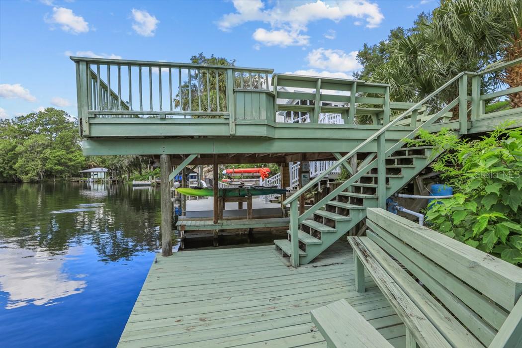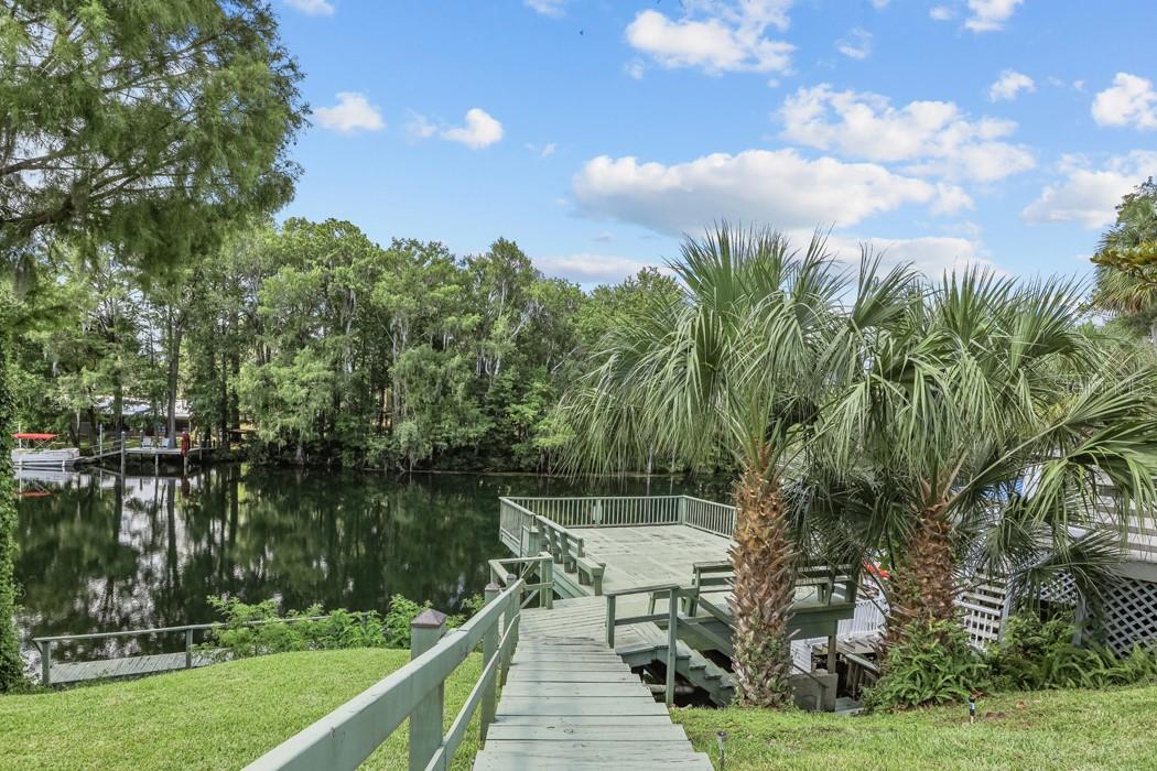 OUTSTANDING RIVERFRONT HOME LOADED with SPACE, AMENITIES & STUNNING VIEWS! This truly unique residence has 5 Bedrooms, 3 1/2 Baths, and 2,635 Sq. Ft. of Living Area on a NO FLOOD INSURANCE site along the Withlacoochee River in the historic district of suburban Dunnellon. With its attractive interior spaces and exceptional backyard features this rare opportunity promises a choice lifestyle experience both INSIDE & OUT! Among its numerous interior highlights is a spacious Great Room with a richly finished Wood "Tongue and Groove" Ceiling accented with recessed lighting...Bar/Wine niche...and Expansive Dining Room with adjacent sun-drenched Sitting Area. You'll also appreciate the updated, earth-tone kitchen with Shaker Cabinets, Quartz Counters, and designer Tile Backsplashes. Central to the home's attraction are the numerous backyard amenities creating a mecca for outdoor recreation and relaxation. There's a Screened Room with panoramic river views...a Firepit...Covered Open-Air Porch...& Arbor Shelter with Family-Sized Picnic Table. For water sport enthusiasts there's the large covered dock with a roomy overhead deck overlooking the river. Whether your interest leans toward boating, fishing, canoeing, or kayaking your private Backyard Boathouse is along a beautiful stretch of the Withlacoochee River that leads to the sparkling Rainbow River and Lake Rousseau. The finishing touch to this rare opportunity is a location that is just an easy walk to restaurants and shops in the historic area together with convenience to an abundance of retail shopping, a full array of community services as well as the towns of Lecanto, Beverly Hills, Crystal River & nearby Ocala. This tucked-away haven awaits new owners seeking a special caliber of waterfront housing opportunity perfect for a roomy primary residence, a recreational gathering spot for family and friends as well as a property with a successful track record as an Airbnb/VRBO style rental. SEE THIS CHOICE 1948 home with stylish 2003 Addition BEFORE IT IS LOST!