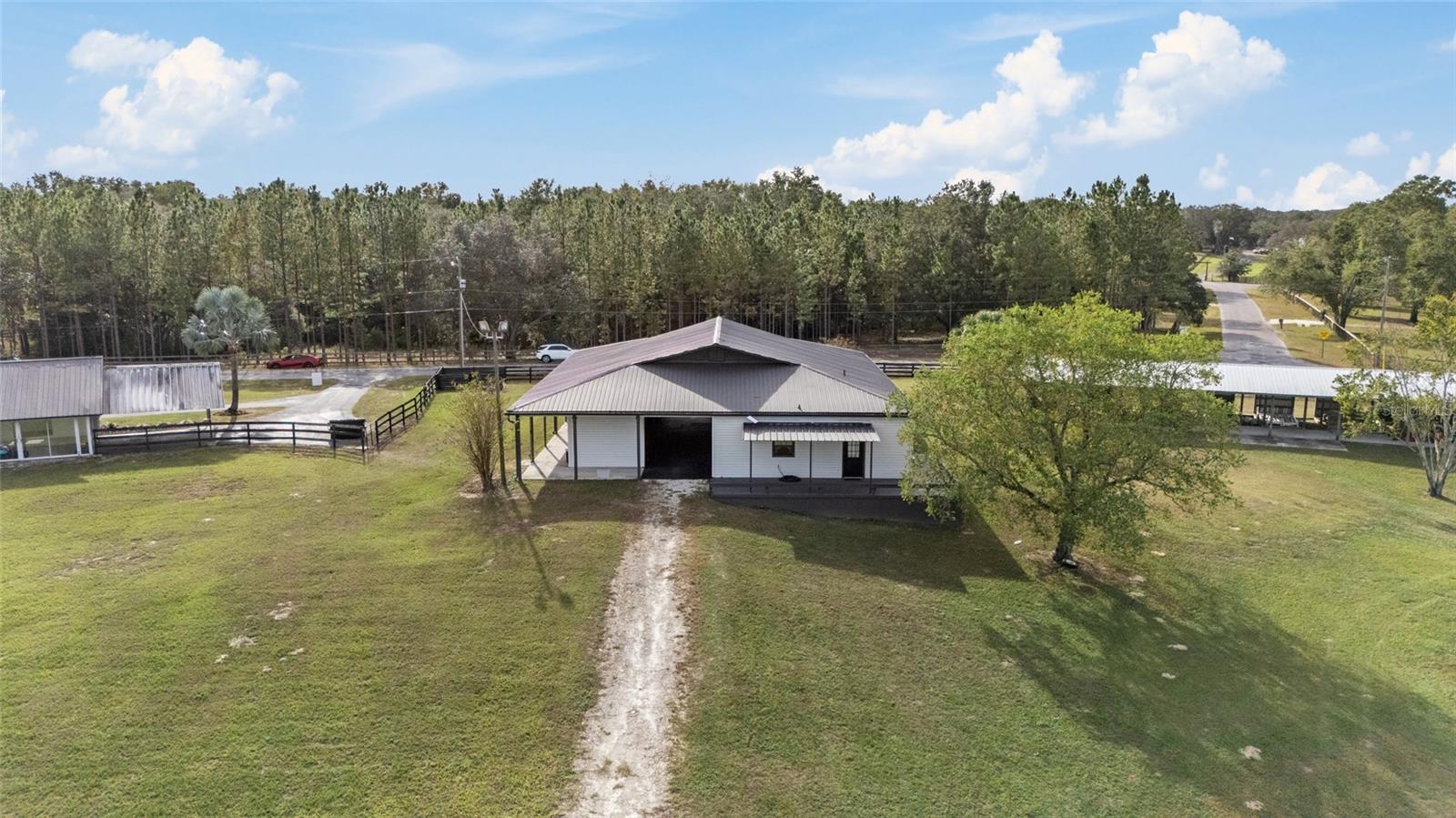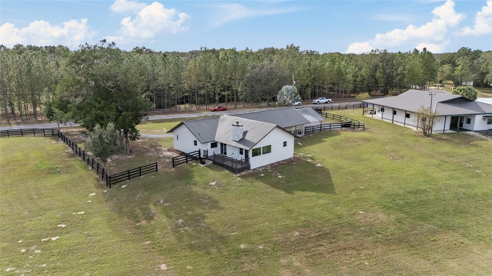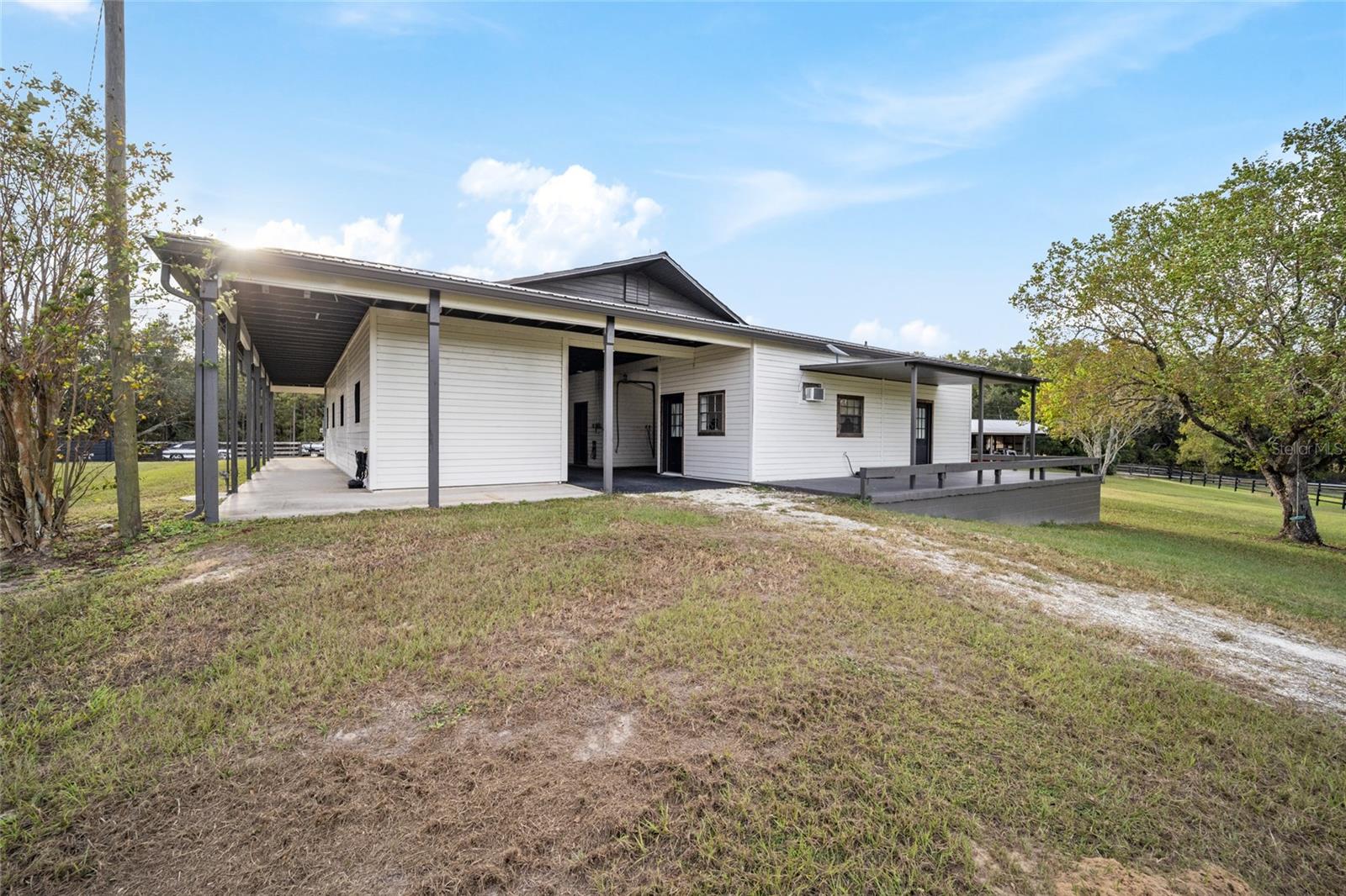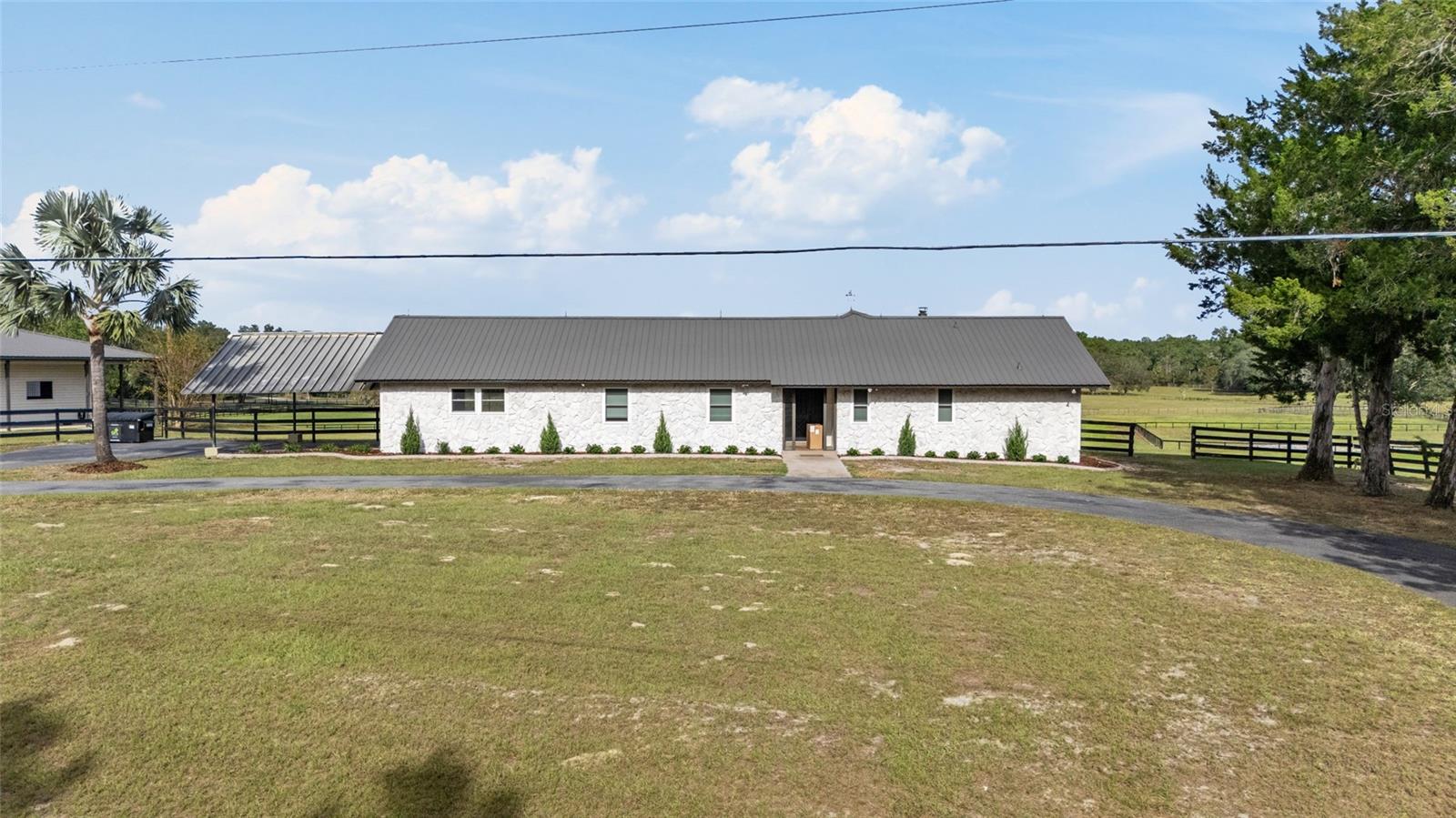 Huge price reduction on this gorgeous farm! If beautiful surroundings, a peaceful atmosphere, and a gorgeous horse facility is what you dream of, this is the property for you! Tucked into a quiet horse community of SW Marion County awaits this beautiful 11+ acre, turn key horse farm. The beautiful barn has been renovated from top to bottom, with an adorable 1 bedroom/1 bath barn apartment with wrap around deck overlooking the fields, 5-12x14 Stalls, 1-12x16 stalls, interlocking mats, fans and lights throughout, gorgeous tongue and groove stalls, an air conditioned tack room with cabinets and chandelier, wrap around overhang with non slip concrete, gutters, shavings bin, hay storage, trailer/rv parking with power and septic connection. The home has been lovingly updated with new air ducts throughout, new windows and sliding glass doors, water heater, electric panel, fresh paint and landscaping throughout. Need more room for horses? An Additional shed row barn that can accommodate 8 more stalls is ready for stalls to be rebuilt. Top it off with a gorgeous 60' round pen, stunning views, peaceful paddocks with water trenched and mature oak trees scattered throughout, and a fenced 150' x 250' grass/sand arena! This home has it all and is a must see.