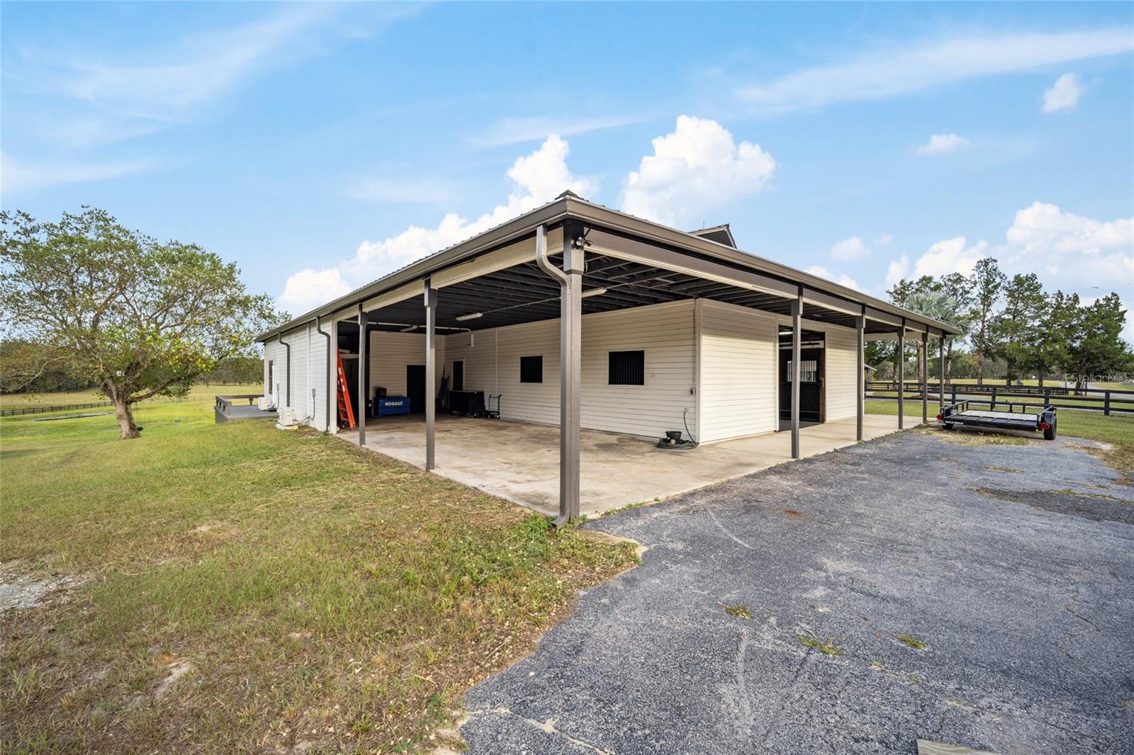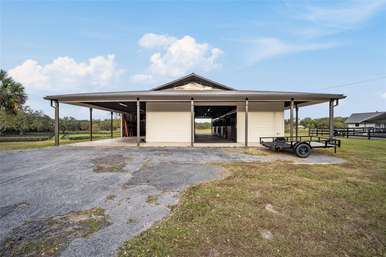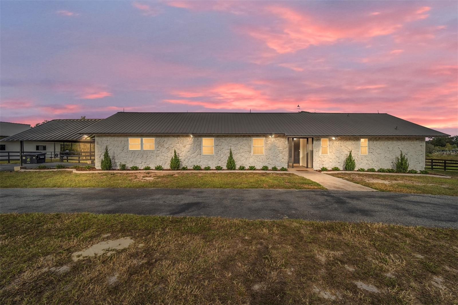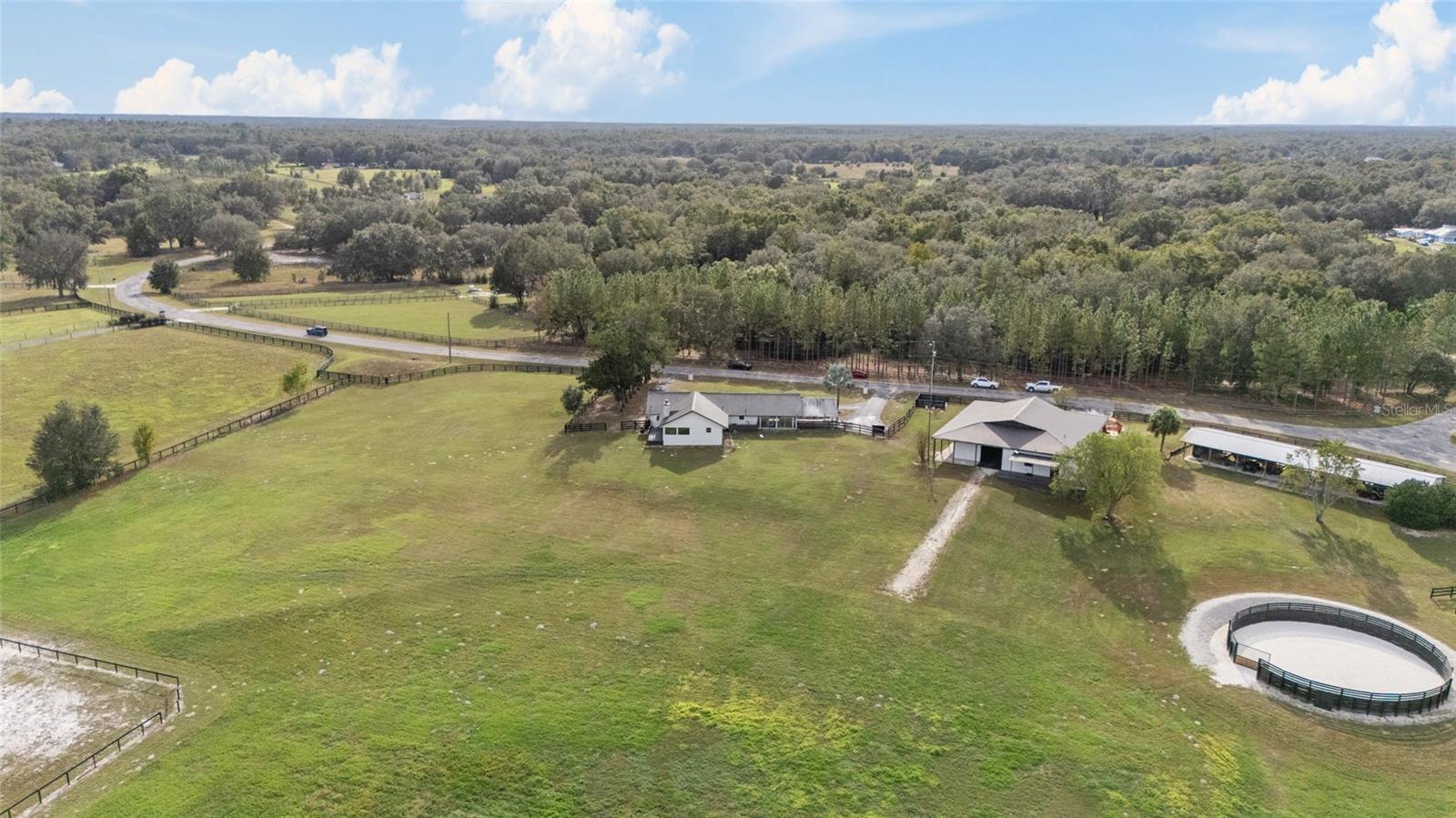 Huge price reduction on this gorgeous farm! If beautiful surroundings, a peaceful atmosphere, and a gorgeous horse facility is what you dream of, this is the property for you! Tucked into a quiet horse community of SW Marion County awaits this beautiful 11+ acre, turn key horse farm. The beautiful barn has been renovated from top to bottom, with an adorable 1 bedroom/1 bath barn apartment with wrap around deck overlooking the fields, 5-12x14 Stalls, 1-12x16 stalls, interlocking mats, fans and lights throughout, gorgeous tongue and groove stalls, an air conditioned tack room with cabinets and chandelier, wrap around overhang with non slip concrete, gutters, shavings bin, hay storage, trailer/rv parking with power and septic connection. The home has been lovingly updated with new air ducts throughout, new windows and sliding glass doors, water heater, electric panel, fresh paint and landscaping throughout. Need more room for horses? An Additional shed row barn that can accommodate 8 more stalls is ready for stalls to be rebuilt. Top it off with a gorgeous 60' round pen, stunning views, peaceful paddocks with water trenched and mature oak trees scattered throughout, and a fenced 150' x 250' grass/sand arena! This home has it all and is a must see.