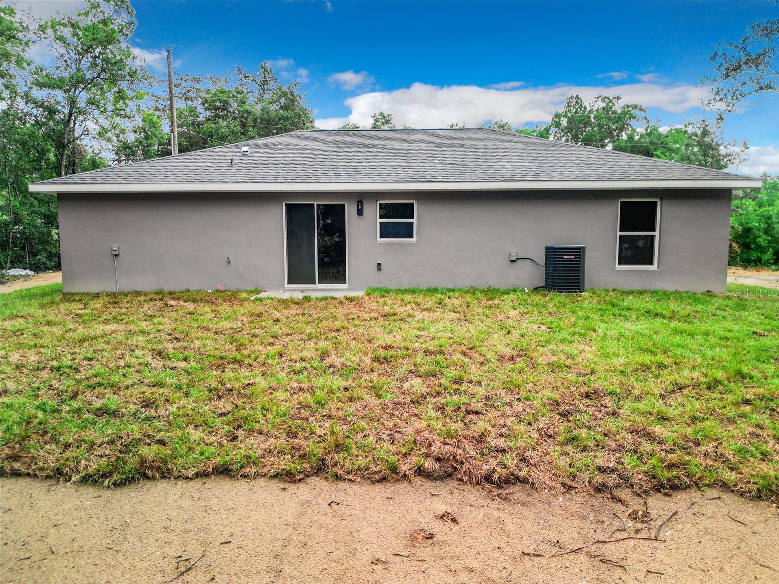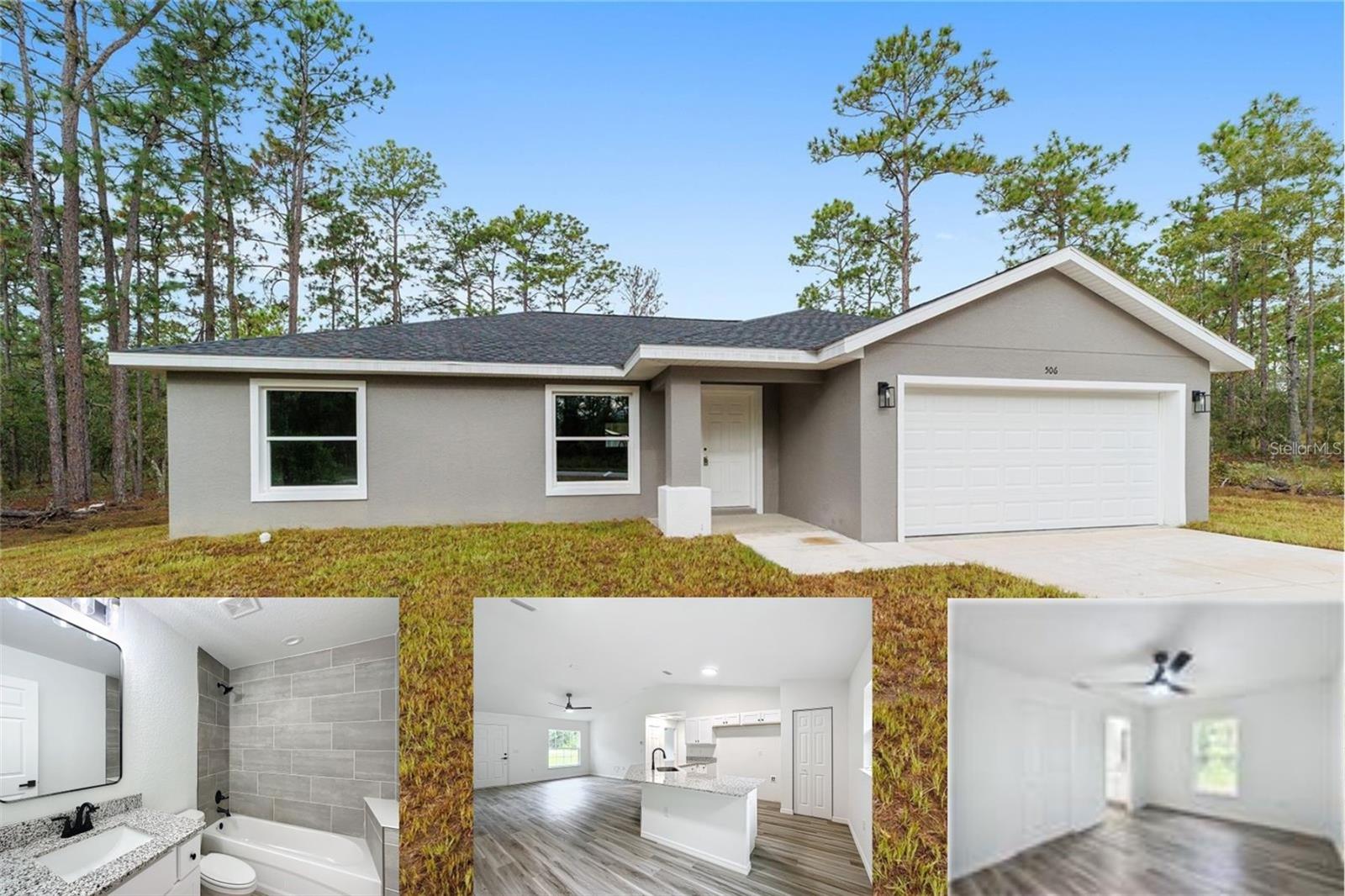 Buyer Bonus! Washer and Dryer included with an accepted offer. All offer welcome. This brand new home, is located on a peaceful secluded street and offers added peace of mind with its concrete block construction and energy saving windows and lighting. The modern and stylish features include wood shaker cabinets complete with hardware, granite countertops throughout, luxury vinyl flooring, modern stylish led light fixtures and ceiling fans, a covered front entryway, 10x10 back patio and garage door opener. The kitchen features a stainless steel appliance package, pantry and generous counter space. The home offers three spacious bedrooms and two full bathrooms with fully tiled shower/tub as well as a generously sized walk in closet in the primary bedroom. Although there is no HOA, the community provides extensive amenities, including a community center that hosts events such as craft workshops, dinners, plant swaps, and has pavilions for event rentals. Additional amenities include basketball courts, tennis courts, PICKLEBALL courts, walking trails, a boat ramp and dock, pavilions, and playgrounds. Residents can also enjoy a fitness center offering affordable classes and a youth center for the younger residents Located in a less populated area of the community, it's not uncommon to see deer crossing your yard from time to time, adding to the charm of this peaceful setting and the nature that surrounds. Nearby you will find a plethora of things to do such as golf, shopping, dining, kayaking, tubing, snorkeling, diving in the crystal clear water of Rainbow River. Rainbow Springs offers swimming and beautiful nature trails with waterfalls. For additional adventures or fishing you are just a 30 minute drive from Crystal River.