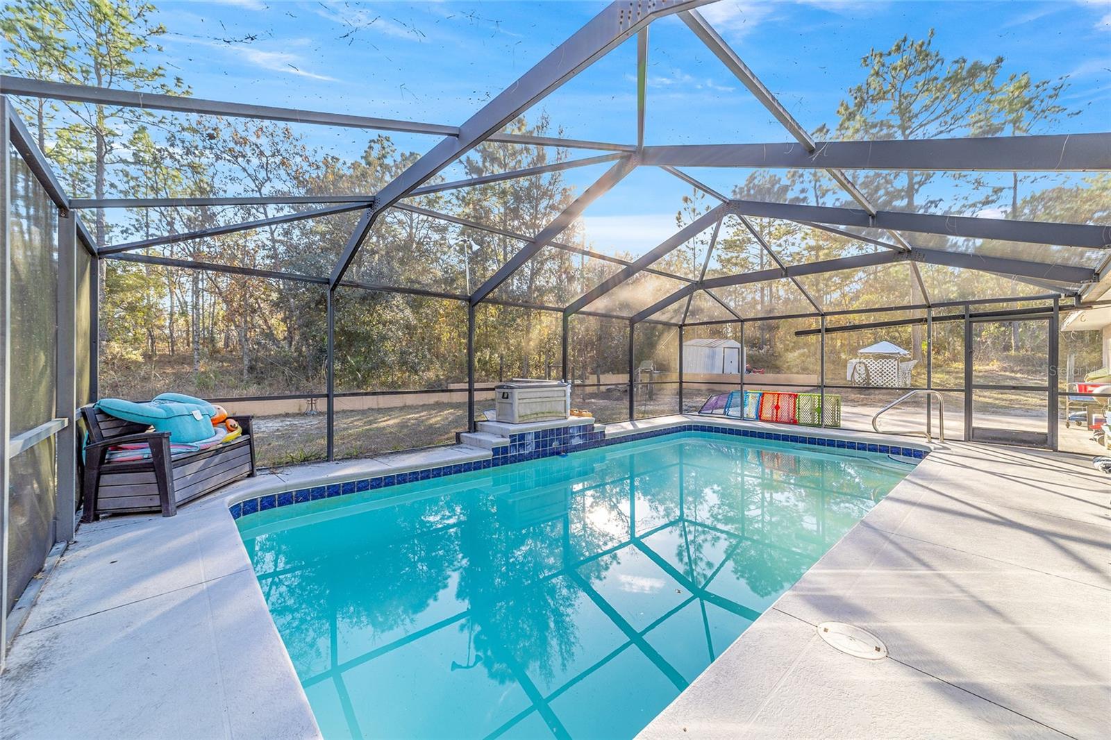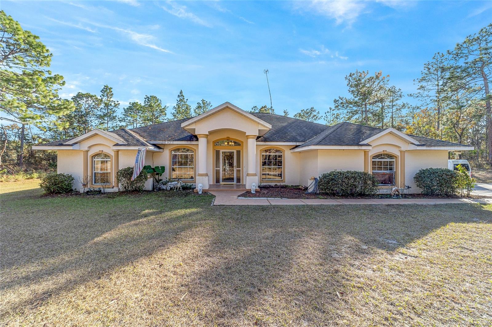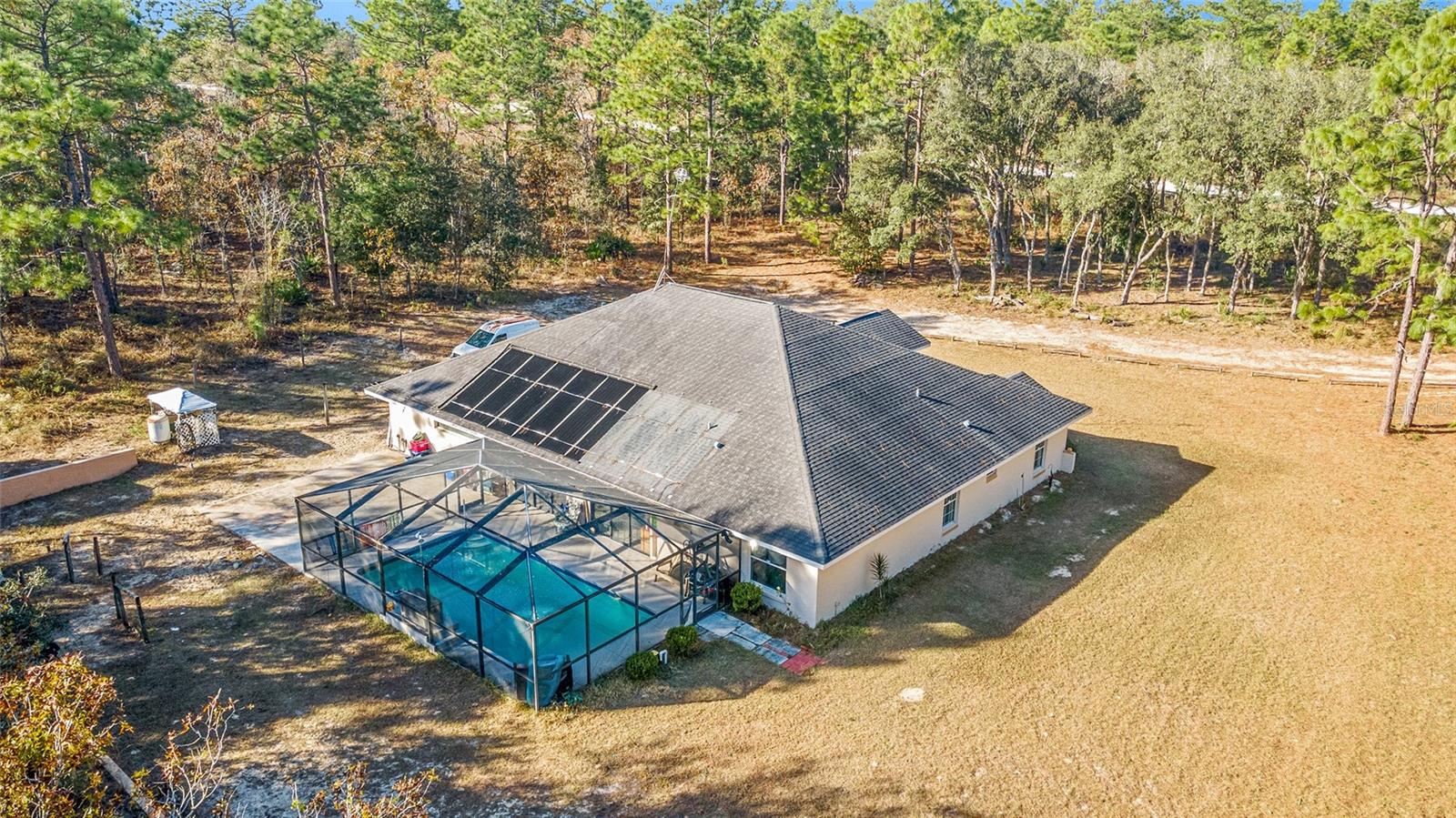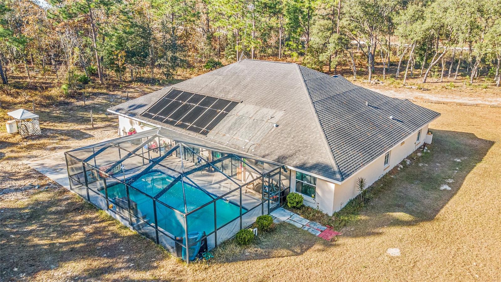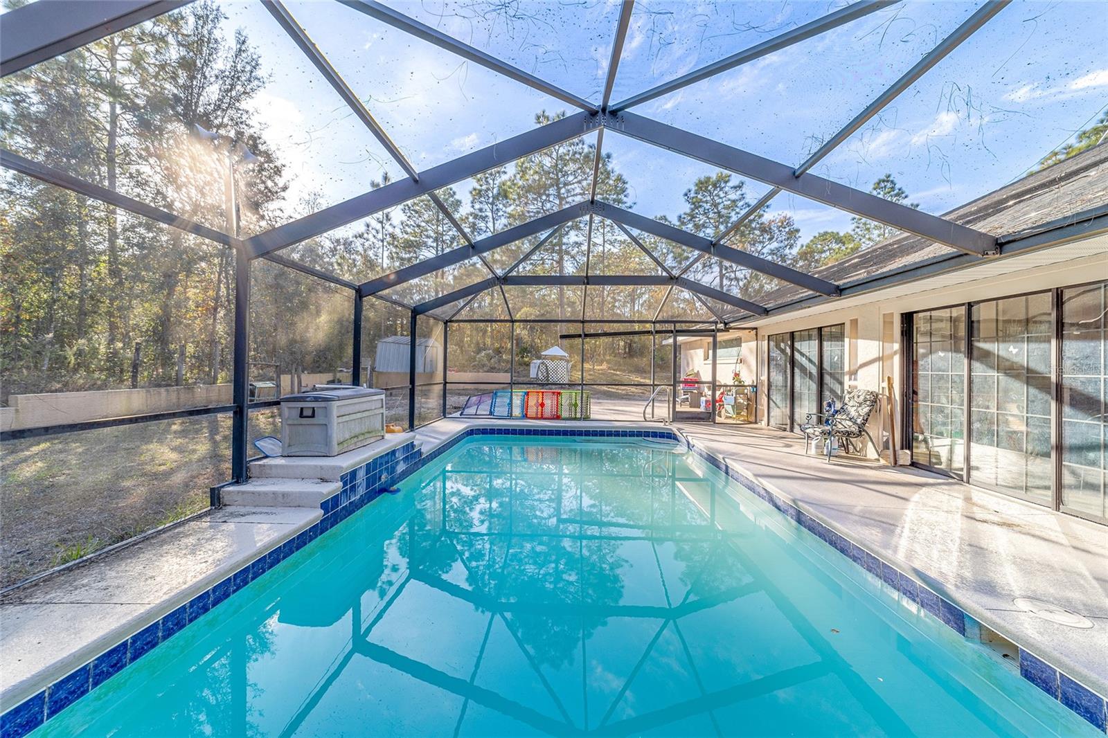 Spacious four-five-bedroom home on over two acres. Discover the potential of this expansive home on over two acres of serene land. This property offers plenty of space and features a pool with a screen enclosure, ideal for enjoying the Florida sunshine in your private oasis. Key features include spacious living. With four-five bedrooms, this home provides ample space for a growing family or flexibility to create a home office or gym. Equipped with approximately five-year-old appliances, installed in 2021. Newer air conditioner allows you to enjoy comfort year-round with a newer unit installed in 2021. Outdoor oasis, so dive into your private pool, sheltered by a screen enclosure, which is ideal for relaxation and entertaining. Please note the home has some deferred maintenance and will need a new roof. It’s priced accordingly, making it a fantastic opportunity to bring your dreams to life with a bit of sweat equity. This property is being sold as-is, giving you the chance to create your dream home with your personal touch. Don’t miss out on this great opportunity! Reach out today to schedule your appointment and explore the potential of this wonderful property.