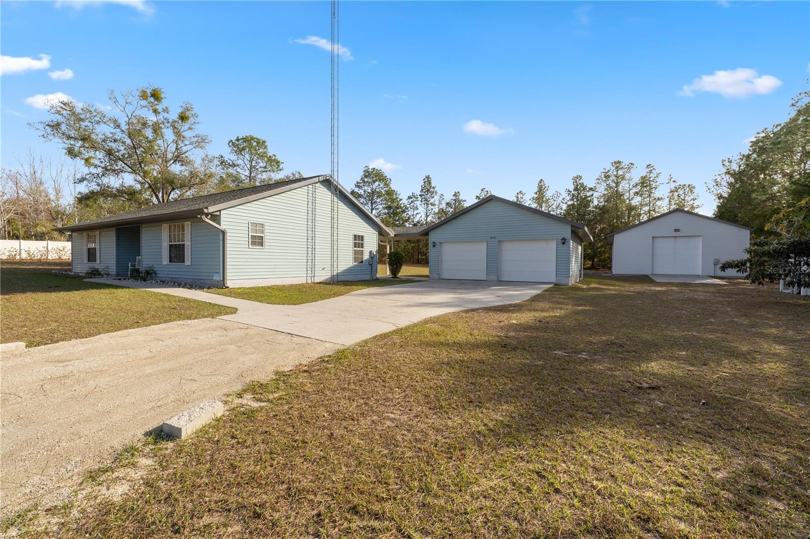 Beautiful Home on 1.40 Acres with Expansive Workshop & Detached Garage. Nestled in a prime location, this stunning property offers both privacy and convenience, with easy access to nearby amenities. The fully fenced 1.40-acre lot features a detached 2-car garage with ample storage space and an additional 1,920 sq. ft. workshop/storage area to accommodate a variety of needs. This move-in-ready home has been meticulously maintained and updated with modern features, including: Roof (2013), HVAC system (2020), Water heater (2023), Rain gutters, New stove & fridge (2023), Soft-close cabinets, Exterior & interior paint (2021), guest bathroom tile (July 2024), new lighting fixtures, recently updated Kitchen, upgraded bathrooms, "en suite” bathroom upgrades (new sink & toilet, July 2024), security cameras installed, tinted windows eastern southern and western exposure for energy efficiency, tinted windows garage, recent well tank, pump replaced, laminate flooring, newer carpet, three phase power on a separate meter in workshop, recently installed white vinyl fencing (334’), recently installed limestone, concrete millings driveway (approx. 150-200’ in length). The detached workshop is designed for versatility and durability, built to withstand 140 mph winds, making it an excellent asset during hurricane season. With room for a large RV, multiple four-wheelers, boats, or multiple vehicles, this space is perfect for a workshop, business operations, or additional storage. Between the workshop and the garage—featuring attic storage—you'll save money on off-property commercial storage. This exceptional property offers endless possibilities. Come see it today and experience its full potential!
