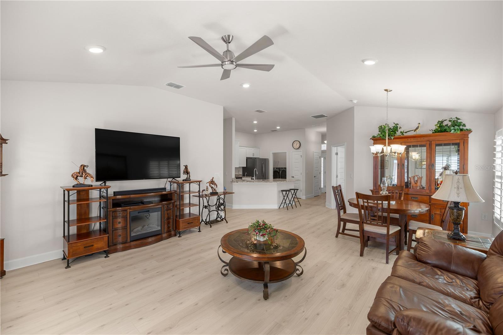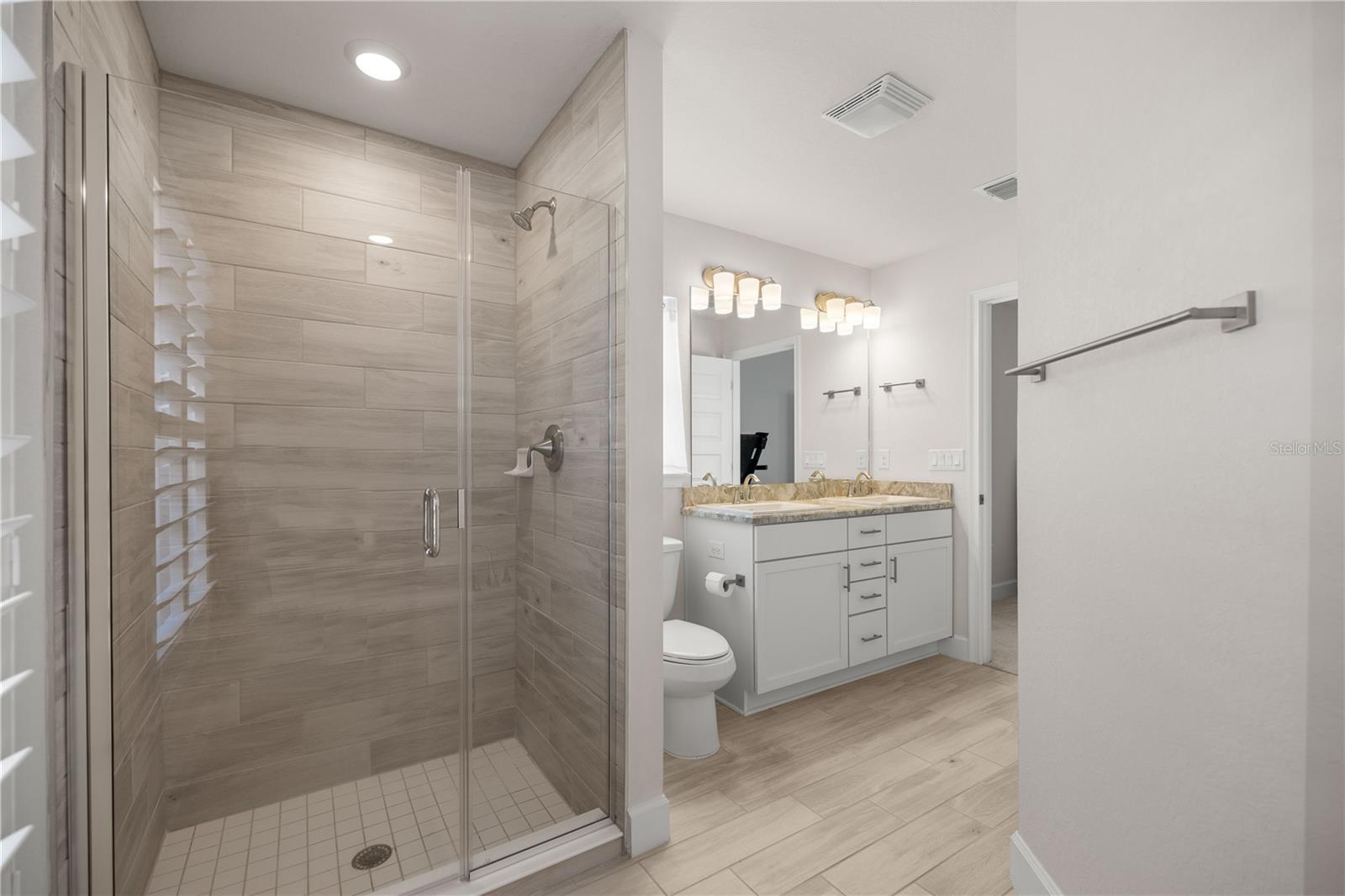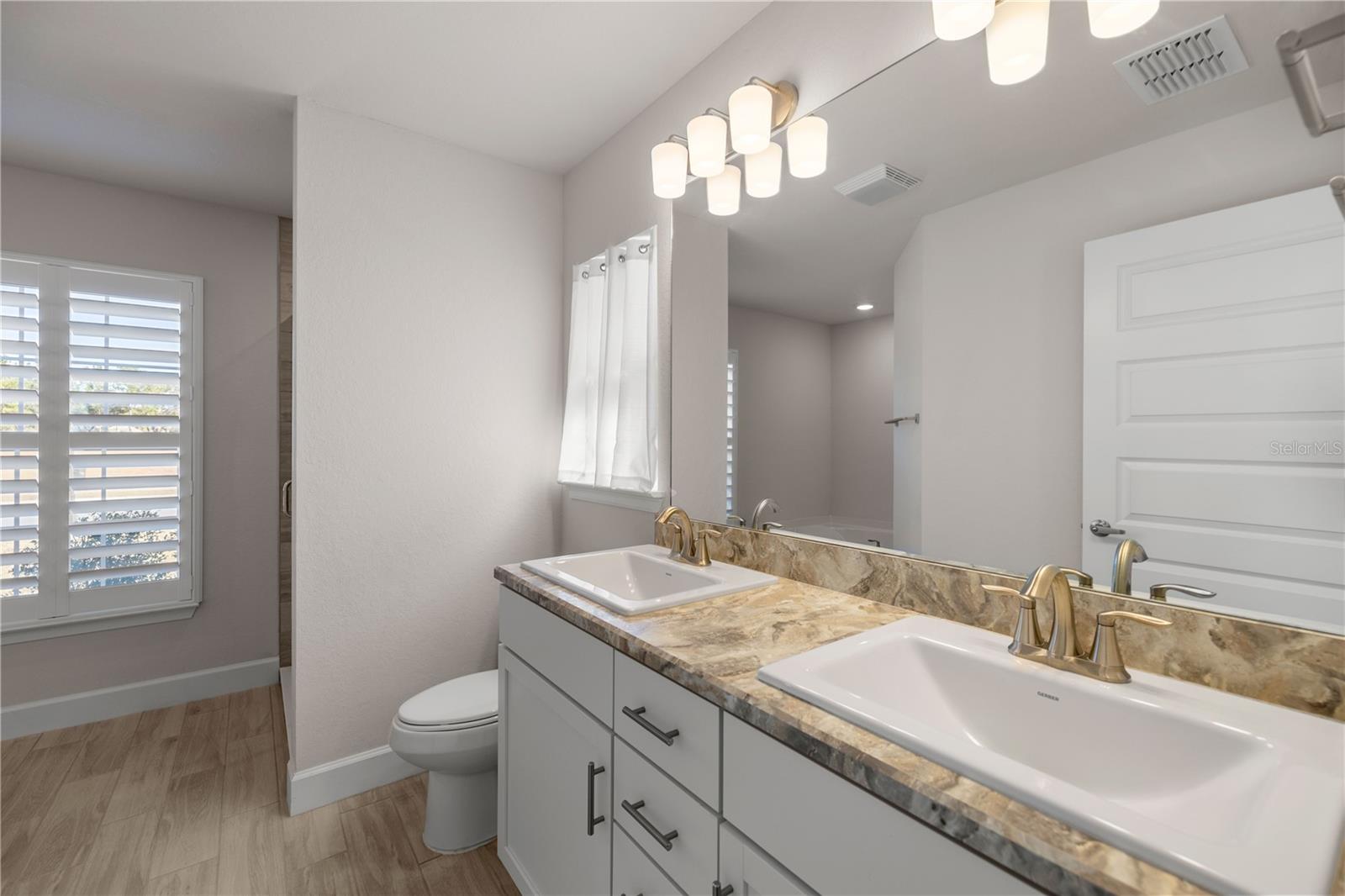 This beautifully upgraded Adams-built home in the desirable Juliet Falls Golf Course community offers a perfect mix of luxury and comfort. The Craftsman-style exterior sets the tone for the high-end finishes inside, including upgraded Shaker cabinets, beveled-edge HD countertops, and wood plank tile in the wet areas. Stainless steel appliances and brand new LVP flooring add to the home's appeal, while plantation shutters throughout offer a timeless, elegant touch. The open floor plan and over sized lanai are perfect for entertaining guests! Enjoy the peaceful surroundings that come with living in this desirable community. Schedule your showing today to experience the luxury and comfort this home has to offer!
