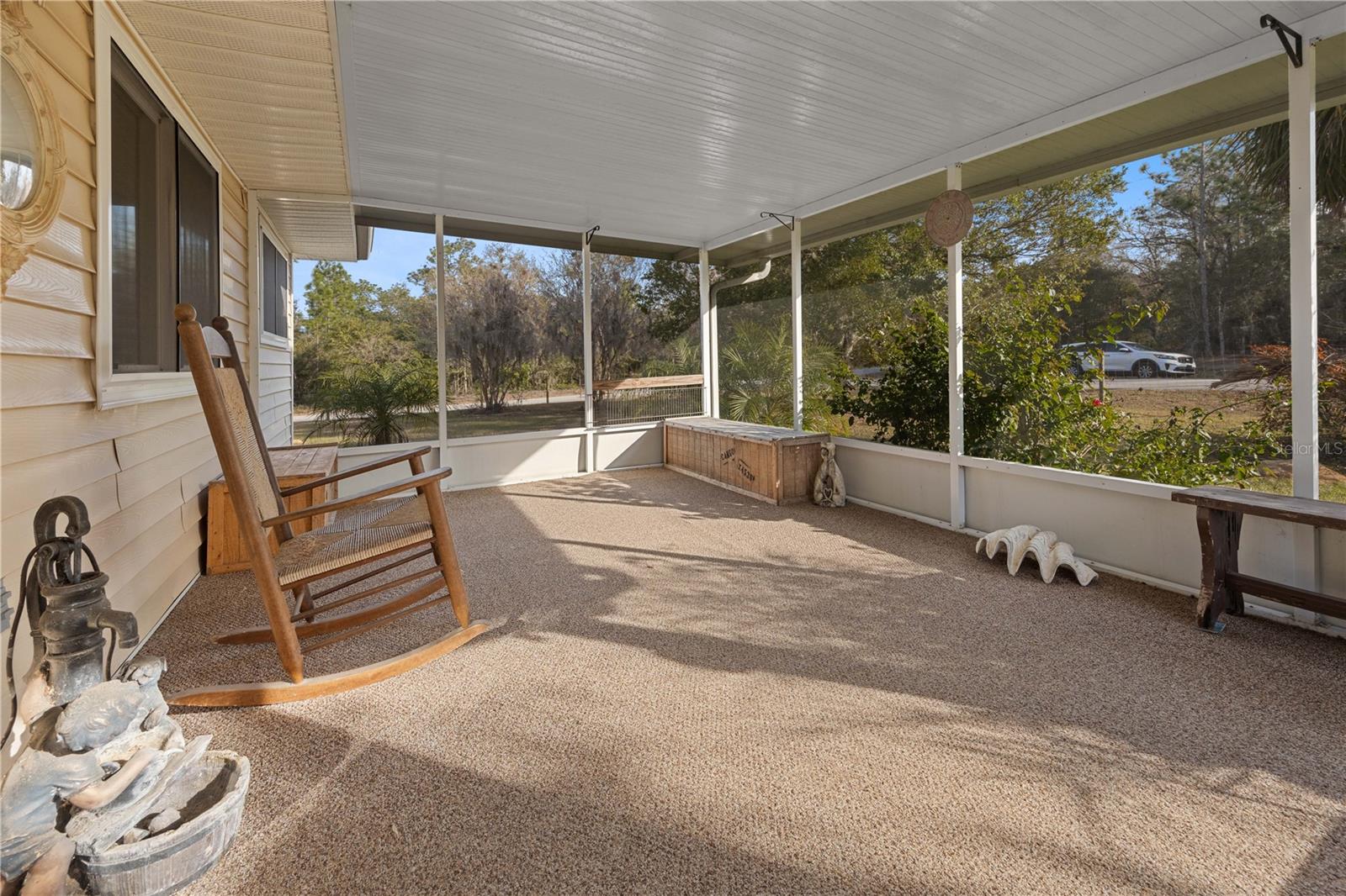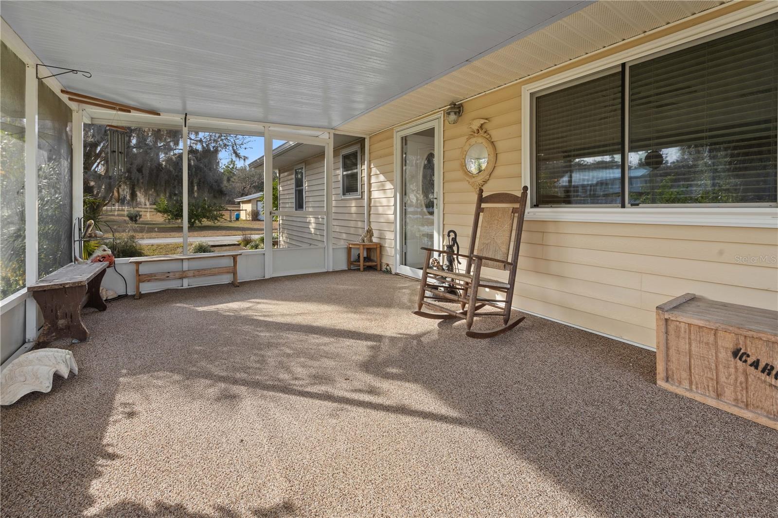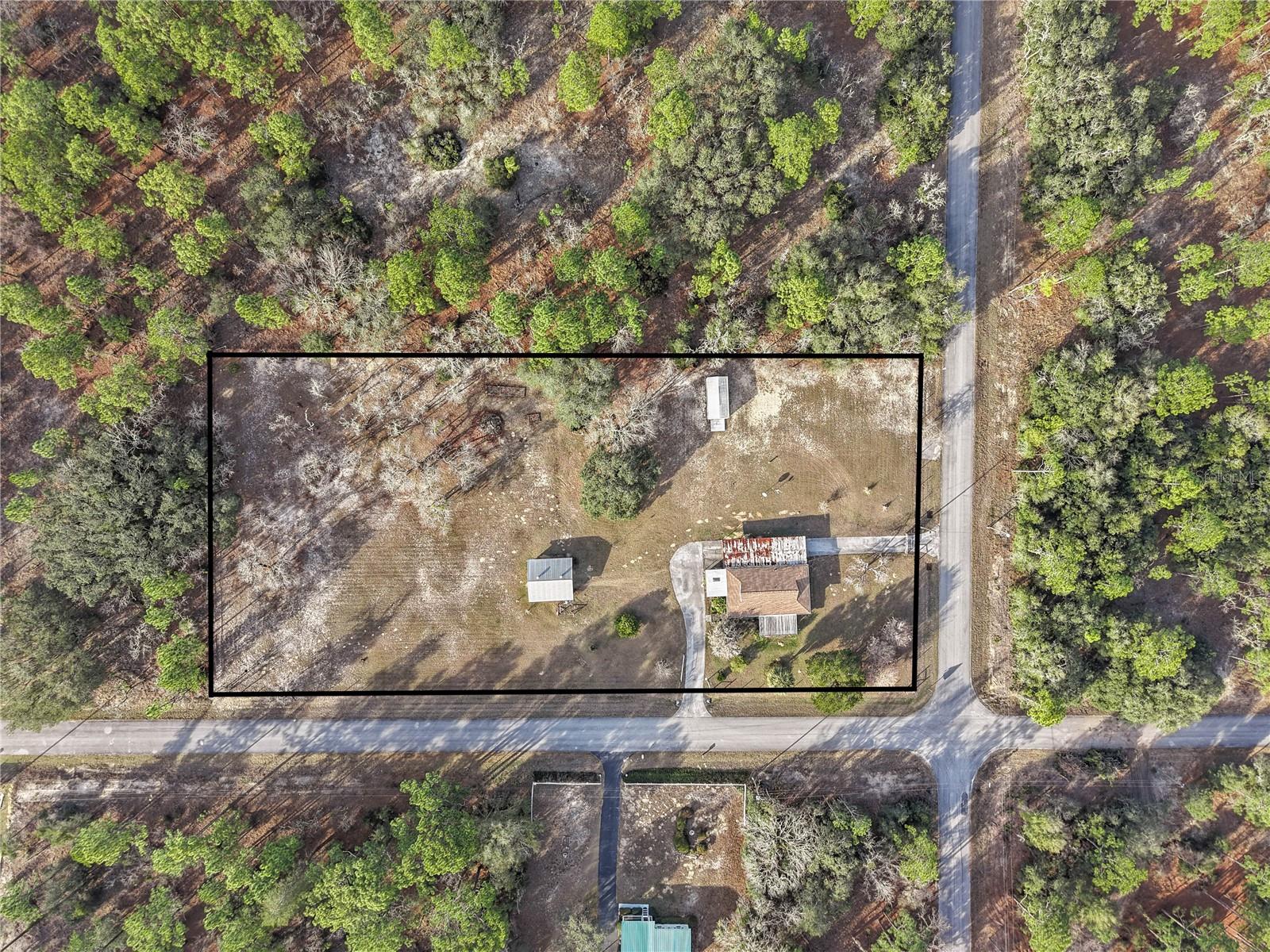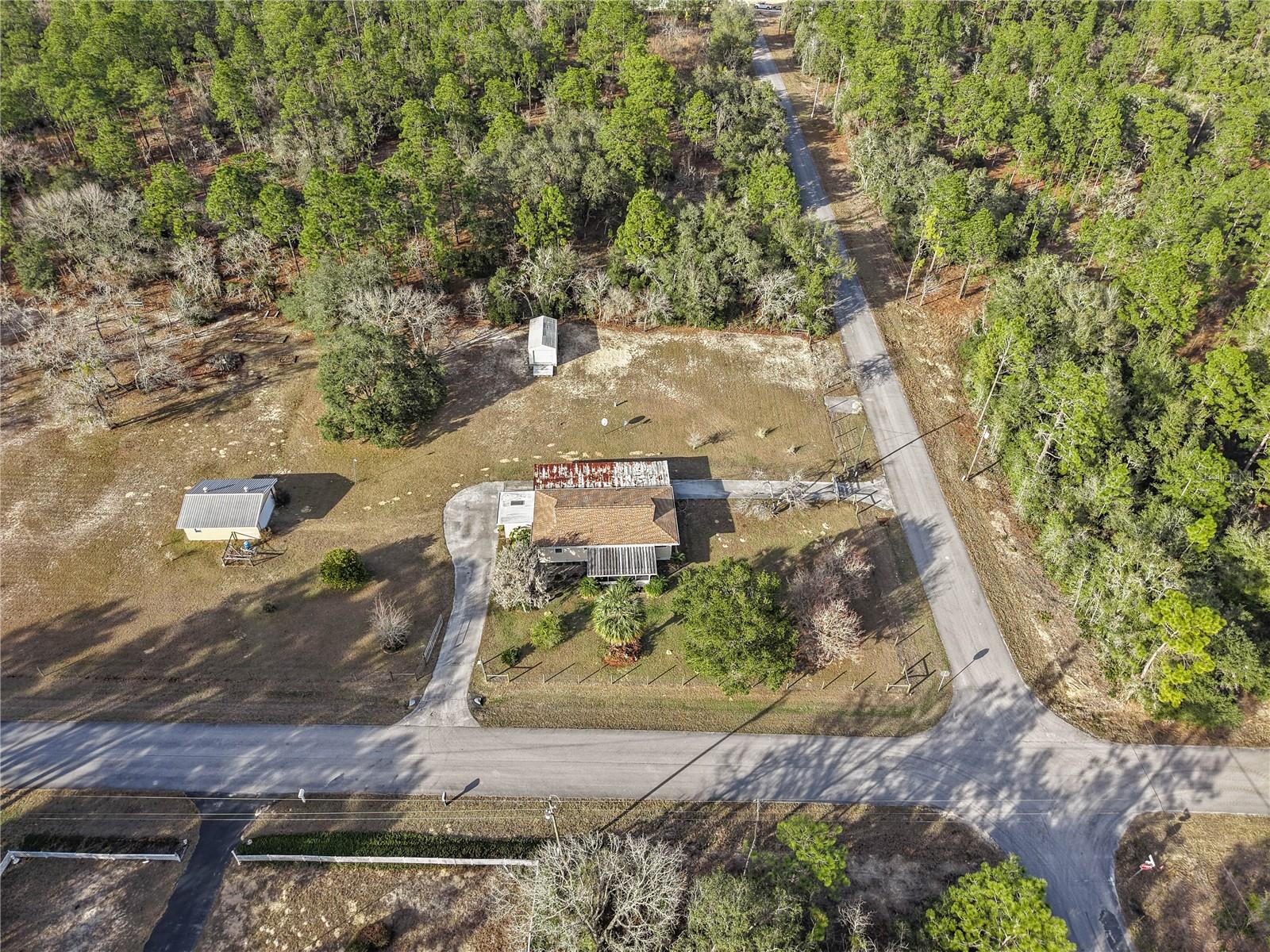 Welcome to this charming 2-bedroom, 2-bathroom home nestled on a sprawling 1.91-acre corner lot in the heart of Rainbow Acres; Dunnellon, Marion County. Boasting an array of recent upgrades, this residence offers modern comforts while retaining its countryside allure. Key updates include a new AC and electric panel in 2016, a complete roof and gutter system in 2017, all windows in 2018, and fresh doors in 2019. The property features two gated entrances, each on a separate road, enhancing privacy and accessibility. Positioned on a desirable corner lot with paved road access, the home faces south and spans a generous 200 x 415 ft. Enjoy the convenience of a detached garage, a nearly attached carport (note: the carport roof requires some attention), and some newly installed fencing in 2024. Relax on the screened 12x18 front porch, offering a serene spot to unwind. Don’t miss this rare opportunity to own a piece of tranquility in Marion County, perfectly zoned R1 for residential use.