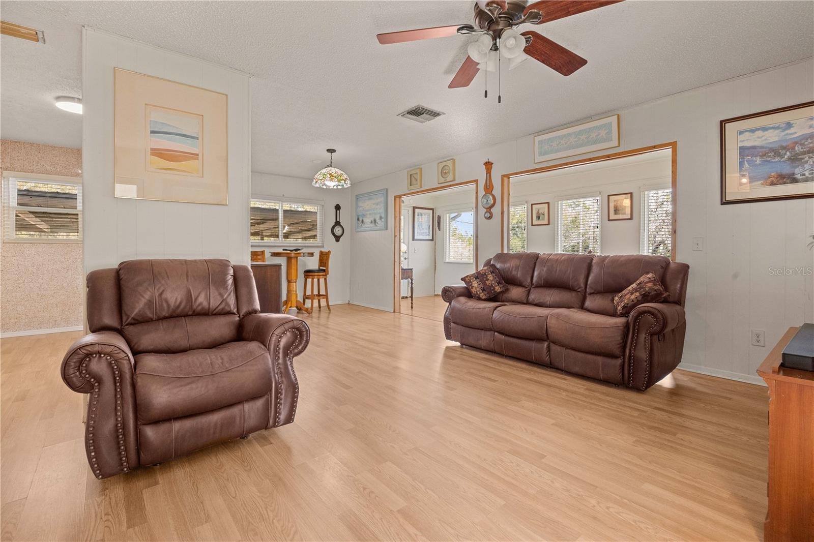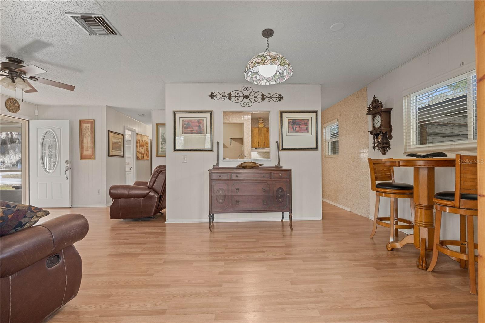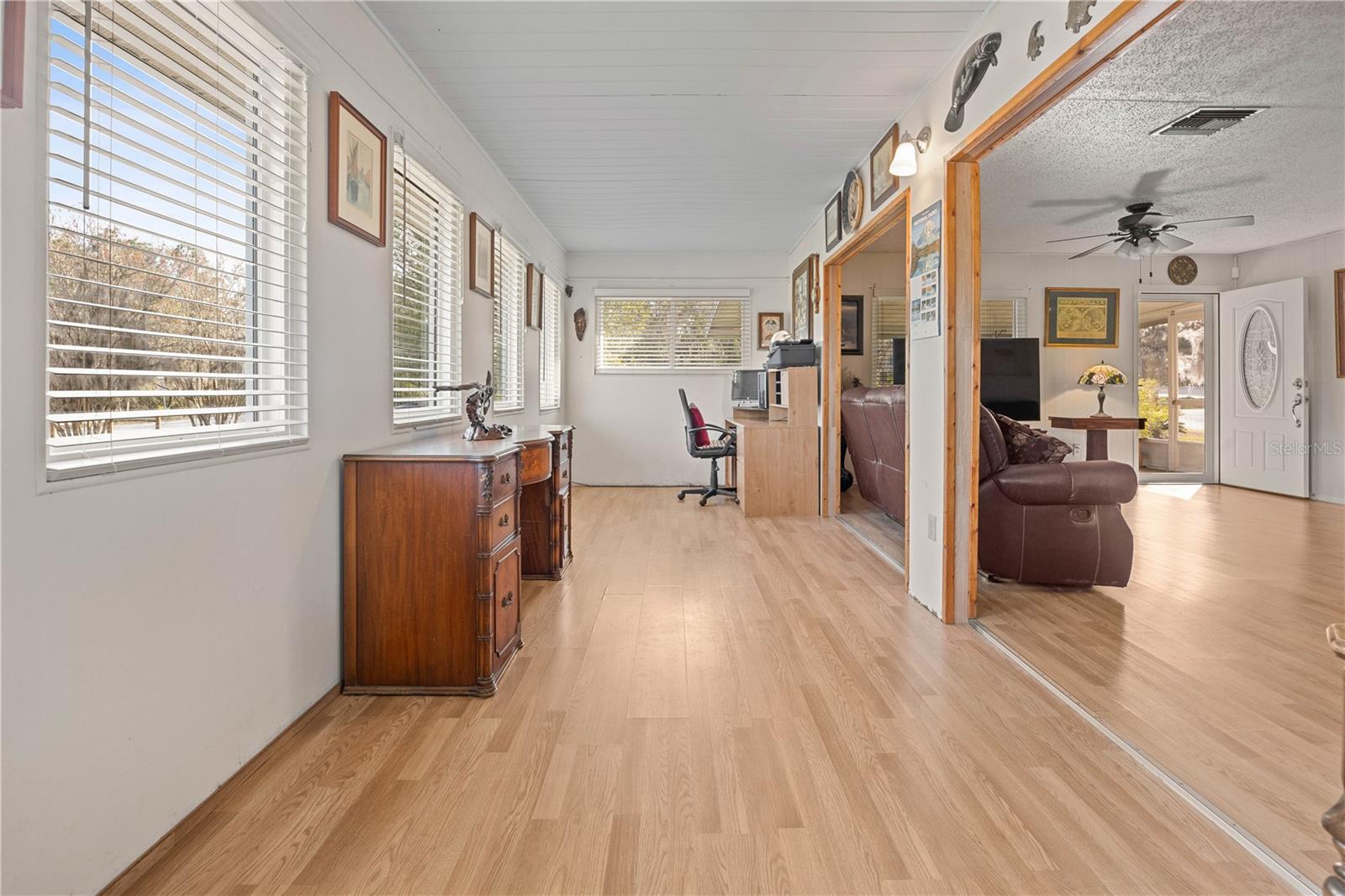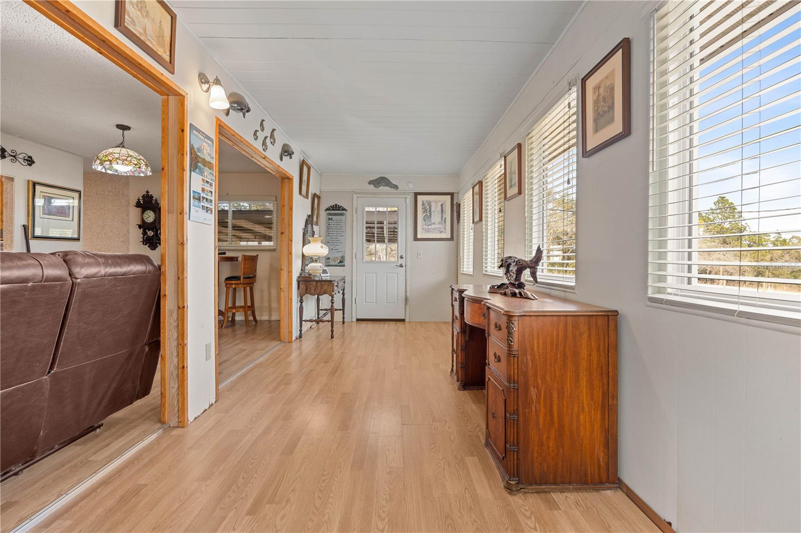 Welcome to this charming 2-bedroom, 2-bathroom home nestled on a sprawling 1.91-acre corner lot in the heart of Rainbow Acres; Dunnellon, Marion County. Boasting an array of recent upgrades, this residence offers modern comforts while retaining its countryside allure. Key updates include a new AC and electric panel in 2016, a complete roof and gutter system in 2017, all windows in 2018, and fresh doors in 2019. The property features two gated entrances, each on a separate road, enhancing privacy and accessibility. Positioned on a desirable corner lot with paved road access, the home faces south and spans a generous 200 x 415 ft. Enjoy the convenience of a detached garage, a nearly attached carport (note: the carport roof requires some attention), and some newly installed fencing in 2024. Relax on the screened 12x18 front porch, offering a serene spot to unwind. Don’t miss this rare opportunity to own a piece of tranquility in Marion County, perfectly zoned R1 for residential use.