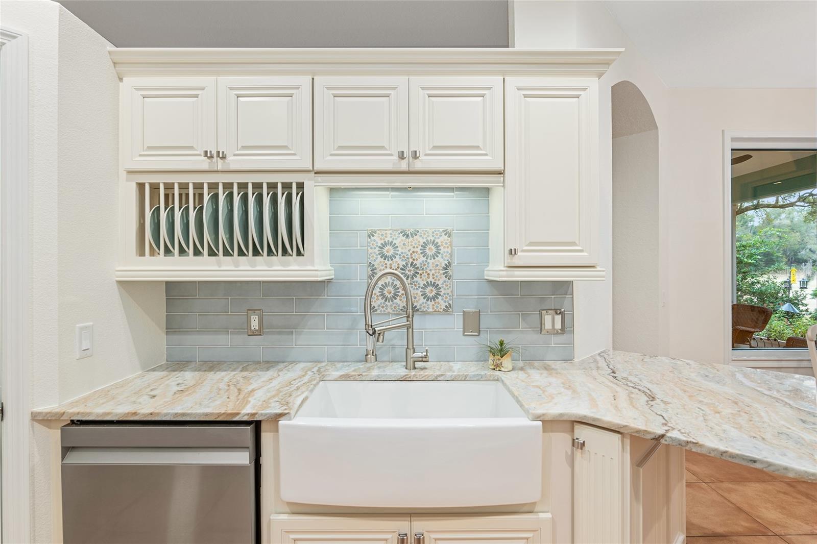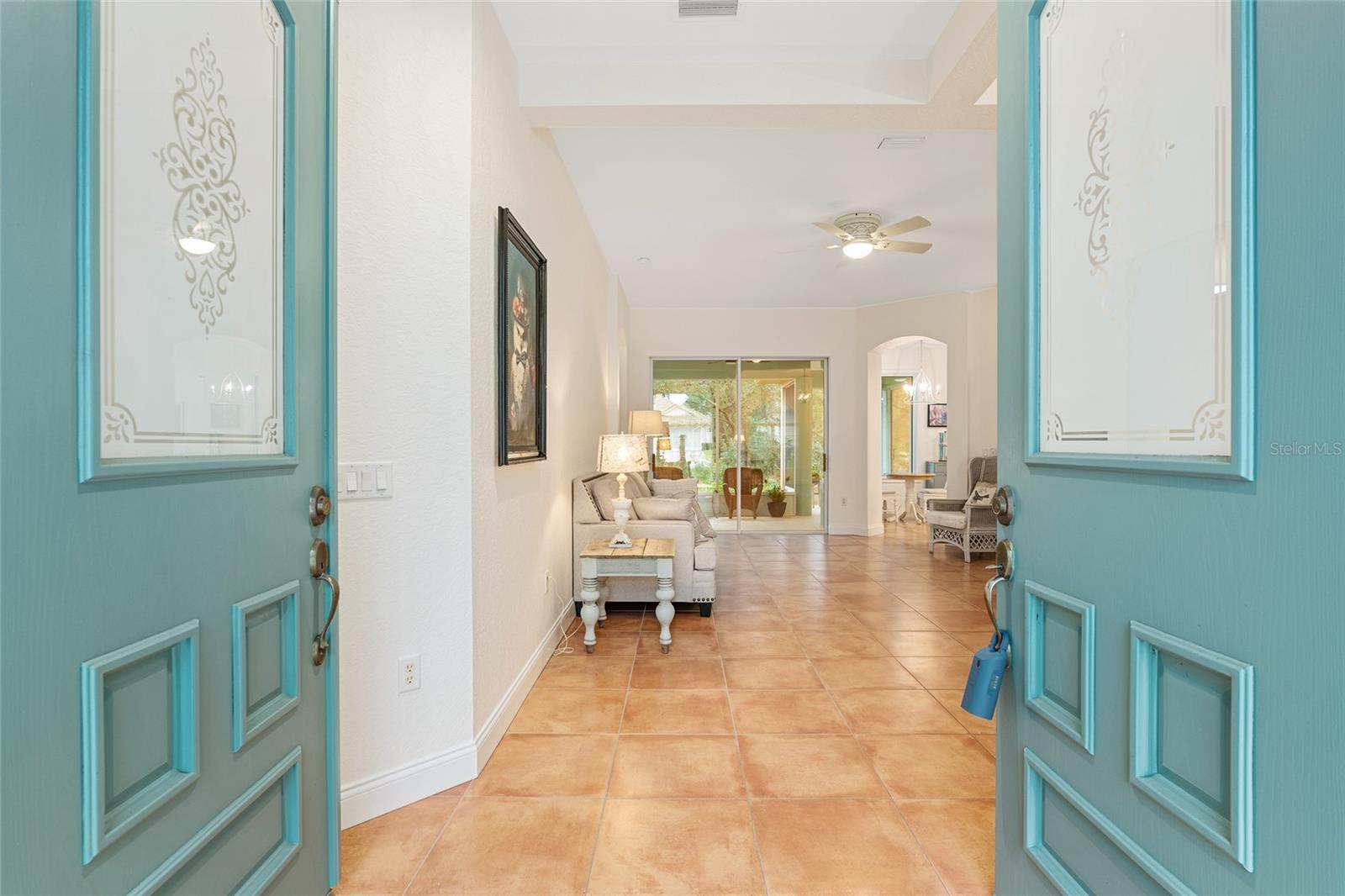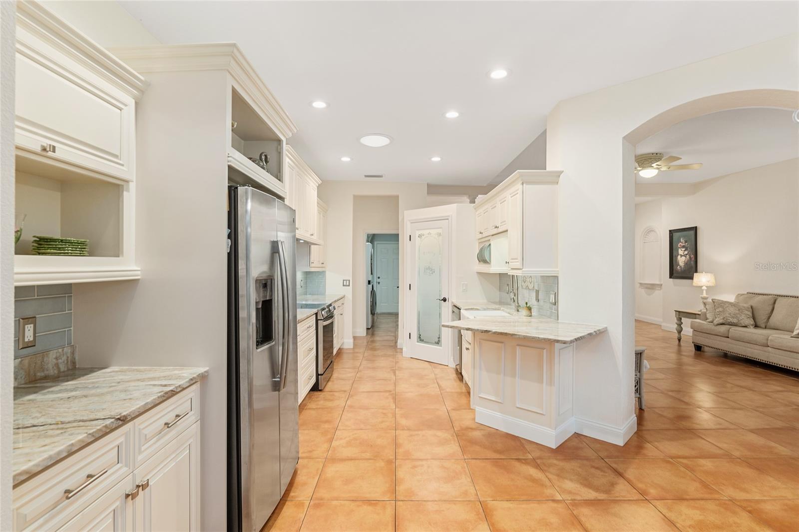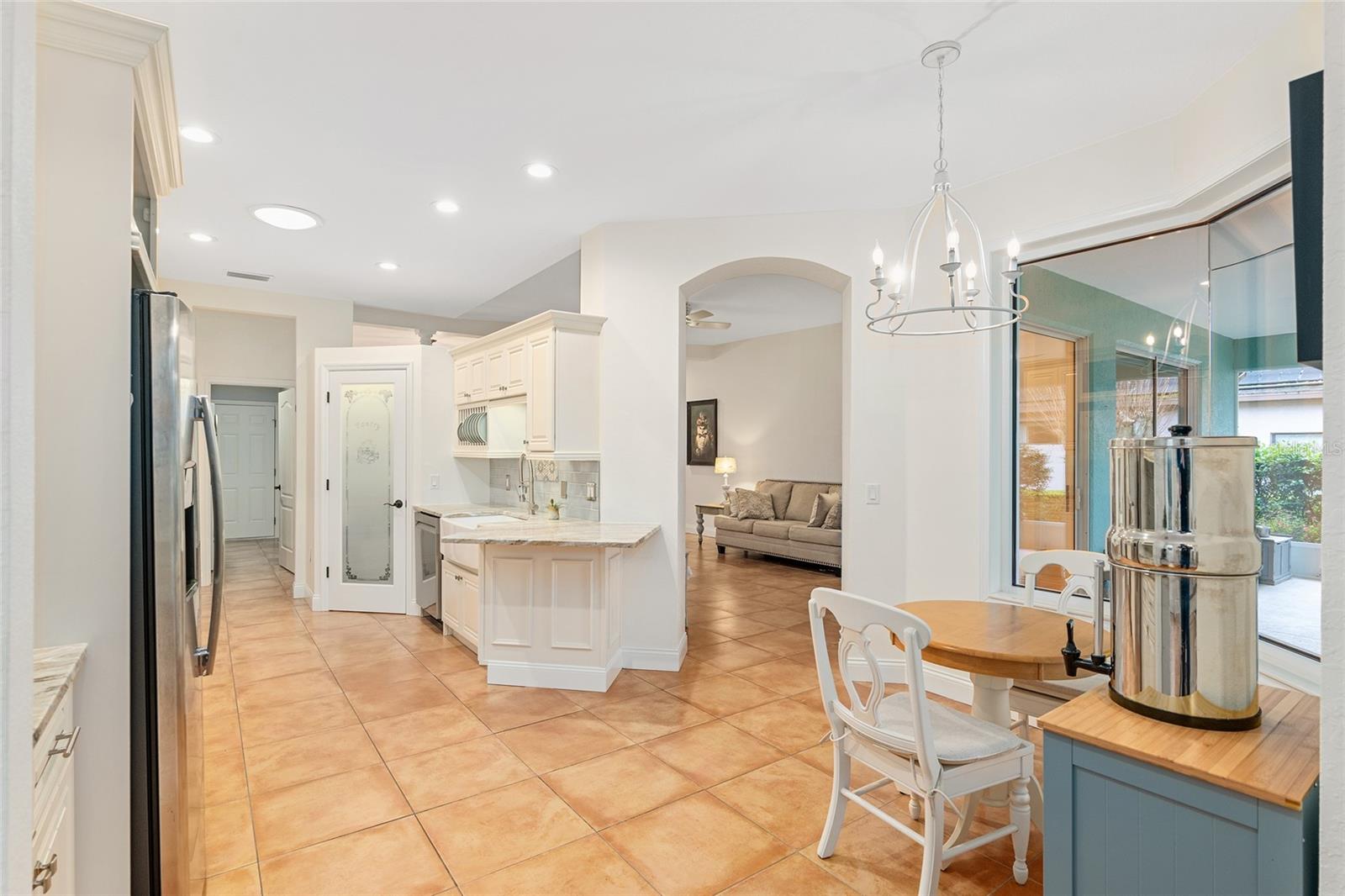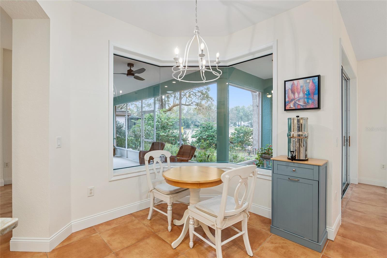 Welcome to Fox Trace - a subdivision within Rainbow Springs. This exquisite property is full of character and attractive finishes. It spans over 1900 square feet featuring 3 bedrooms, 2 bathrooms, formal dining space, and bonus room. Entering the home you are greeted by grand double doors. Inside you will find a stunning Spanish tile throughout for easy maintenance. This floorplan was thoughtfully designed with a formal dining room and sitting room for plenty of space to entertain. Your southwest facing bonus room features 4 windows full of natural light for the room to function well as an art studio, craft room, or home office. Enjoy your breakfast looking out the panoramic bay window with a view of the tranquil backyard. Take delight in the serenity of your 29x10 screened lanai where you can enjoy a book or cup of coffee. The kitchen has been completely remodeled with elegant apron sink, stone counters, backsplash, and cabinets. Other upgrades include stainless appliances and frosted pantry door. Your primary suite offers 2 walk-in closets, custom window covering, and sliders to the lanai. Your en suite includes 2 sinks, soaker tub, and frameless walk-in shower. Adjacent to the primary you will find bedroom two and three that share the second bath. Your laundry room has been conveniently outfitted with sink and extra storage. Your major systems have already been replaced with the roof done in 2023 and HVAC done in 2019. The interior and exterior of the home have been recently painted with tasteful, neutral choices. Rainbow Springs has deeded access to the world-renowned Rainbow River for a low annual fee of $243. Also included is access to the community center where you will find a pool, tennis courts, and restaurant. Your low monthly HOA of $197 covers lawn care to include mowing, blowing, trimming, and edging.