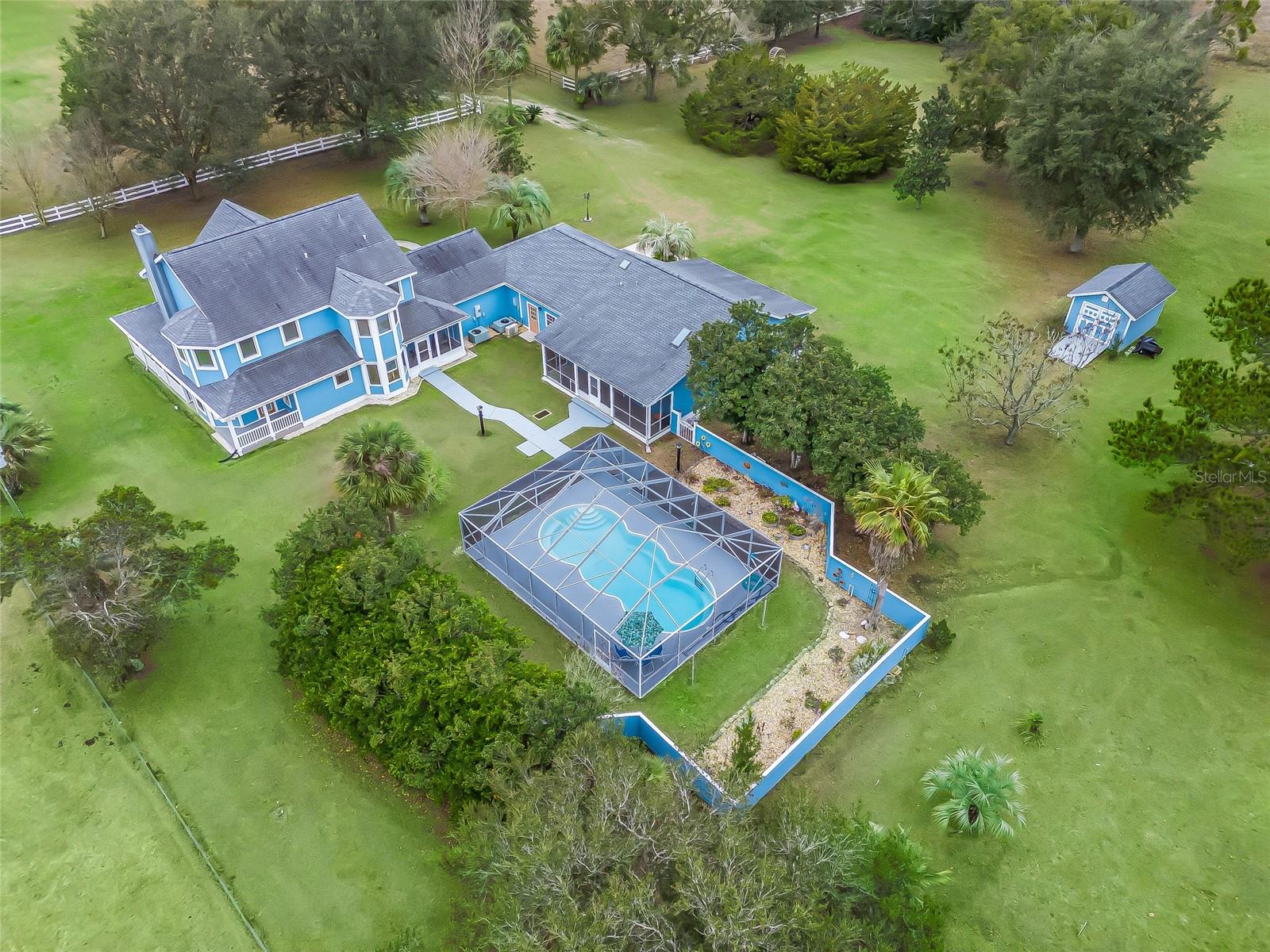 Stunning Two-Story Pool Home with Detached In-Law Suite!!Looking for privacy and luxury? This custom-built estate is tucked away at the end of a picturesque tree-lined driveway, offering unmatched serenity and charm. Meticulously maintained, the main home features: Two spacious stories with gleaming wood floors throughout, a massive primary suite with a custom walk-in closet, spacious secondary bedrooms, a versatile bonus room and a sparkling pool perfect for entertaining or relaxing.The detached 2-bedroom, 1-bath in-law suite boasts a private entrance, ideal for extended family, guests, or rental income. Additional highlights include a two-car garage with a dedicated storage/workshop room.Nestled on land zoned for horses and farm animals, this property combines modern living with the opportunity for country life. A rare find offering privacy, versatility, and charm with two parcels totaling 7.69 acres—schedule your showing today!