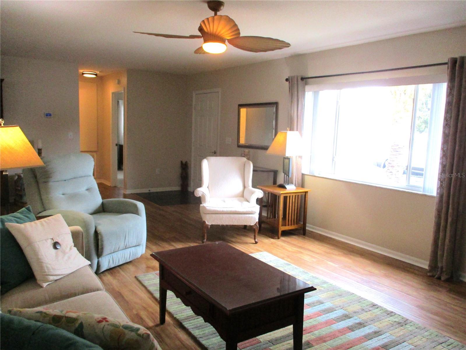 CUTE AND COMFORTABLE best describes this PALM MODEL 2/2/2 with plank floors, an updated kitchen with eat in area, over and under cabinet lighting, upgraded Formica counters, stainless appliances, pull out drawers and a solar tube that allows for plenty of natural light! Spacious primary bedroom has double closets and a bath with double sinks, large linen and walk in shower. A pleasant bonus is the 12x24 (288 sq ft) lanai under heat and air with acrylic windows that leads out to a patio ideal for relaxing or grilling while your 4 legged family members romp in the fenced yard. Garage is 21x26, ROOF 2019, HVAC 2019, WATER HEATER 2021, WATER SOFTENER, TERMITE BOND. This move in ready home is in the fun, friendly, 55+, active, gated, golf community of SPRUCE CREEK PRESERVE. With loads of activities and amenities like heated pool, spa, pickleball, tennis, corn hole, shuffleboard, fitness center, water aerobics, yoga, exercise classes, billiards, crafts, cards, games, bingo, bunco, potluck dinners dances, social and travel groups. Minutes from golf, groceries, shopping restaurants, medical, banking and miles of Nature trails for hiking and biking. North Central location is ideal for daytrips from the Gulf to Atlantic and a plethora of activities between !!