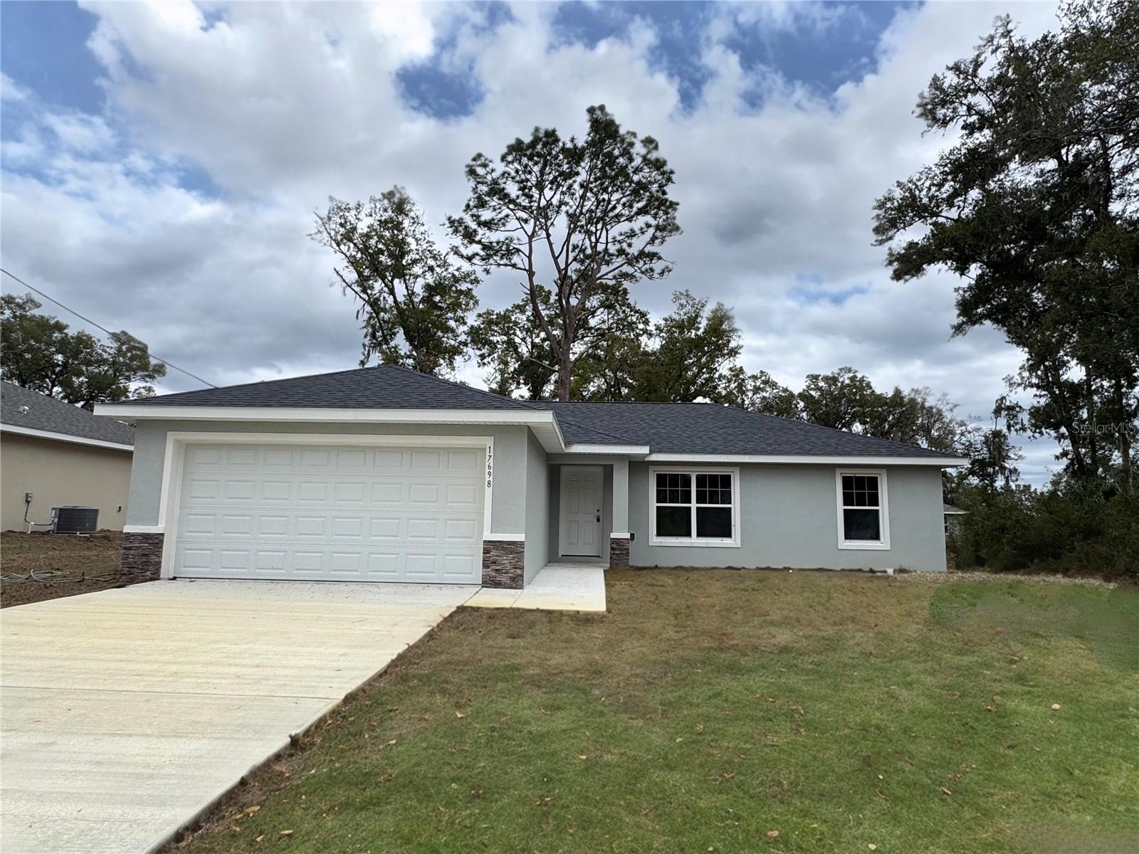 One or more photo(s) has been virtually staged. MOVE IN READY!! Beautiful new construction home! Luxury Plank Vinyl flooring throughout all living and common areas, tile in bathrooms, and carpet in the bedrooms. Open floor plan with dining area and eat-in kitchen, all done in neutral, pleasing colors. Inside laundry with W & D hook-ups. Walk-in closet in Master bedroom. Stainless steel appliance package in the kitchen. White shaker-style cabinets and light luxury granite countertops. DISCLOSURE - Dunnellon Oaks Neighborhood received approval for MSTU to pave the roads in the subdivision. Road work HAS begun. Road Construction throughout the neighborhood will be ongoing until the expected completion May 2025. See attached Disclosure. Please see attached documents from Builder (Builders Contract Addendum & Warranty) Actual photos are currently unavailable. Any photos depicted are for illustration purposes only and only to show layout. Floor plan displayed is our standard plan and garage orientation may vary on actual home. Interior and exterior colors, finishes, and garage orientation will vary for actual home. Information is deemed correct, but no guarantee made. Any dimensions listed are approximate.
