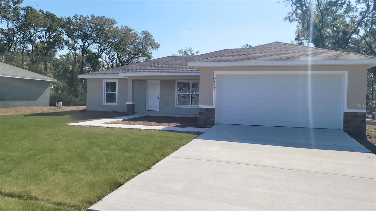 One or more photo(s) has been virtually staged. BUILDER OFFERING A $4K CREDIT TOWARDS BUYER'S CLOSING COSTS OR PREPAIDS. MOVE IN READY!!! Beautiful new construction home in Dunnellon Oaks Neighborhood! No HOAs! BRAND NEW paved asphalt roads!! Luxury Plank Vinyl flooring throughout all living and common areas, tile in bathrooms, and carpet in the bedrooms. Open floor plan with dining area and eat-in kitchen, all done in neutral, pleasing colors. Inside laundry with W & D hook-ups. Walk-in closet + regular size closet in Master bedroom. Stainless steel appliance package in the kitchen. Cabinets are white shaker-style and light luxury granite countertops. Stacked stone on the exterior entrance. Please see attached documents from Builder (Builders Contract Addendum & Warranty) Actual photos are currently unavailable. Any photos depicted are for illustration purposes only and only to show layout. Floor plan displayed is our standard plan and garage orientation may vary on actual home. Interior and exterior colors, finishes, and garage orientation will vary for actual home. Information is deemed correct, but no guarantee made. Any dimensions listed are approximate. **DISCLOSURE - Dunnellon Oaks Neighborhood received approval for MSTU to pave the roads in the subdivision. Road work HAS begun. Road Construction throughout the neighborhood will be ongoing until the expected completion June2025. See attached Disclosure.